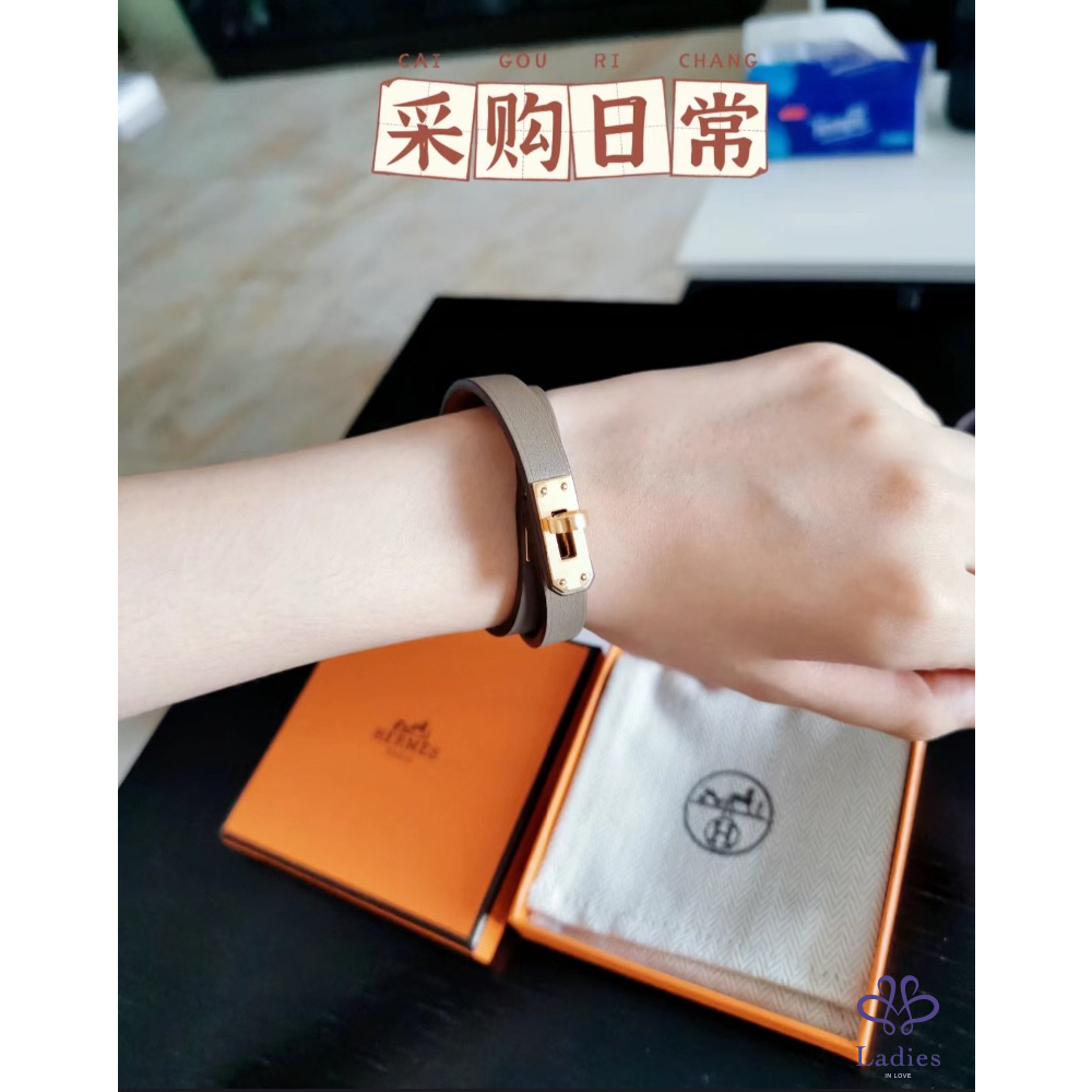 產品信息 Hermes 雙圈手環 Kelly釦 - 顏色:大象灰/玫瑰金 - 尺寸:T2 - 全新W刻 - Swift皮 大象灰戴起來優雅又顯白 配上玫瑰金,氣質十足 附:防塵袋、緞帶、橘盒、購證影本去個資 ????台北新竹台中可面交 ????郵寄、店到店、宅配 實戴照為網路抓圖,不妥可告知
