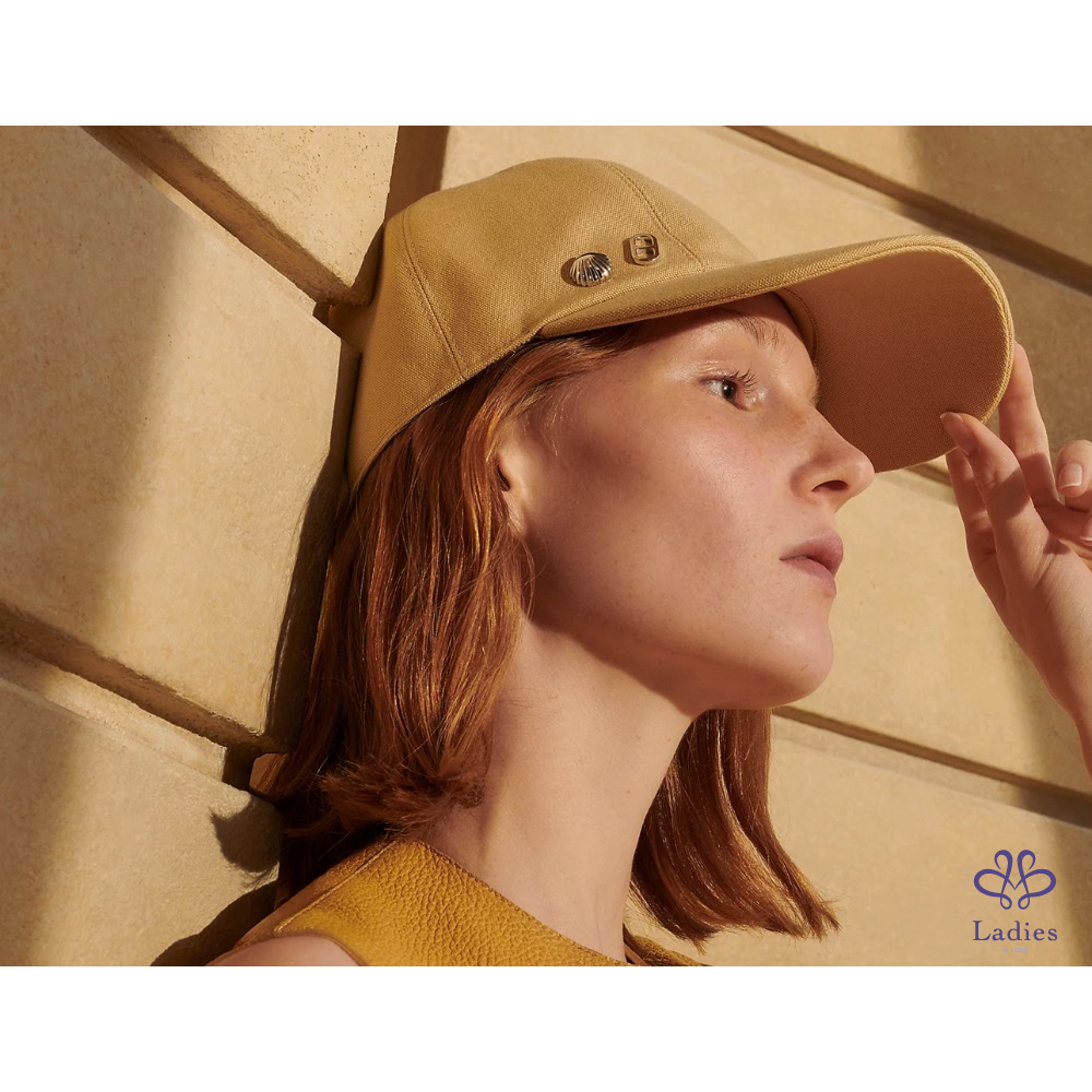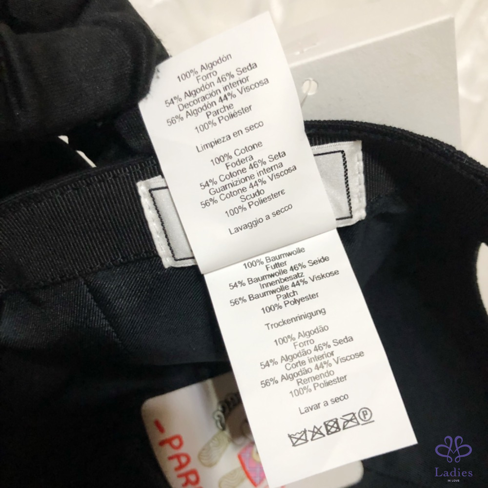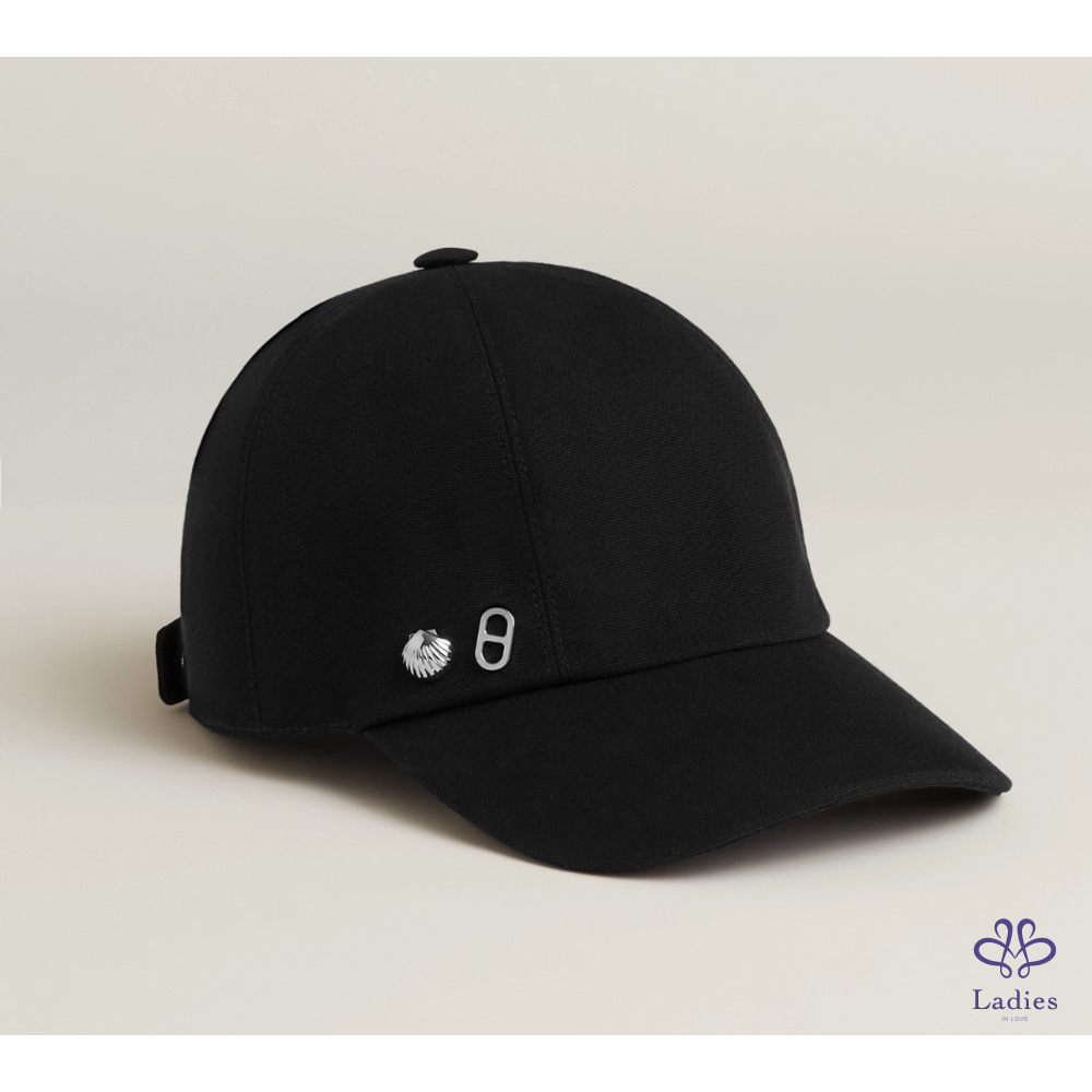 棉質帆布休閒帽,內部Elias Kafouros設計的"Funny Ice Cream"徽章,側面飾有亮面鍍鈀"Chaine d'Ancre"和"Coquillage"金屬釘釦。可調整釦帶飾有兩個亮面鍍鈀馬鞍釘釦。素色真絲和棉質內裡。內裡有兩個馬頭冰棒超可愛!