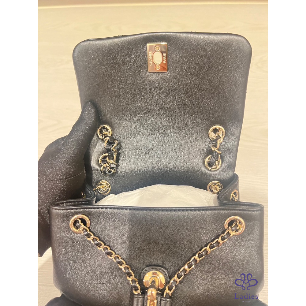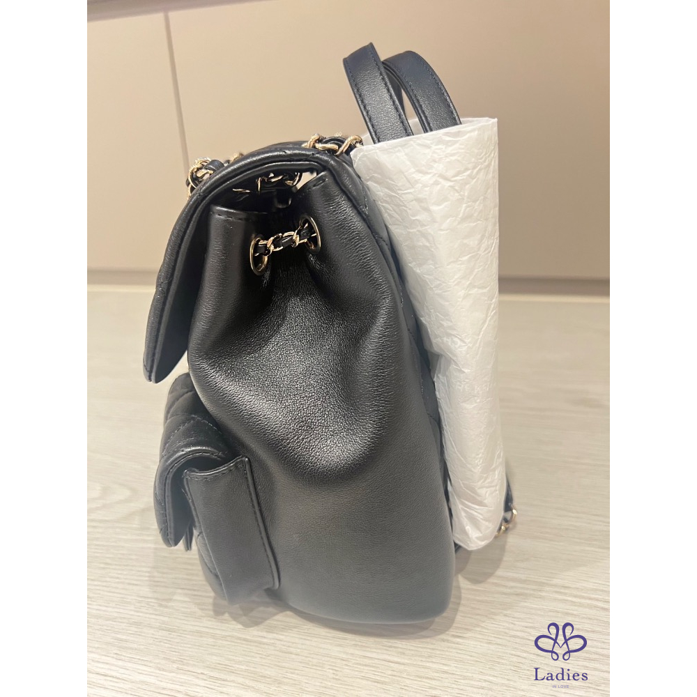 超美的人氣爆款黑金滑面牛青蛙後背包❤️數量超級少已經絕版????經典好搭配的黑色➕淡金扣,皮質是有質感又實用的滑面牛皮????容量也非常感人,日常用品都能裝的下????這款產量真的超級少,vip也是搶破頭????要拿衣服Sa 才會給包????實品比照片更美,質感超好????背出去一秒變仙女????美麗好看的後背包可遇不可求!喜歡的姐妹不要錯過????
