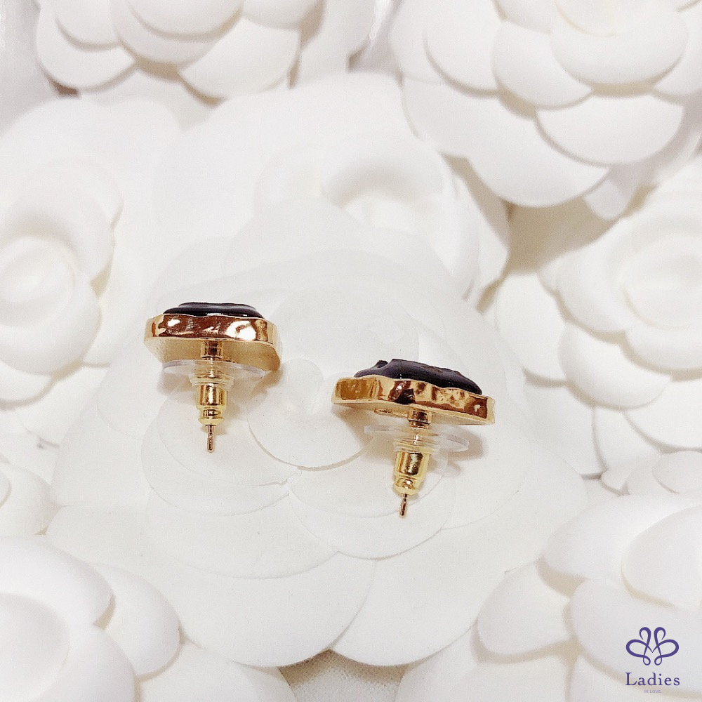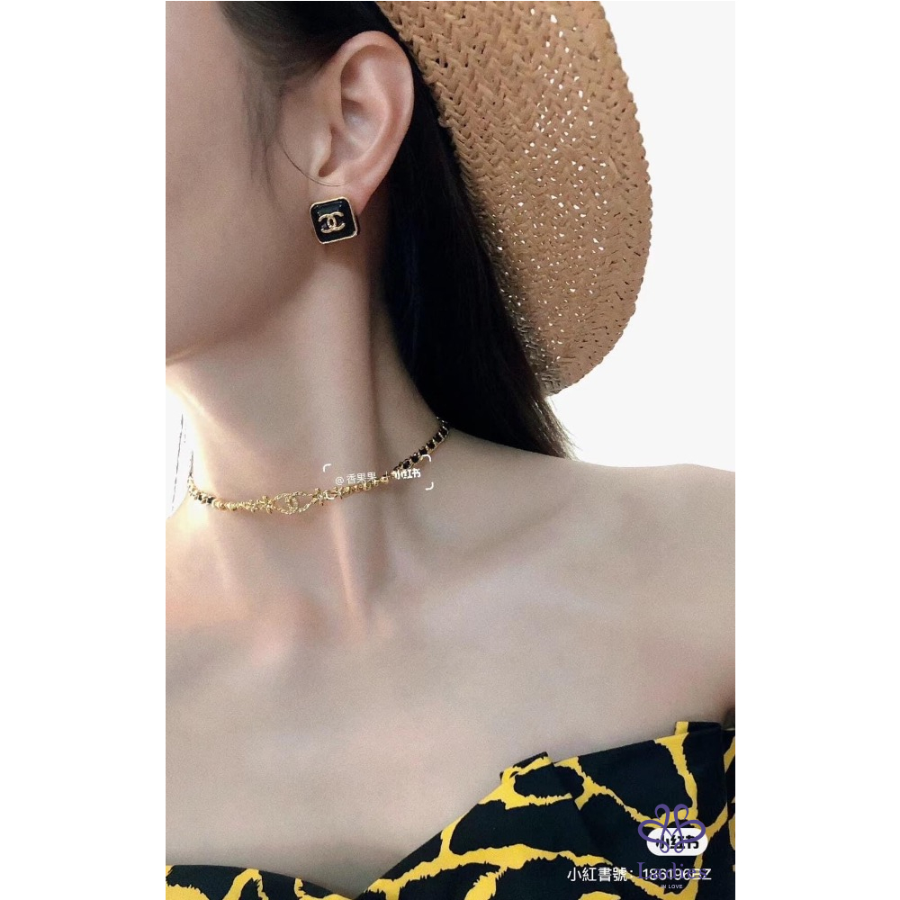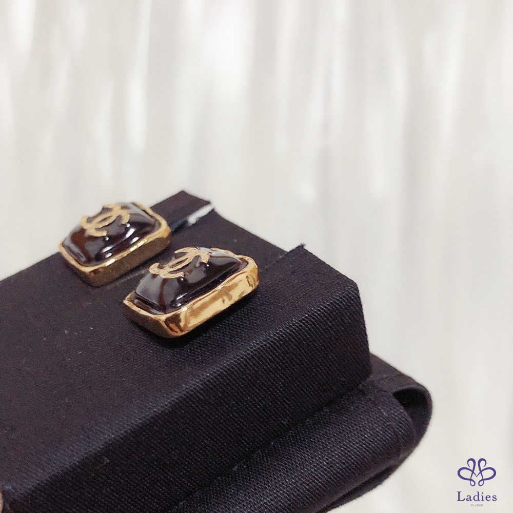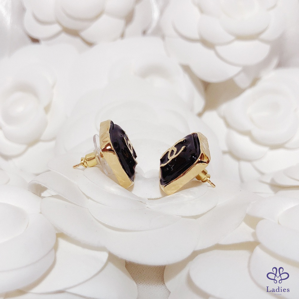 CHANEL 香奈兒 小香 經典 方形黑色琺瑯方糖 金色 雙C logo 針式 耳環 全新✨