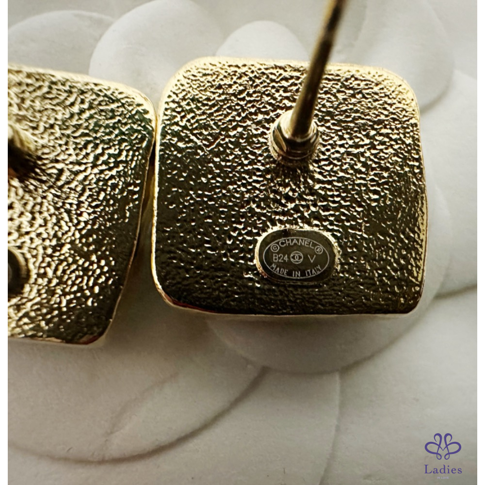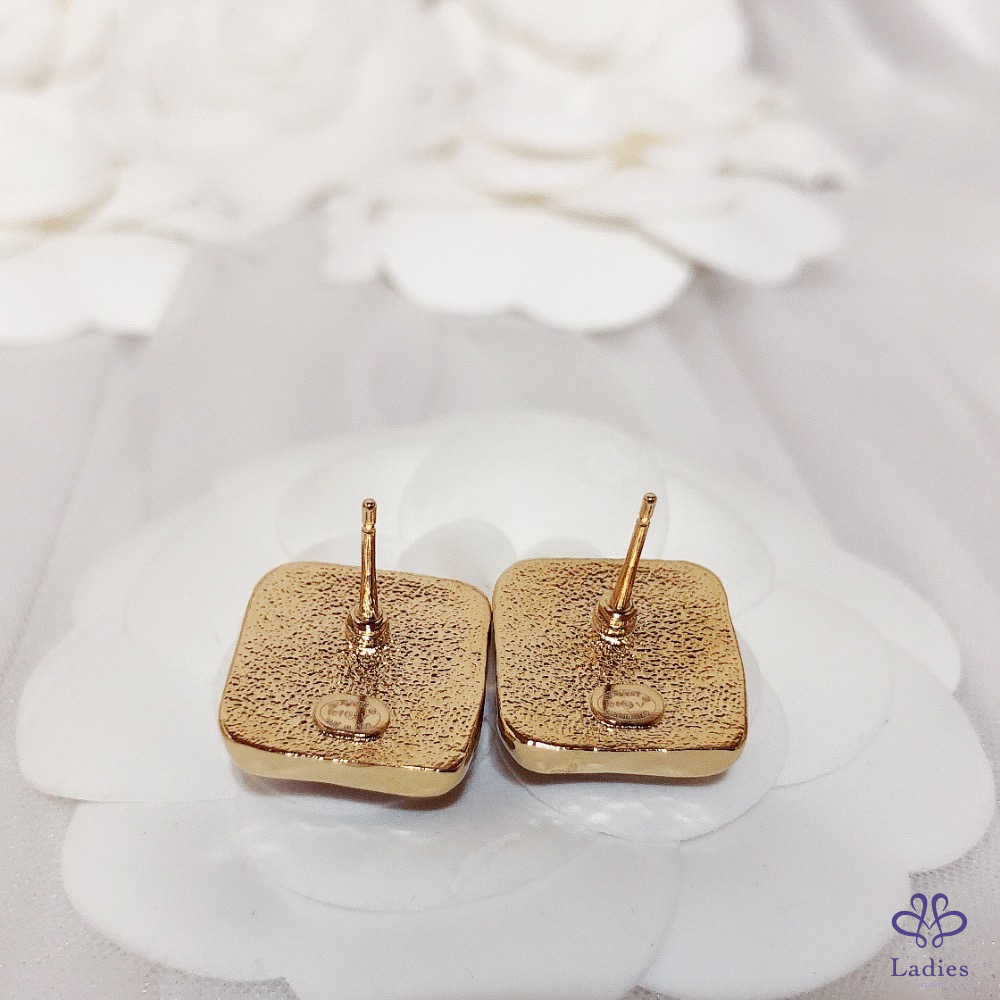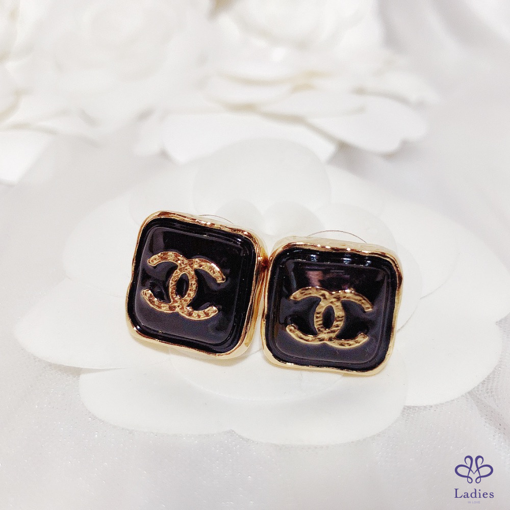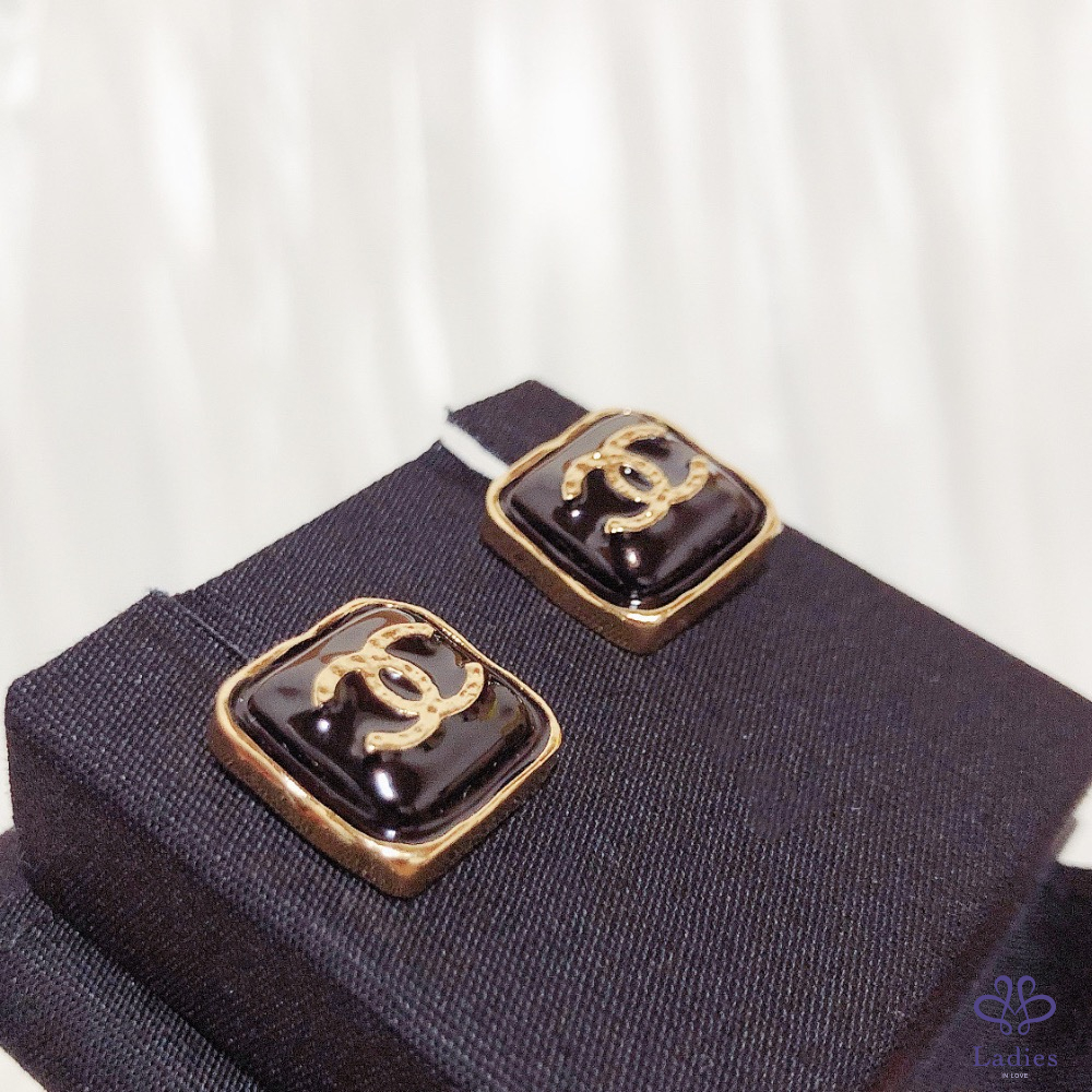 首頁 精品手錶 CHANEL 香奈兒 小香 經典 方形黑色琺瑯方糖 金色 雙C logo 針式 耳環 全新✨