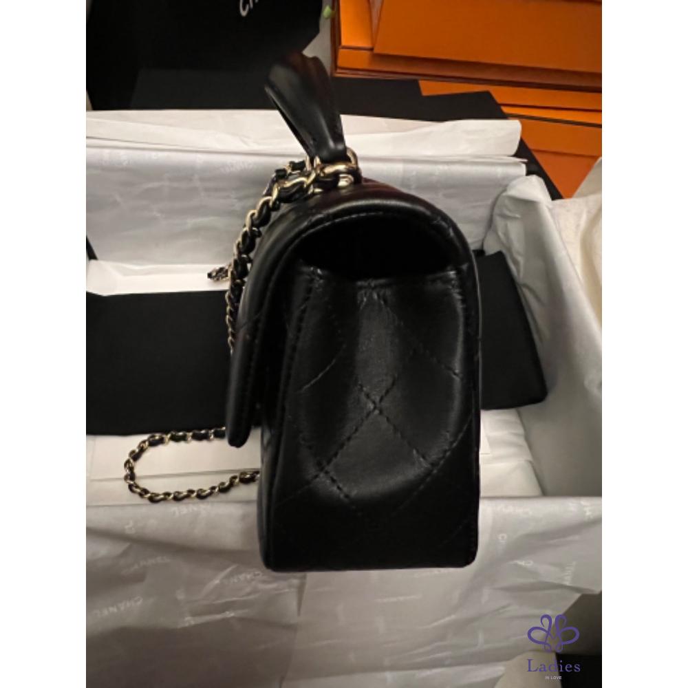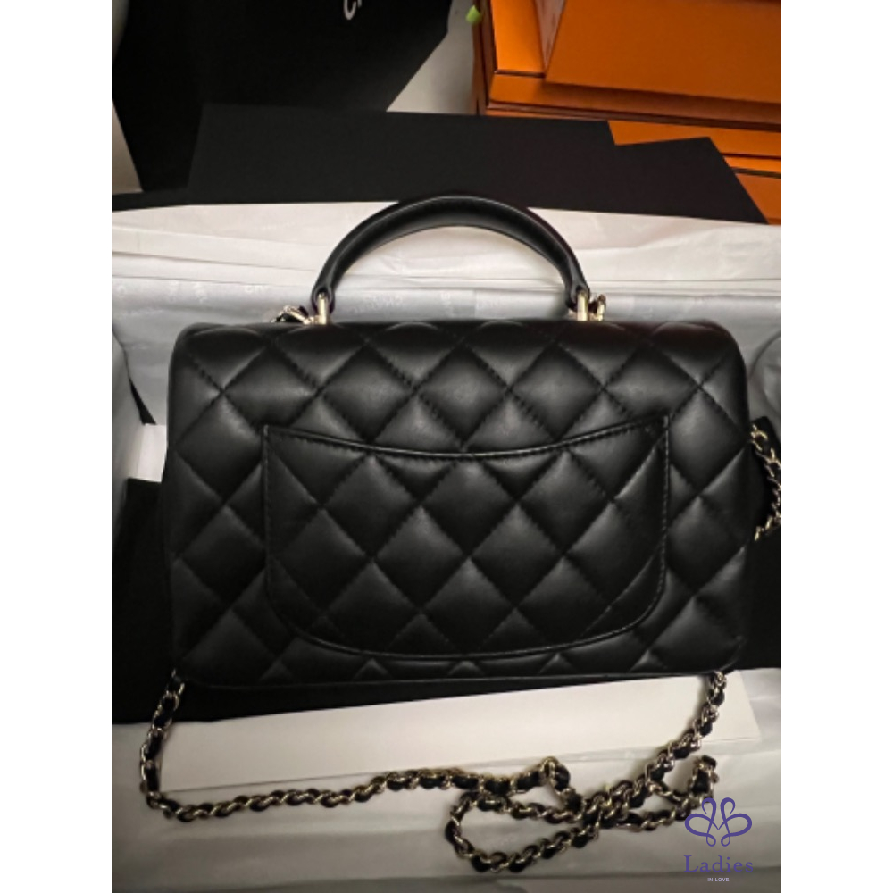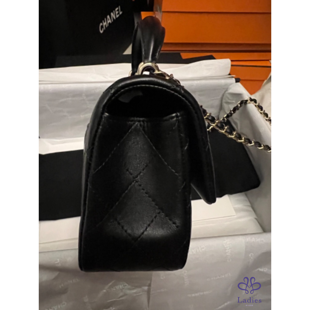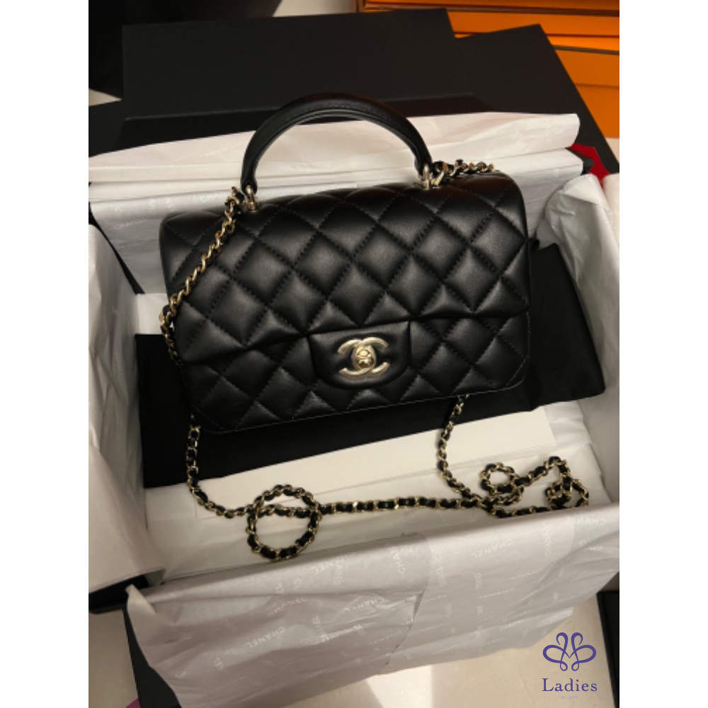 香奈兒24新的羊皮手柄的CF20可以手提多了一份氣質感。黑淡金釦(母親節禮物非常適合)