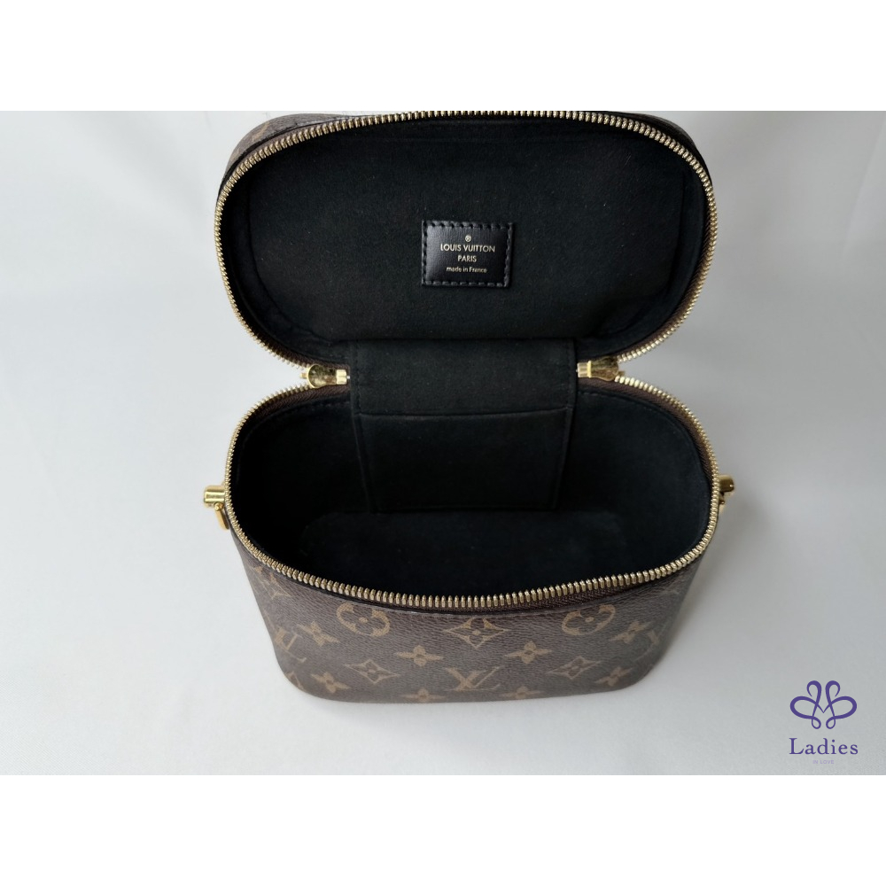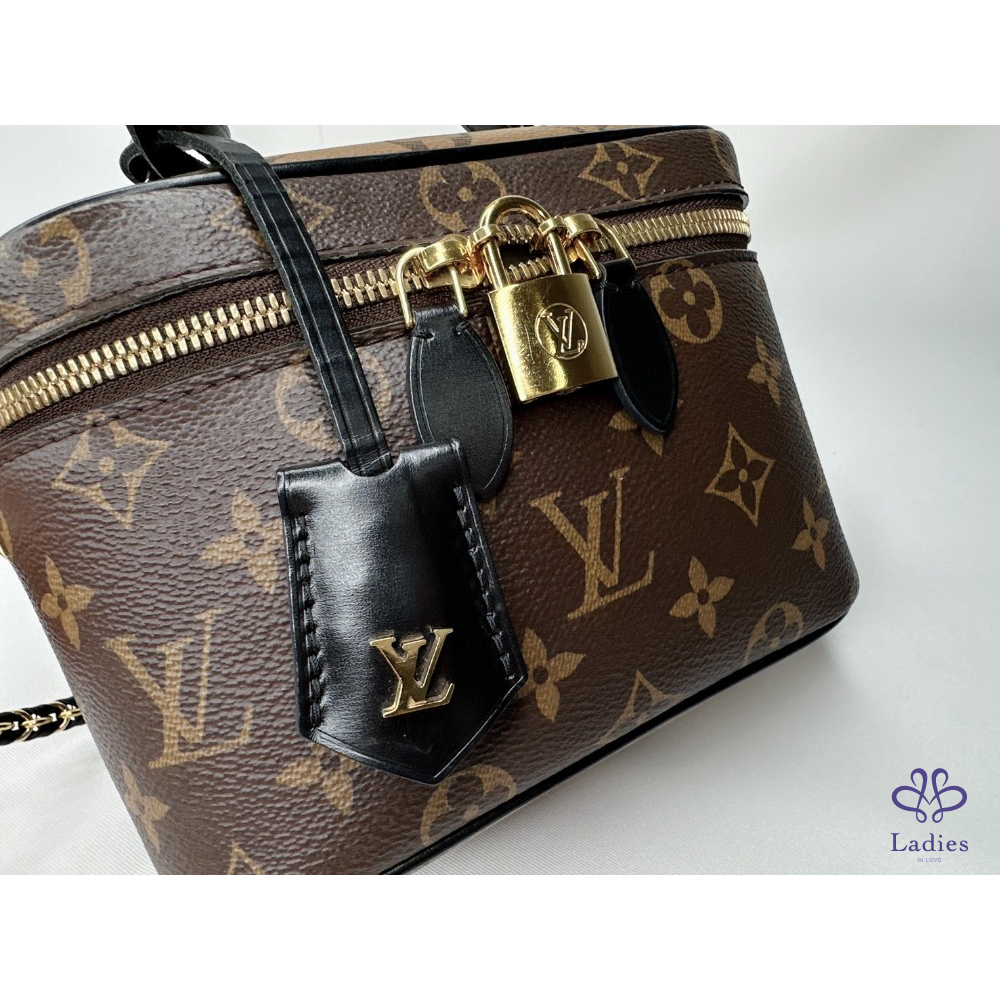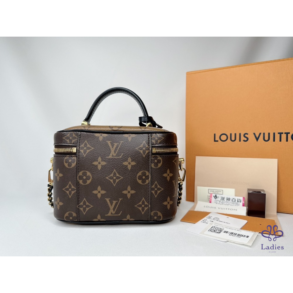 產品信息 【LV Vanity PM鏈帶化妝箱包】 #櫃上價瘋漲9萬5 #穩站化妝箱包C位 設計採用Monogram和Monogram Reverse帆布 將Nice梳妝袋打造成時尚的都會手袋 可拆式編織皮革鏈帶肩帶可作手提、肩背或斜背攜帶 整體品項9成新,二手商品均有正常使用/存放痕跡 型號:M45165 尺寸:19x13x11cm 附件:原廠盒、原廠鏈帶、鎖匙組、台灣購證(去個資)、發票、小卡 #A113041601