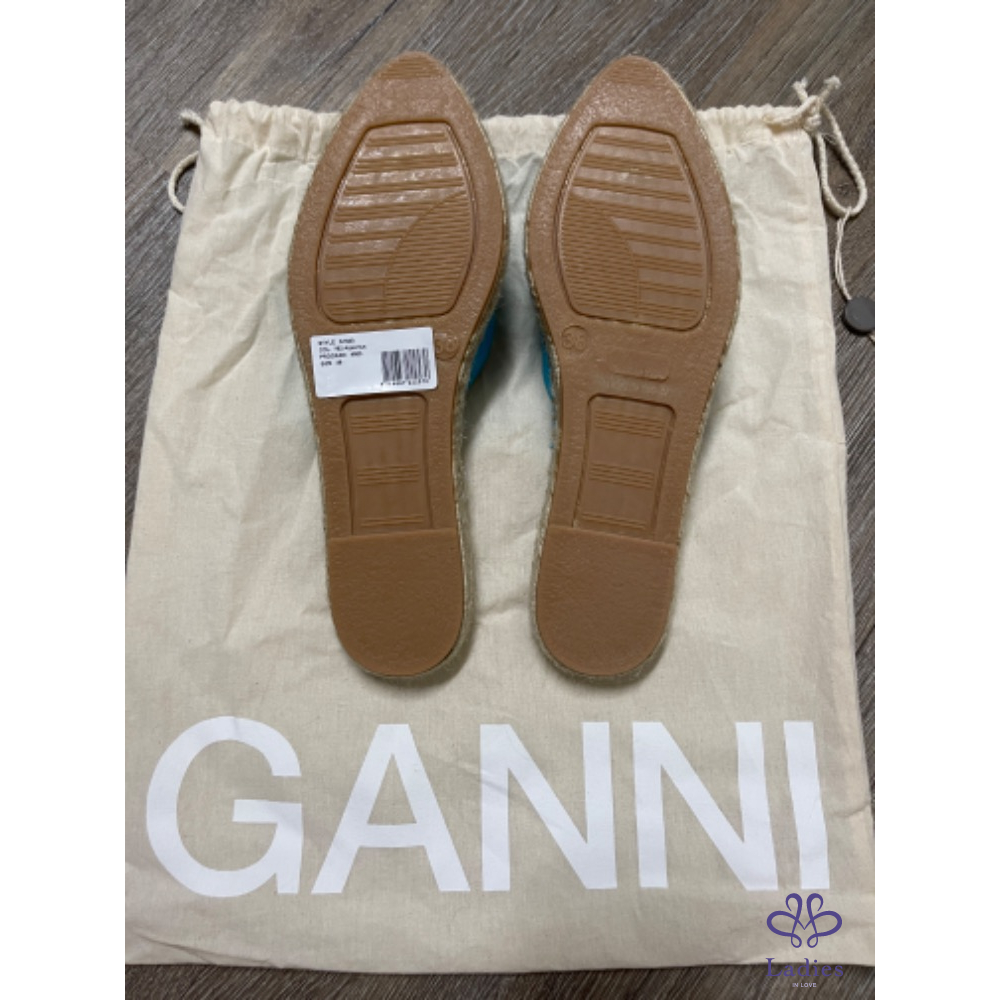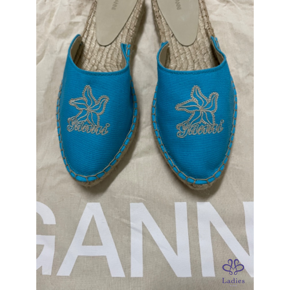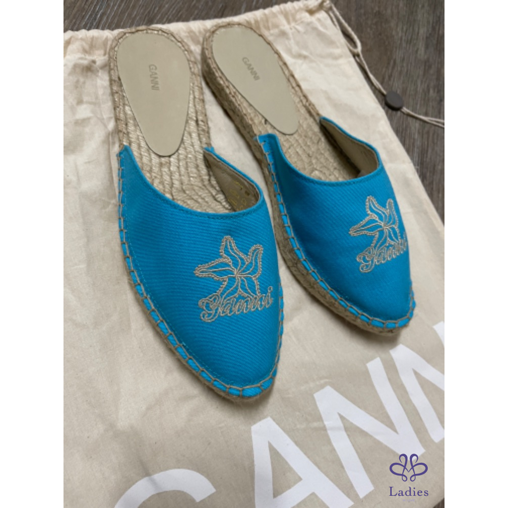 全新款GANNI 海星刺繡藍色丹寧草編穆勒鞋