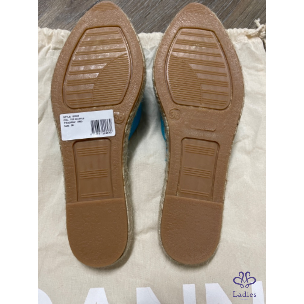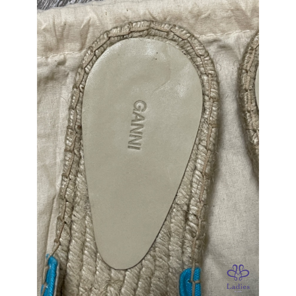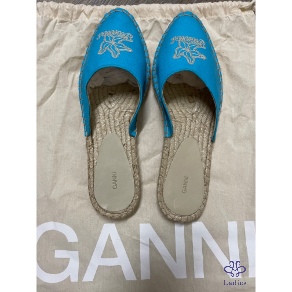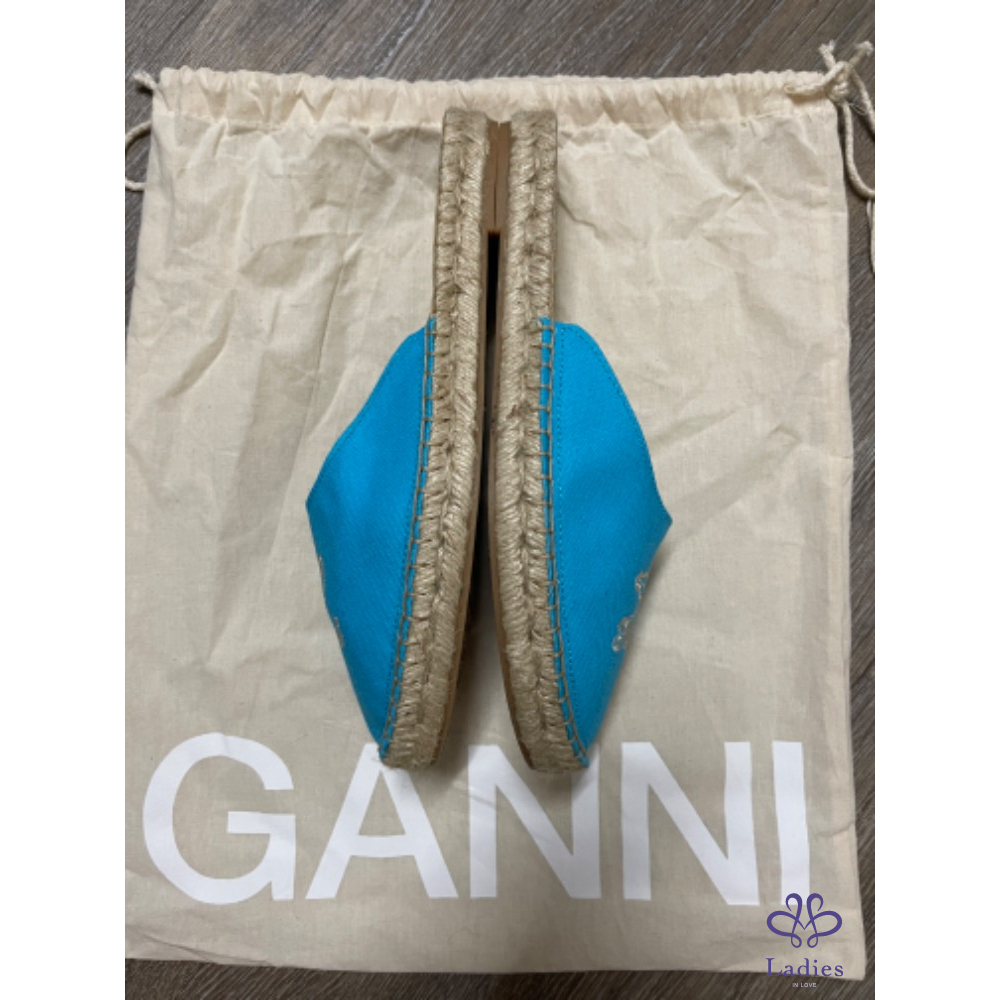 全新款GANNI 海星刺繡藍色丹寧草編穆勒鞋