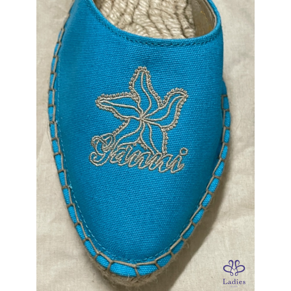 首頁 精品女鞋 全新款GANNI 海星刺繡藍色丹寧草編穆勒鞋
