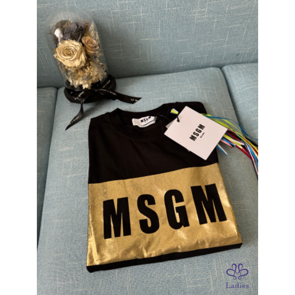 MSGM限定款T-shirt,燙金Logo字樣搭配黑色T-shirt 非常美,大人款的材質更挺而修身,義大利製質感也很好,喜愛的姐妹千萬不要錯過了????????