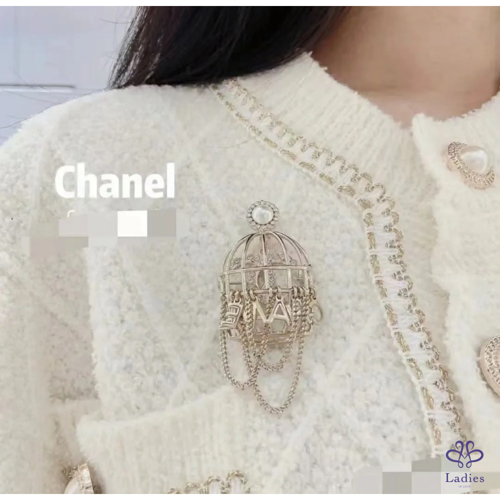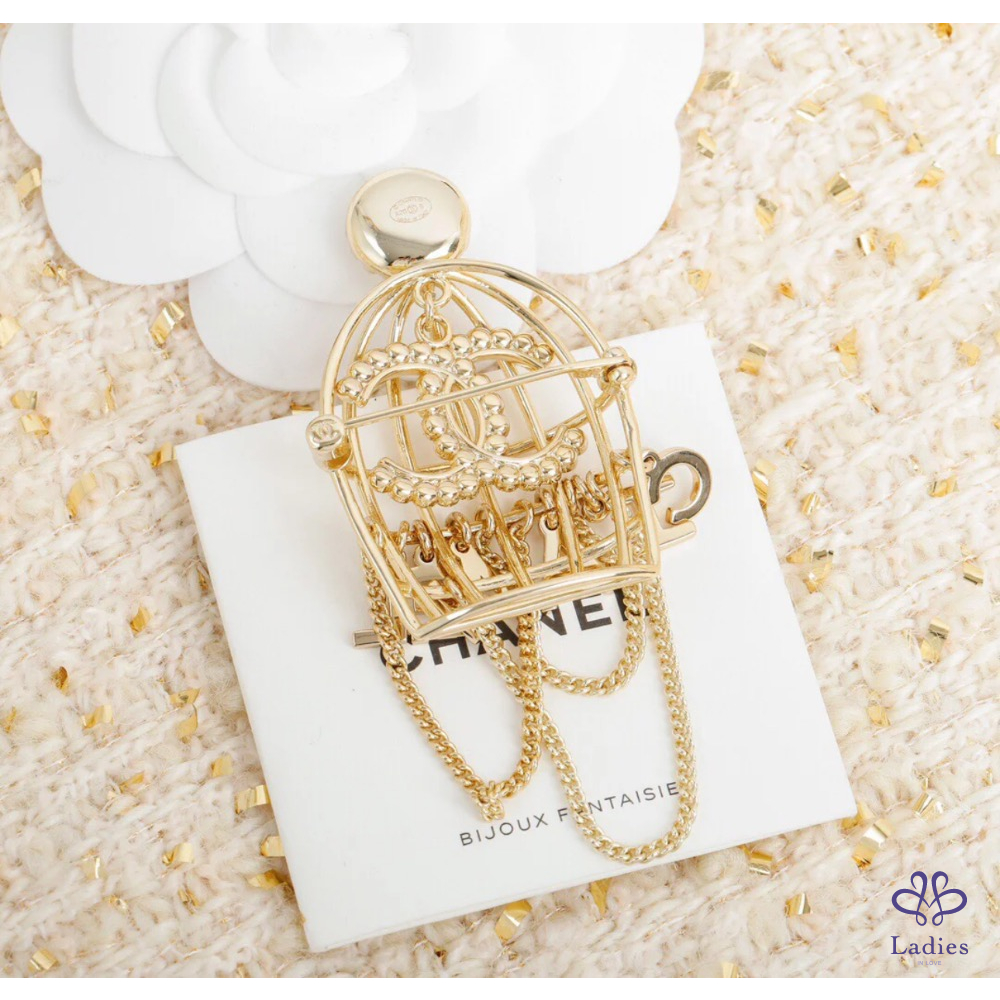 產品信息 經典款鳥籠別針,裡面滿滿香奈兒經典元素,有水鑽.珍珠.字母.鍊帶,是不是感覺非常重工,精緻細節滿滿,也不容易到處撞雙Clogo別針,非常精湛的工藝很值得收藏! 尺寸:5.6x3.5cm 附:收納襯.盒子.說明書.緞帶.山茶花.紙袋.購證印本