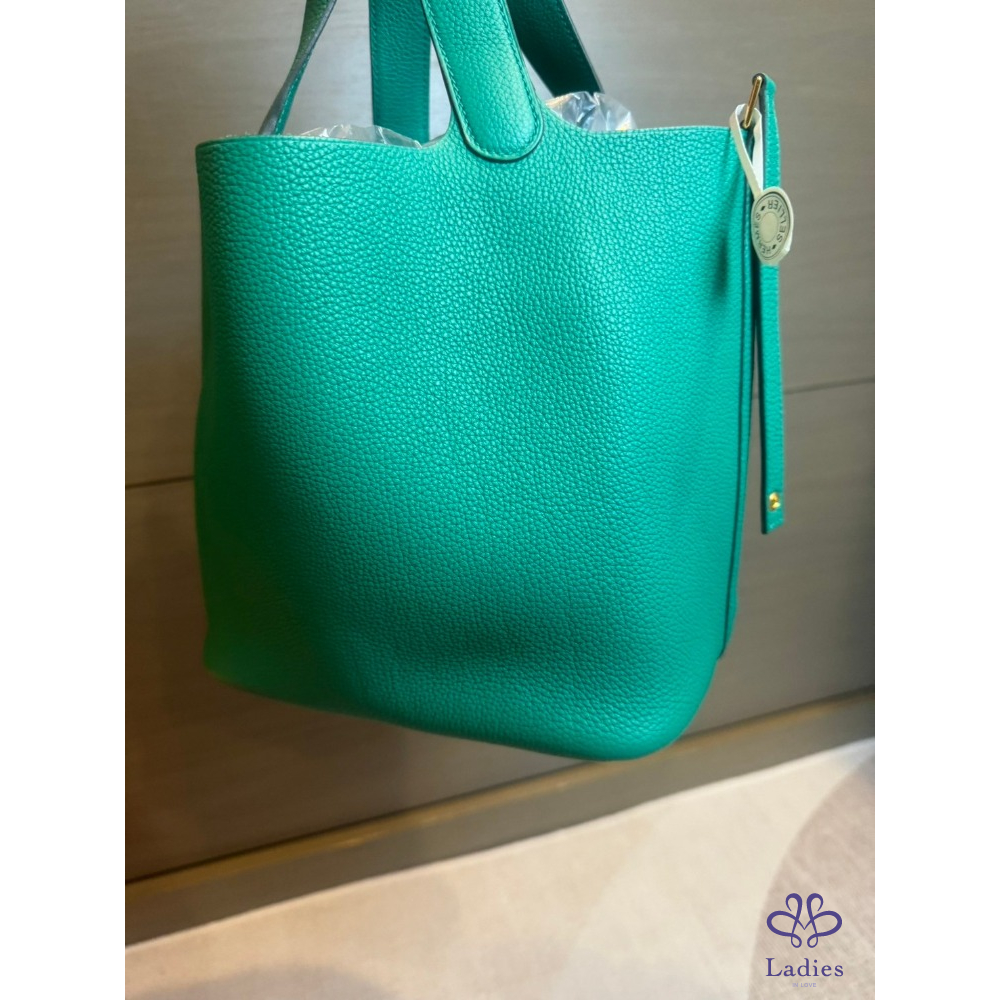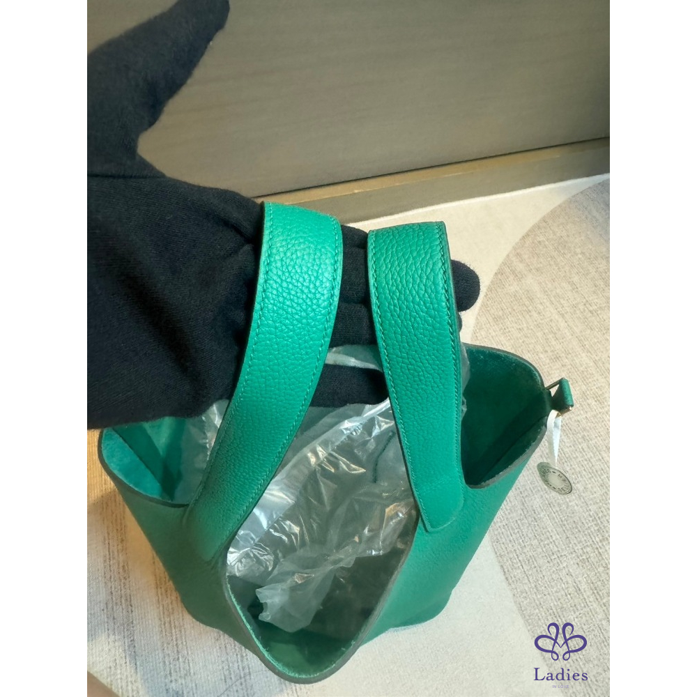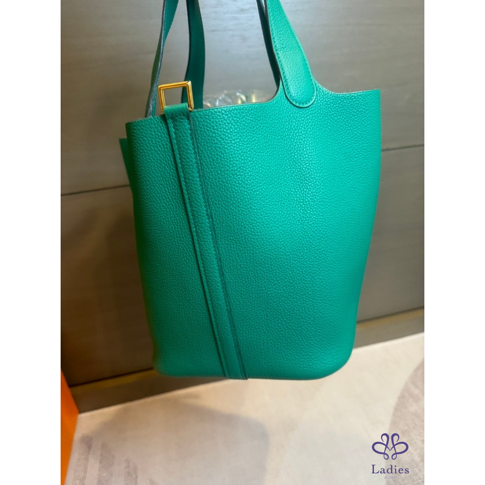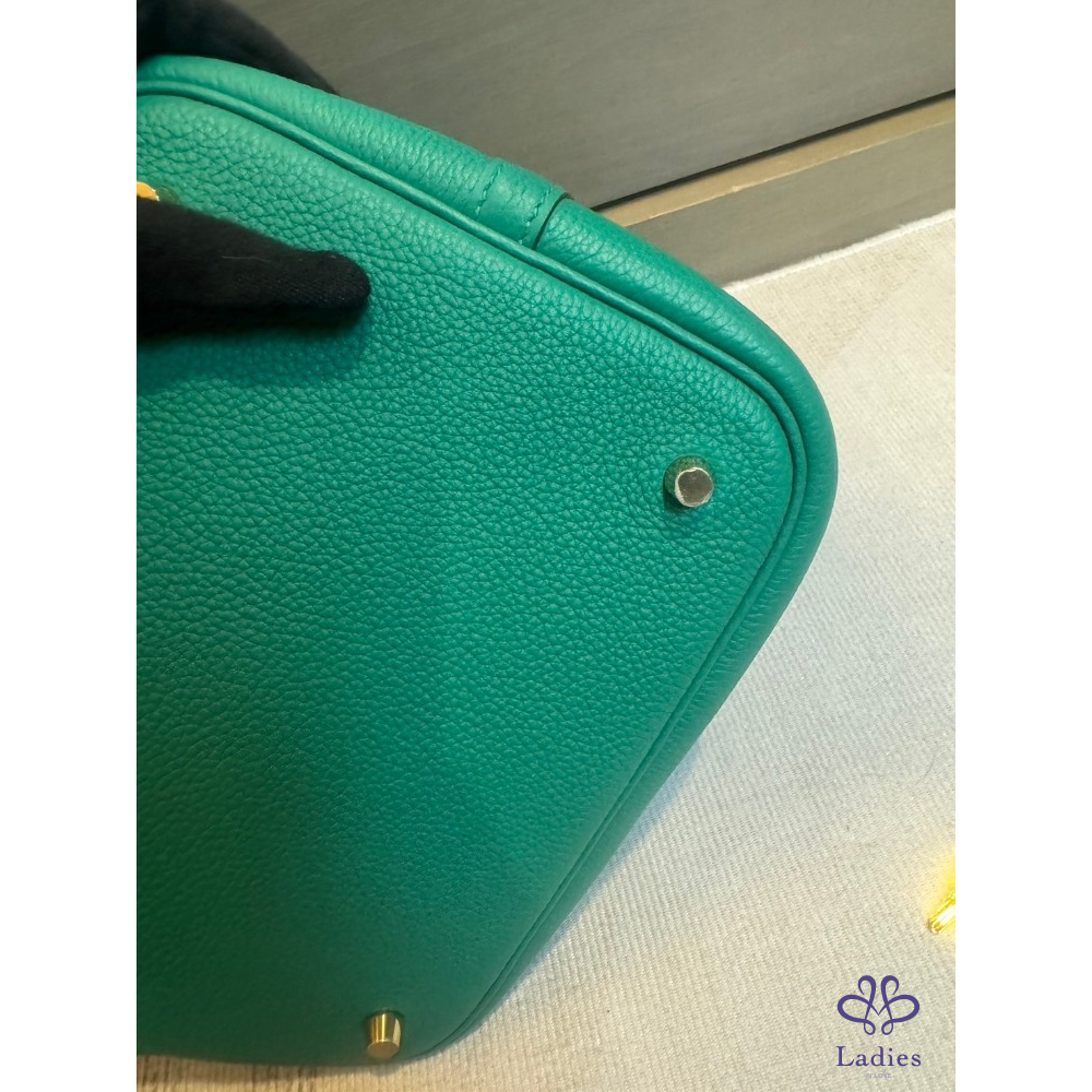 愛馬仕Hermes 菜籃 22 帝王綠金扣 TM皮
