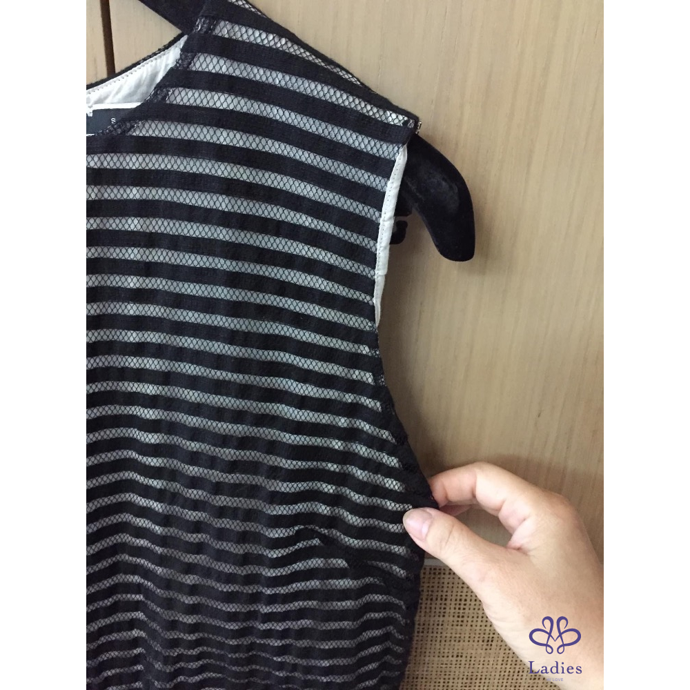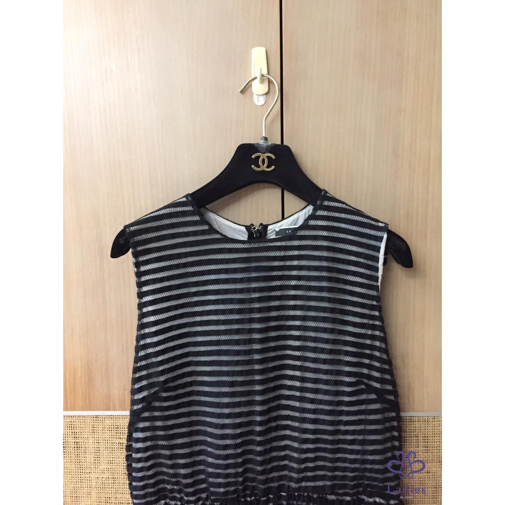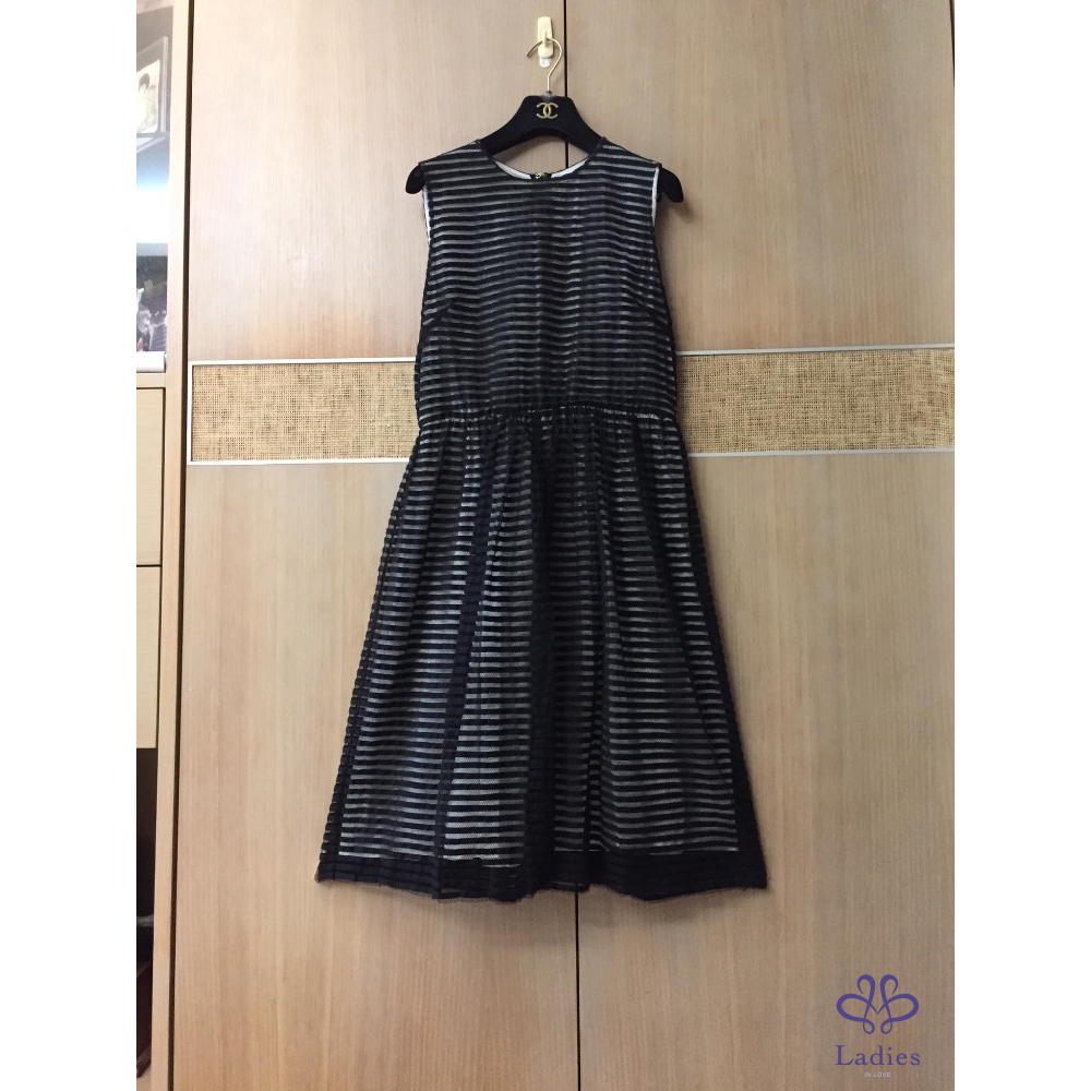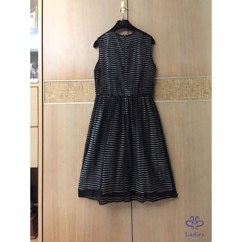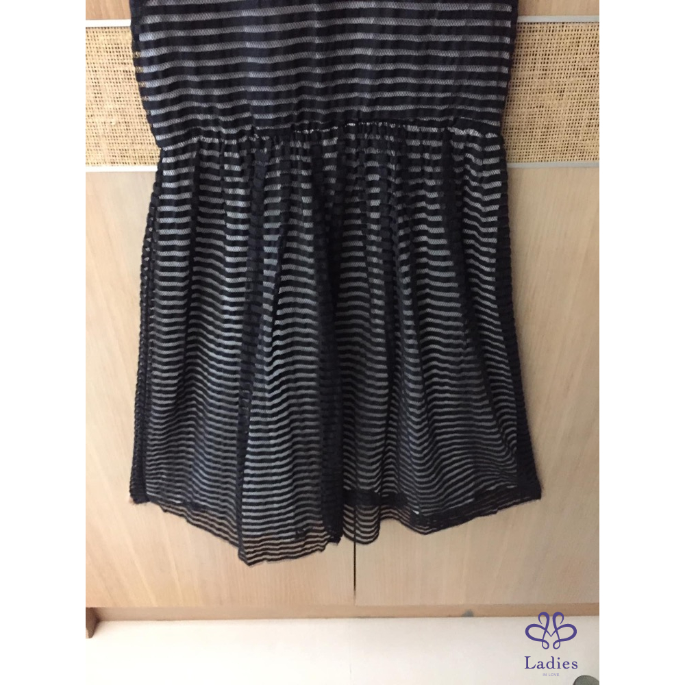 這件洋裝是利用內外兩層不同顏色布料做出透視光影效果外層是黑色條紋網紗蕾絲拼接裡層是白色麻紗不同光線呈現深淺變化很是好看蕾絲質感很好無可挑剔搭配涼拖鞋就很好看喔 出清價$6880含運售出不退感謝辛苦管理員謝謝美女們推喔她團