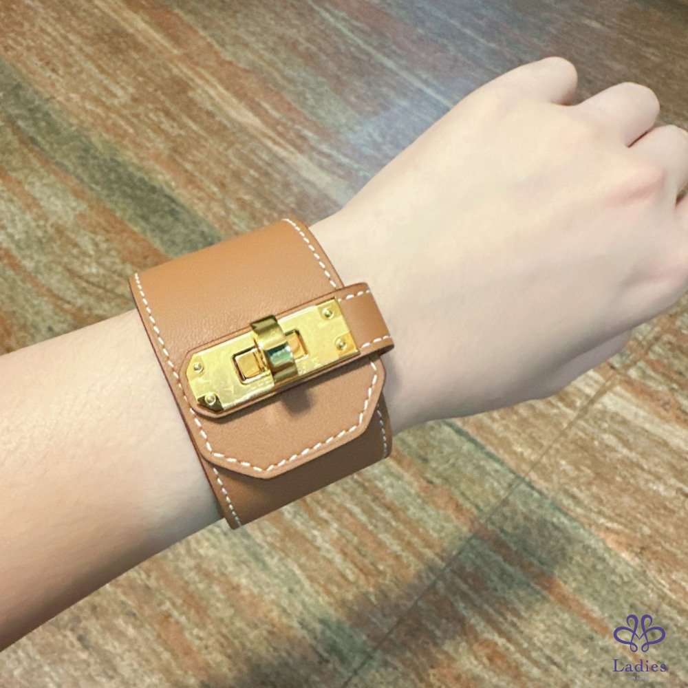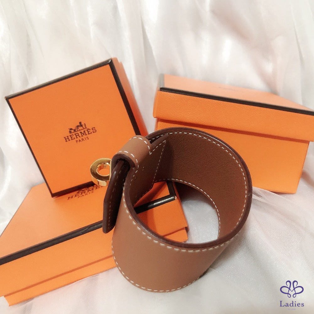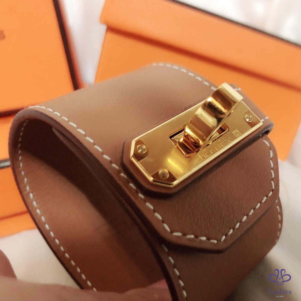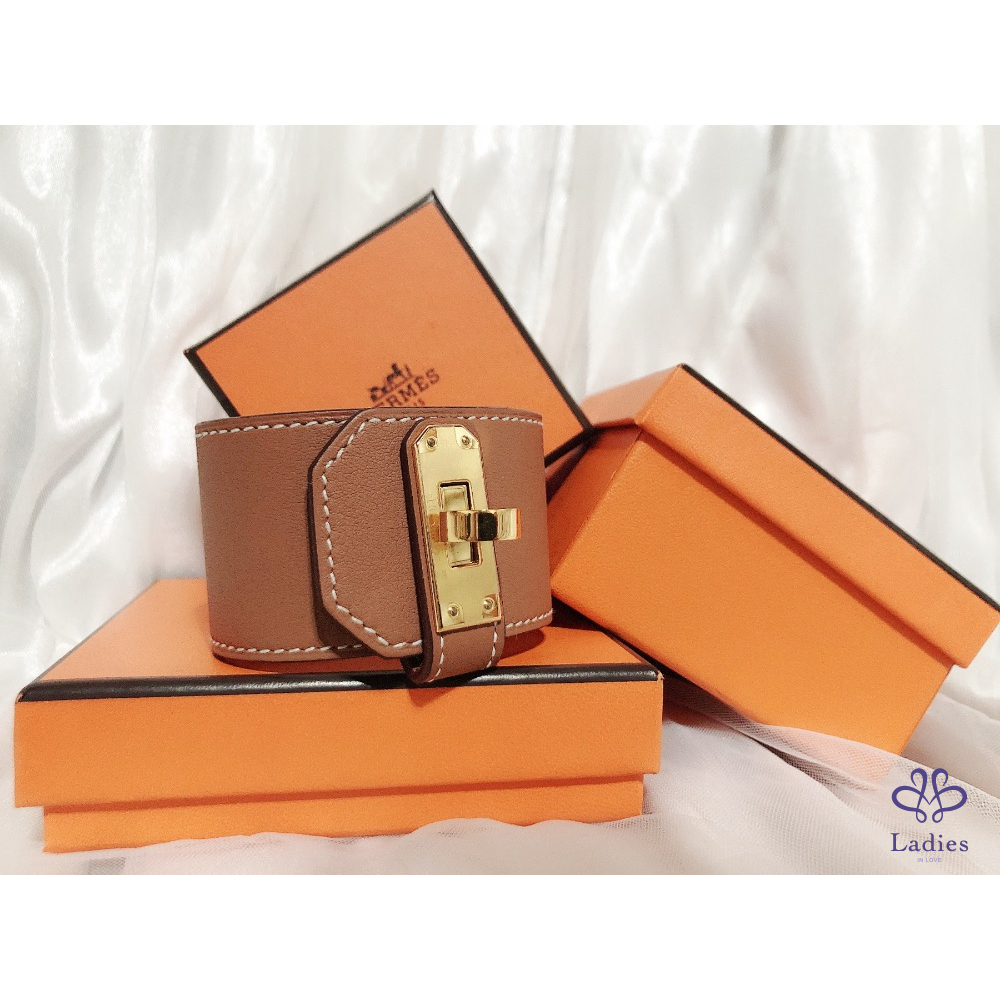 Hermes 愛馬仕 金棕金扣 牛皮Kelly Twist手環 GM 凱莉 寬版 手環 全新✨