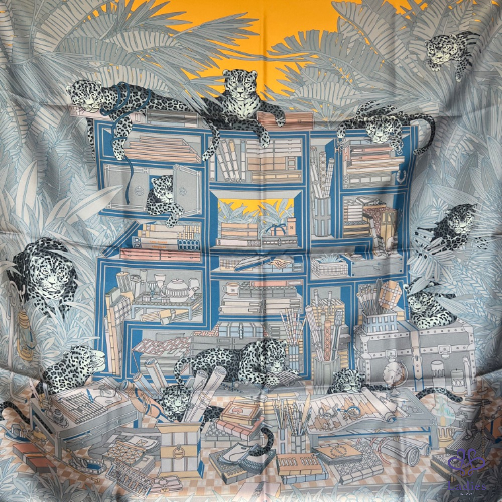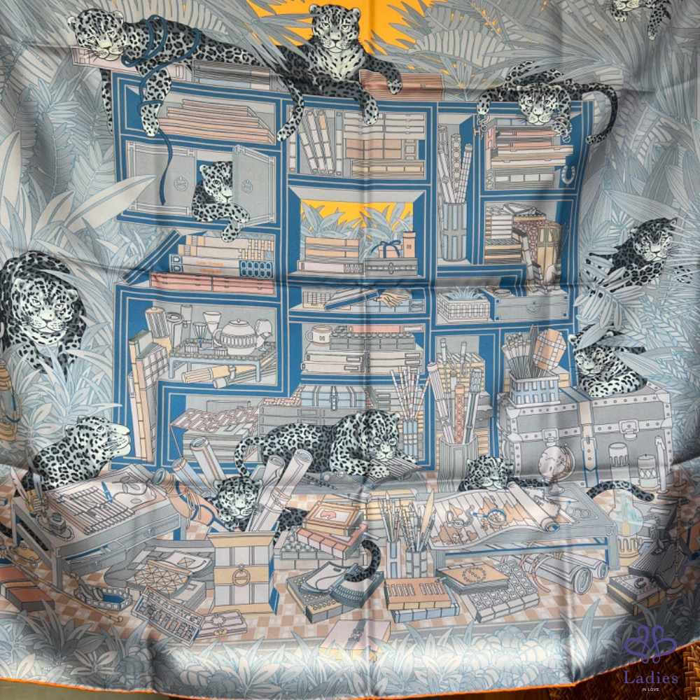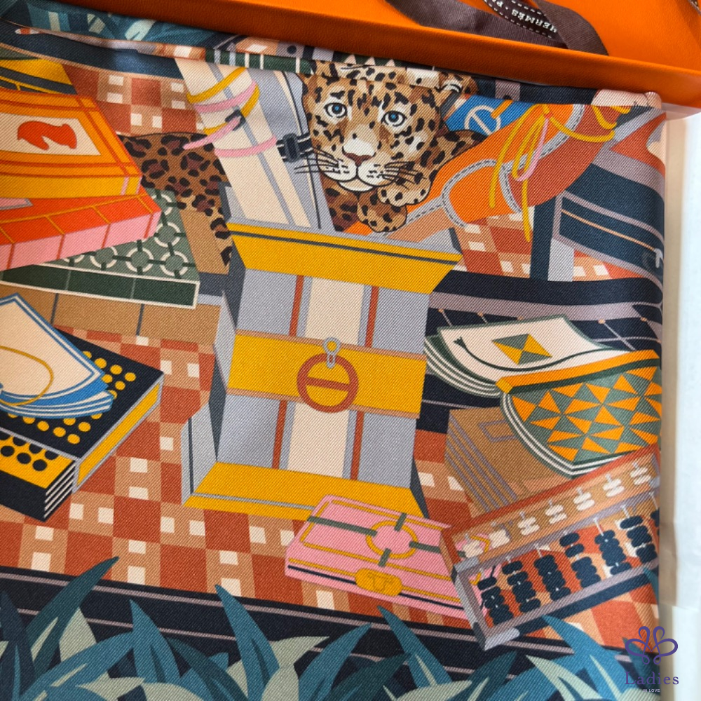 售 全新 Hermès 90x90 雙面絲巾 12 隻花豹