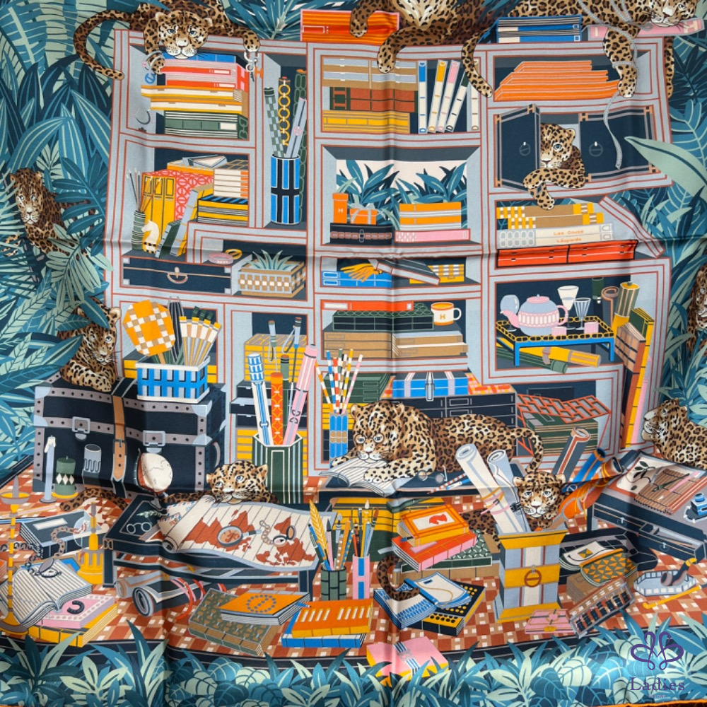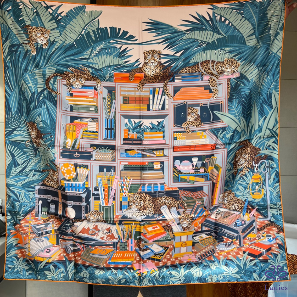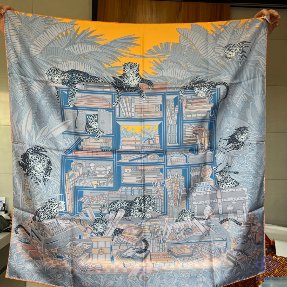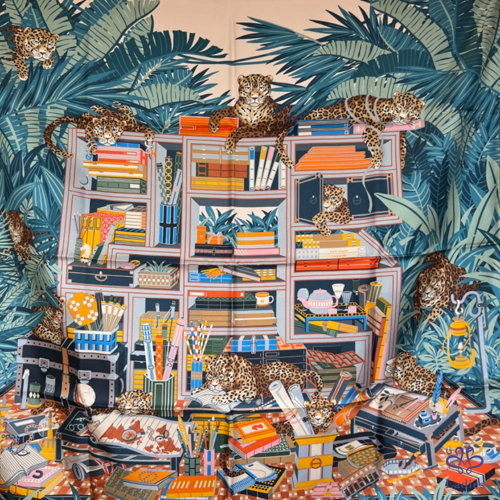 售 全新 Hermès 90x90 雙面絲巾 12 隻花豹