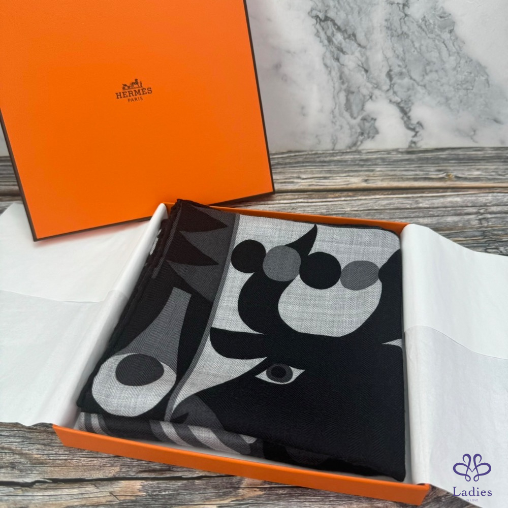 手工捲邊喀什米爾與真絲混紡方巾(70%喀什米爾,30%真絲)。小巧方巾採用Hermès標誌性的喀什米爾與真絲混紡材質印製而成,打造充滿現代感的陽剛風格。