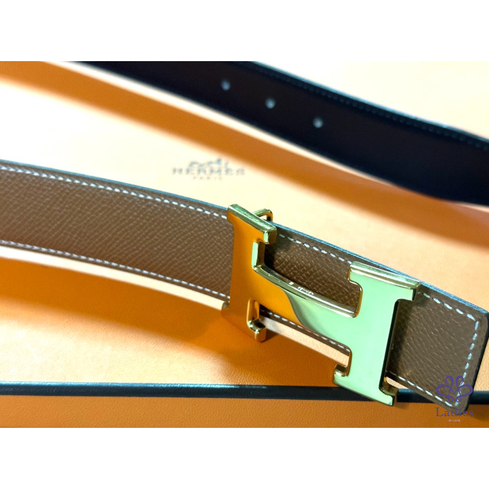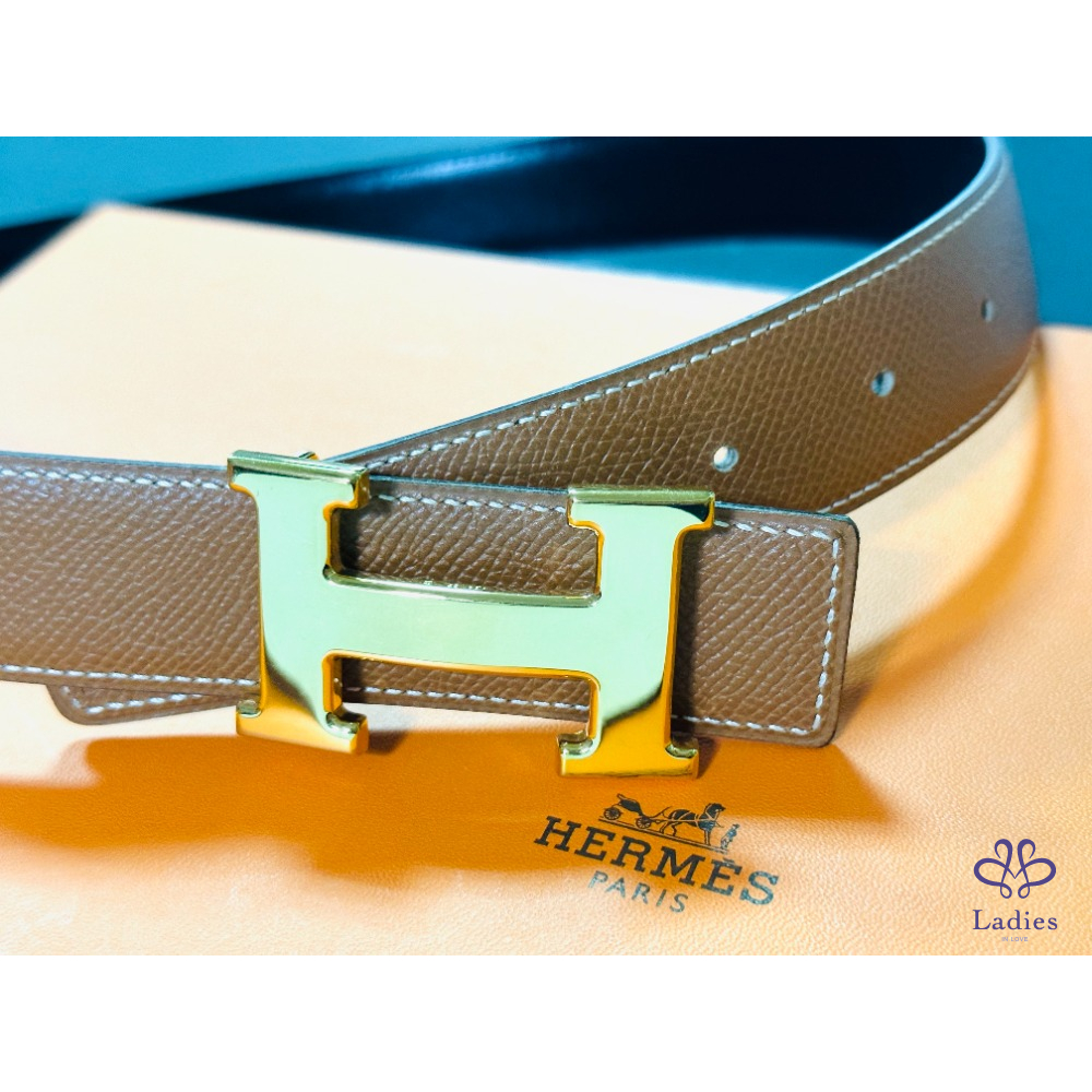 ~HERMES 金H扣頭 黑色/駝色雙面腰帶~70刻印