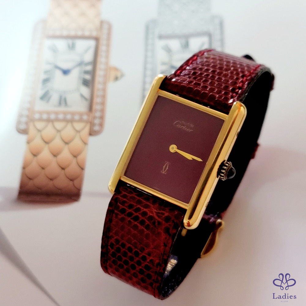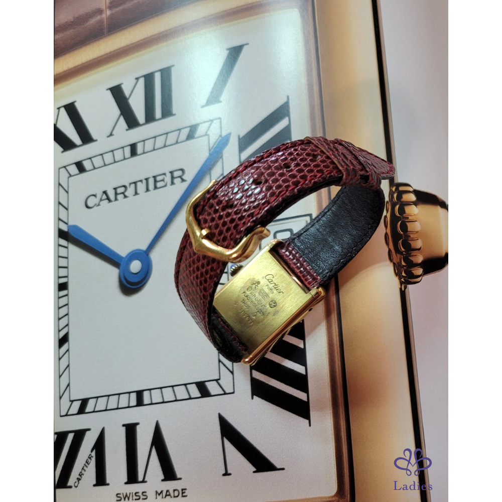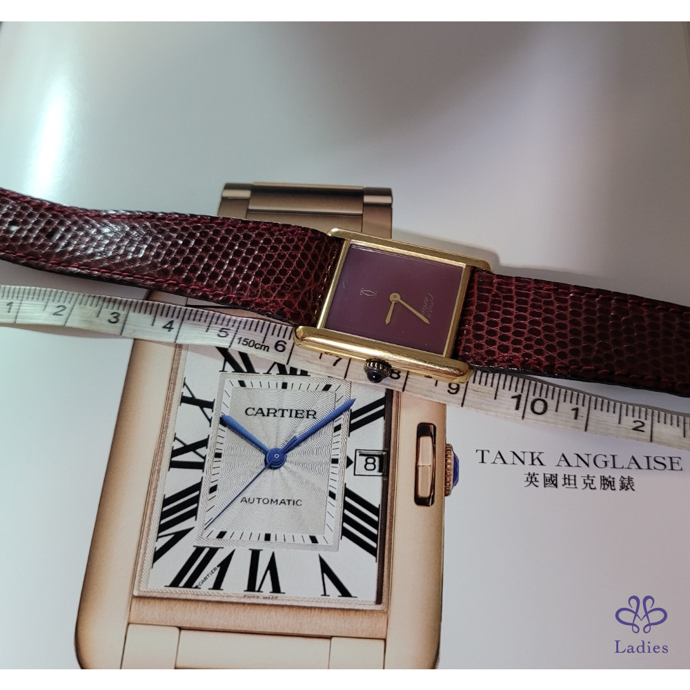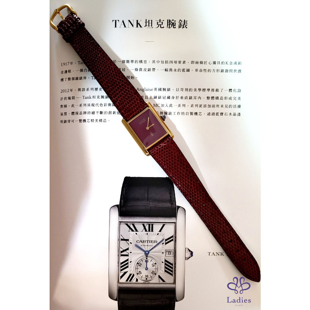 ~Cartier 附原廠盒 稀有珍藏 紅面+(全新)紅蜥蜴皮錶帶 大TANK 機械錶