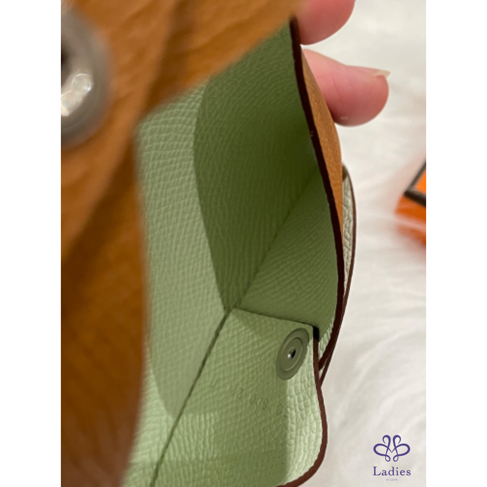 首頁 精品包包 愛馬仕Calvi 經典卡包 金棕拼氣泡綠