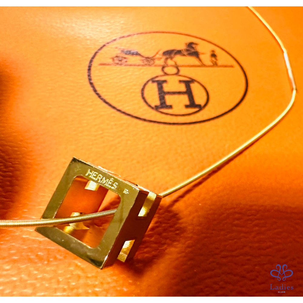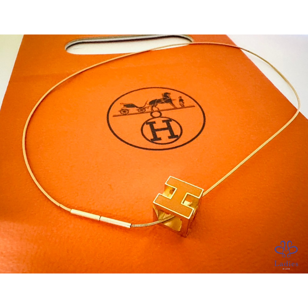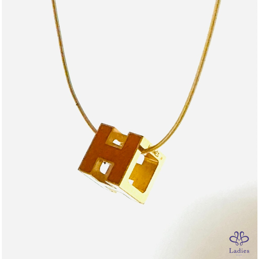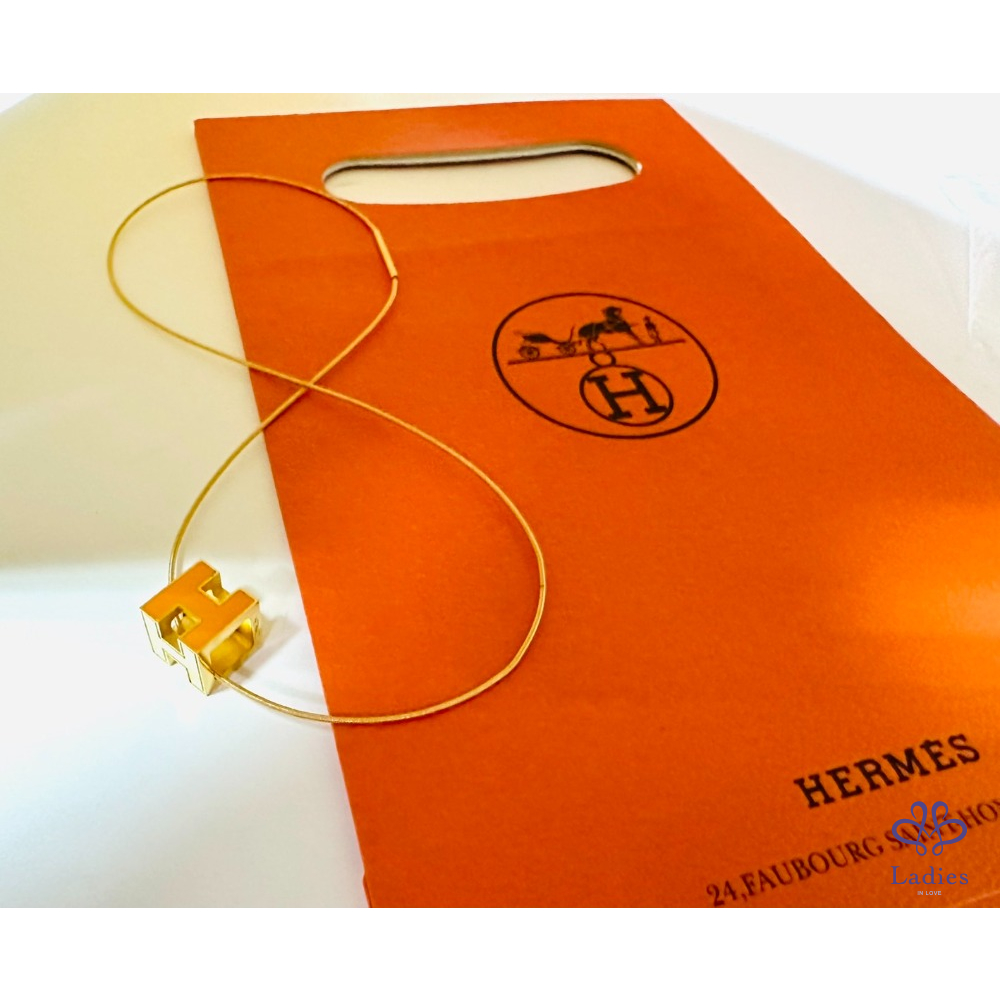 ~HERMES 原廠盒 極新極美 橘色+金色立方項鍊