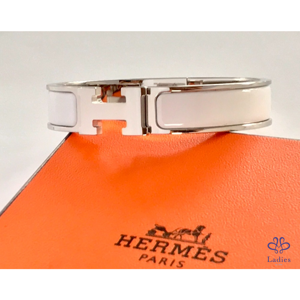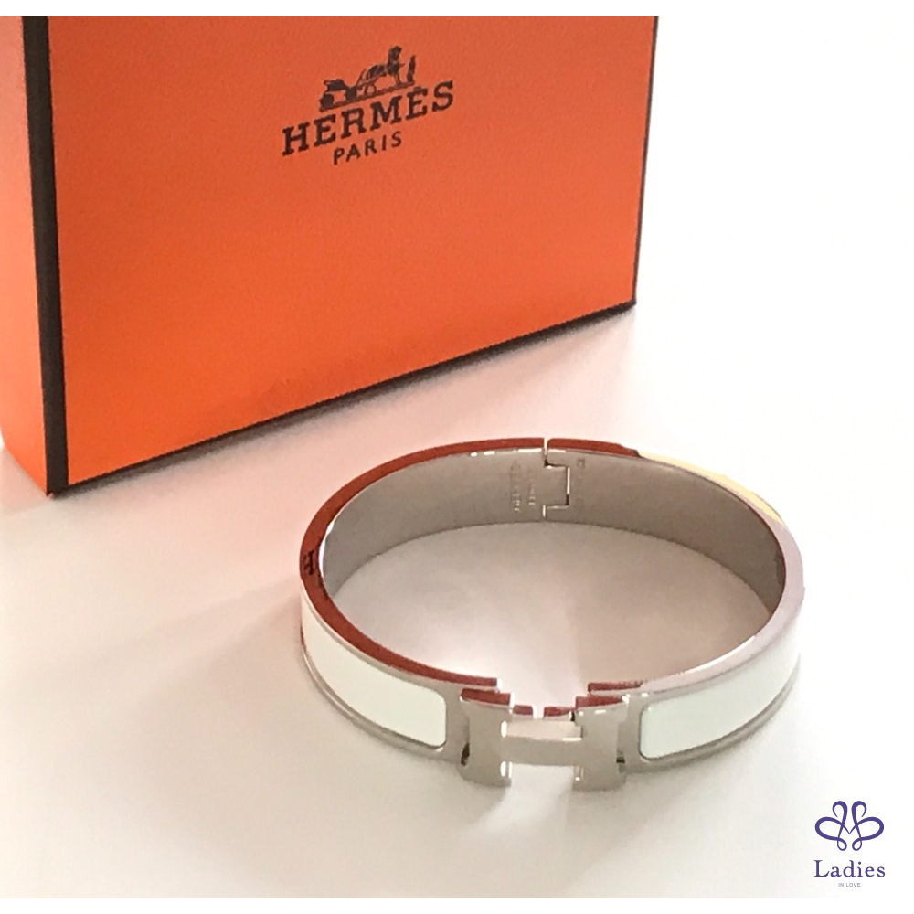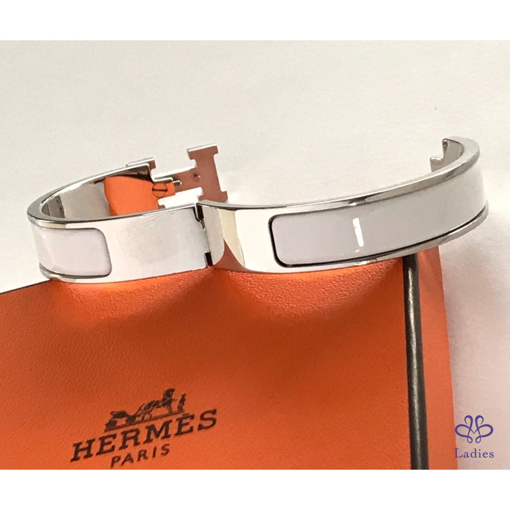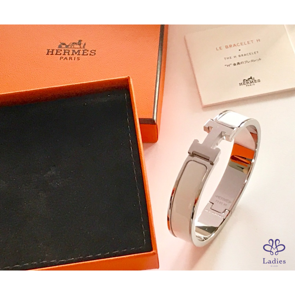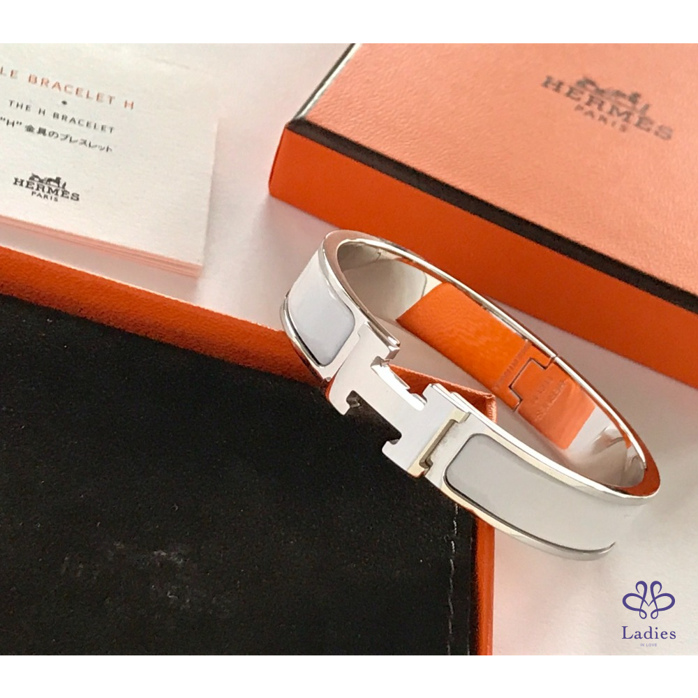 ~HERMES 極新極美 銀框白色H手環