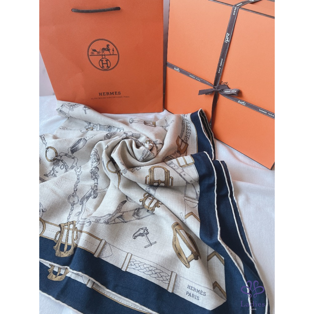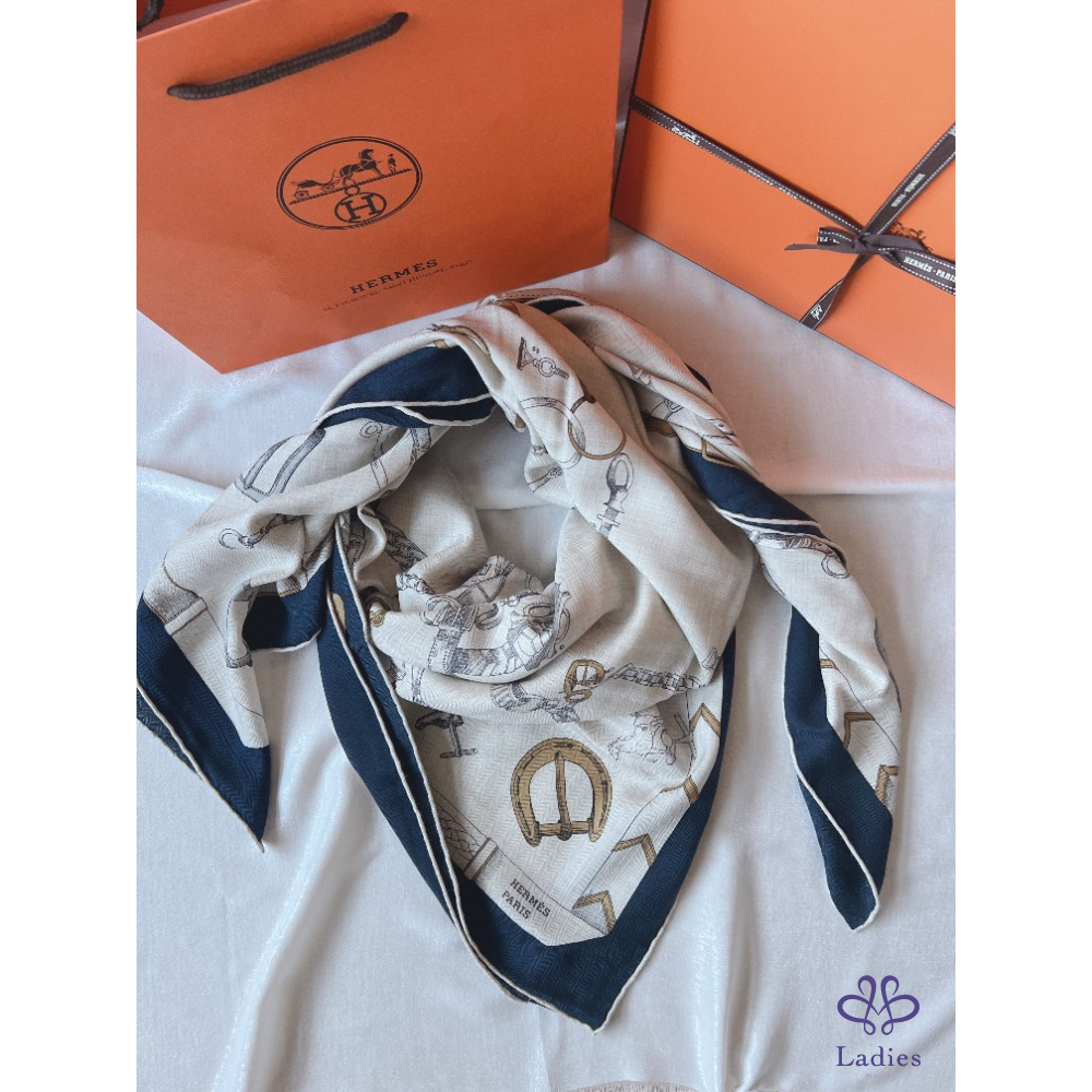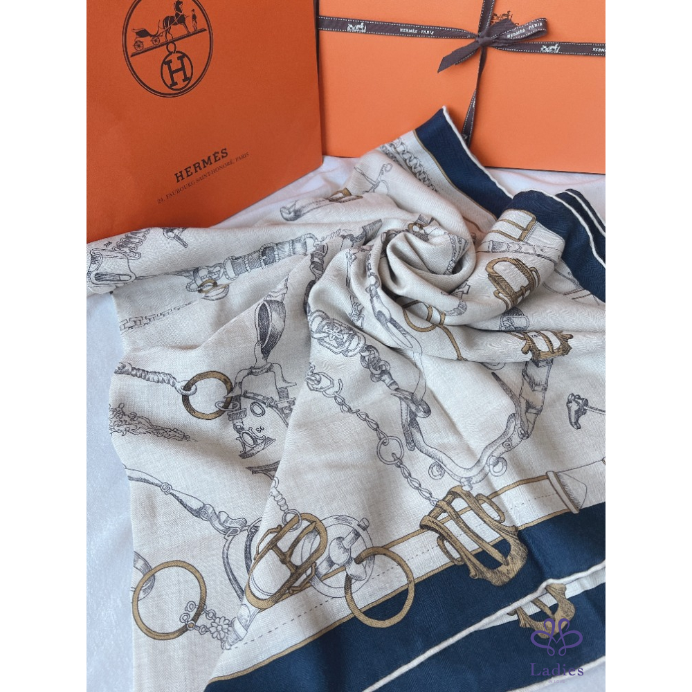 愛馬仕Hermes 華麗馬兒140披肩x褐米色|慕尼黑購證x全配