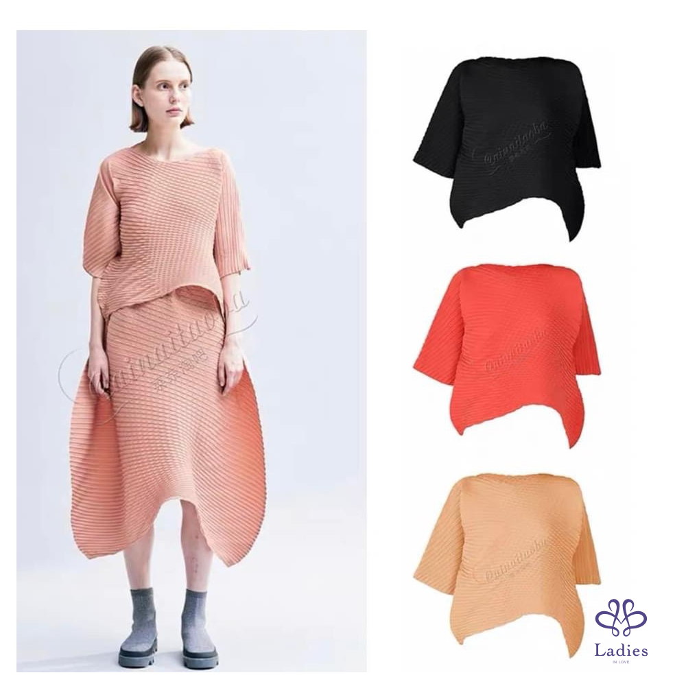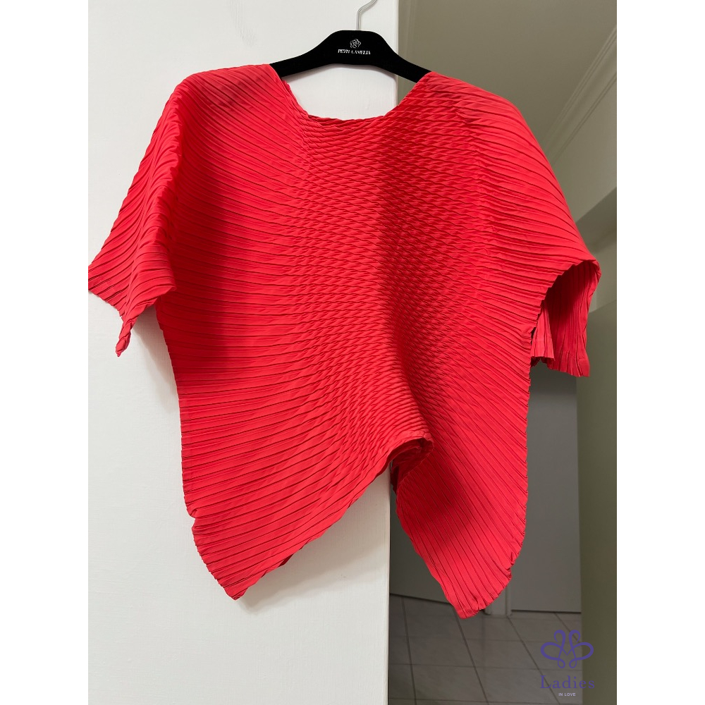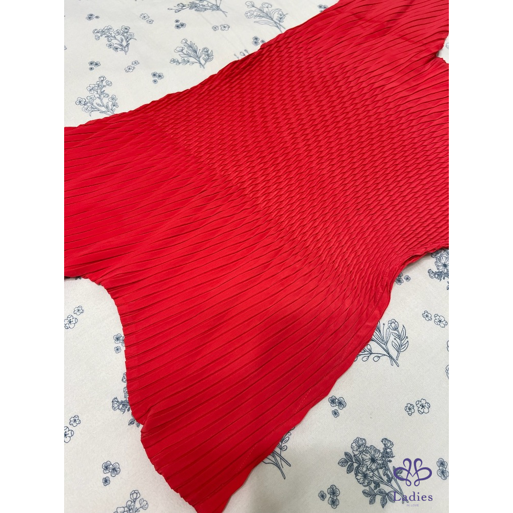 售三宅一生ISSEY MEYAKE 主線紅色魚鱗凝礦弦褶造型上衣,23年1月款,材質很輕柔更舒適,當然價格也較貴,上身非常有氣質;