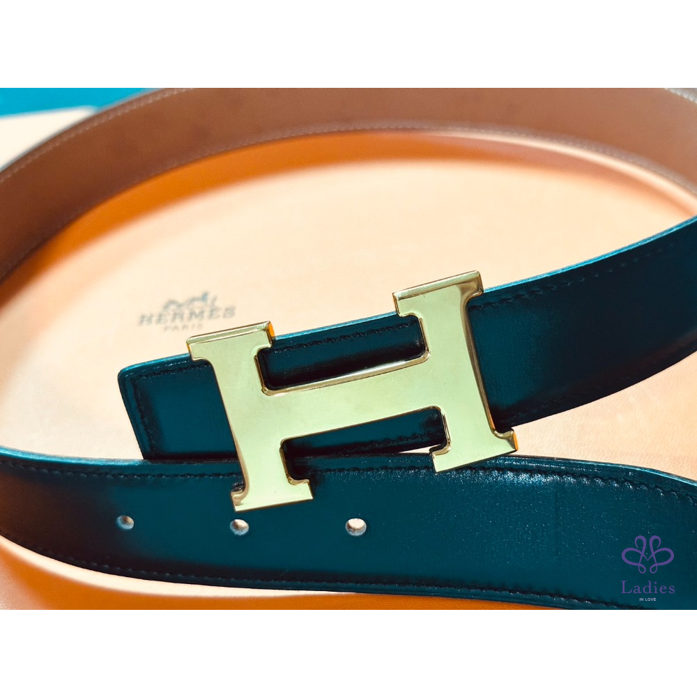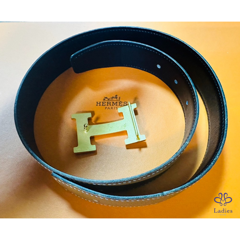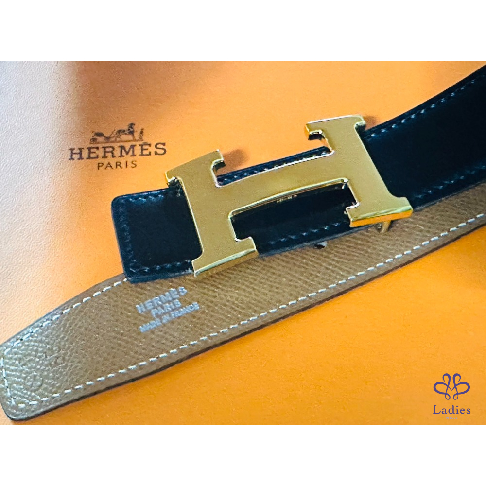 ~HERMES 金H扣頭+黑色/駝色雙色 腰帶~65刻印