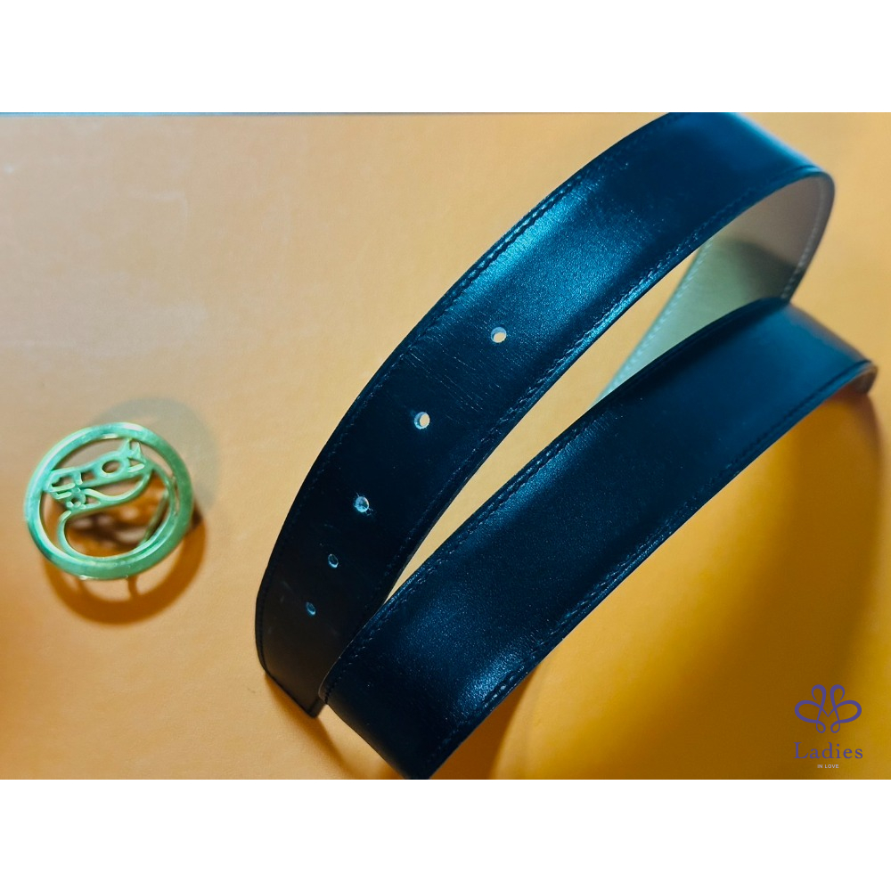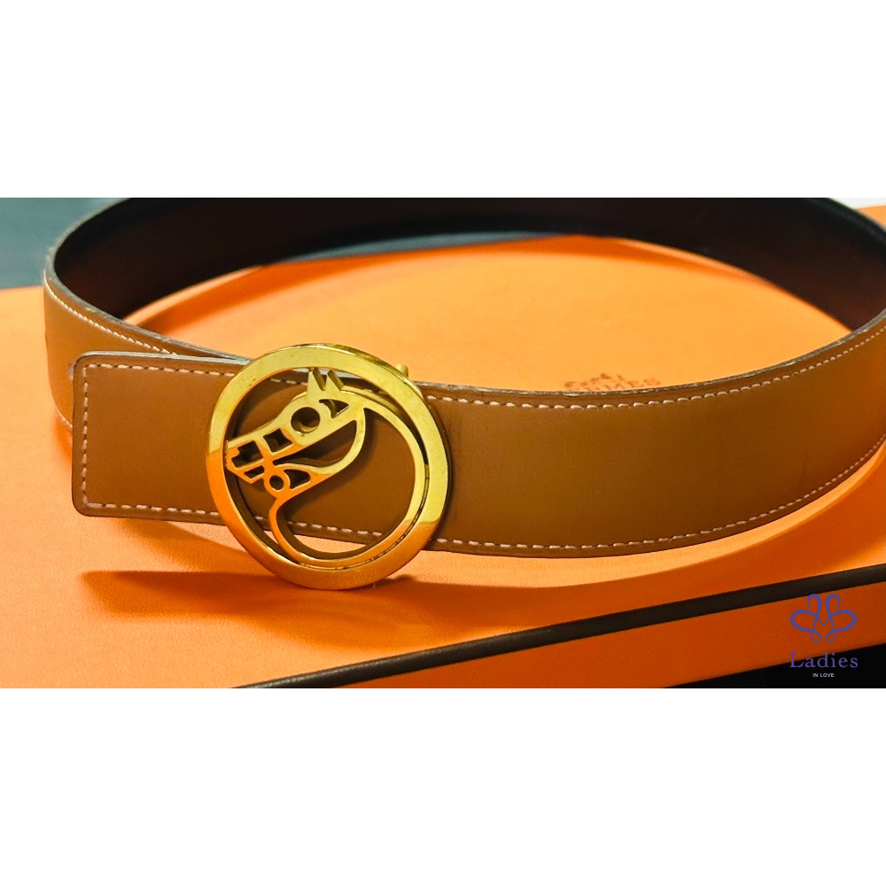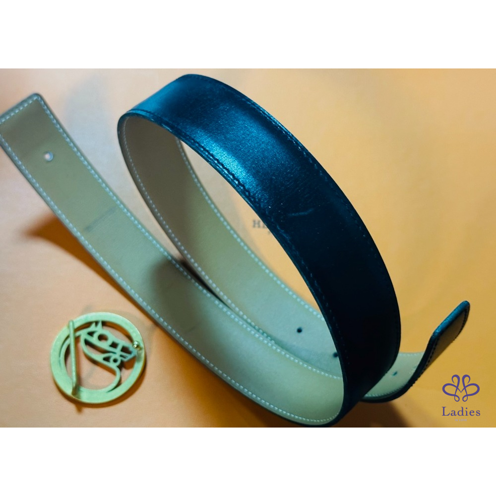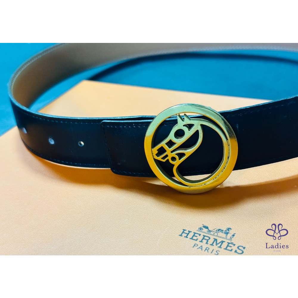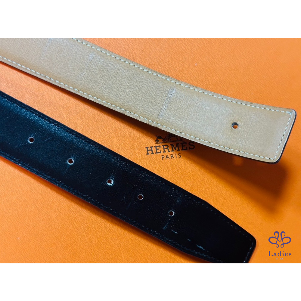 ~HERMES金馬扣頭+黑色+駝色雙面腰帶65刻印