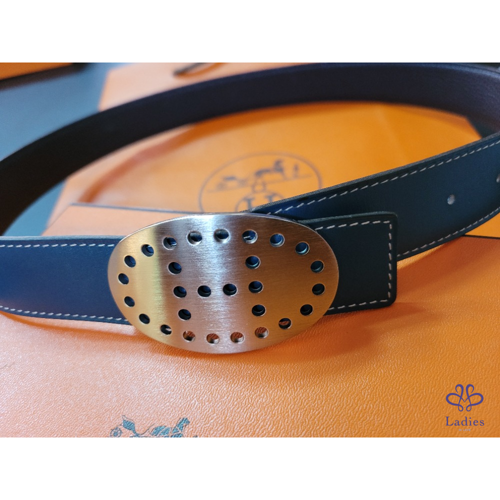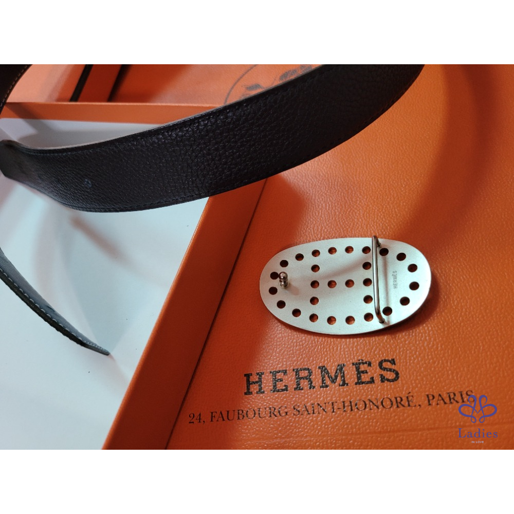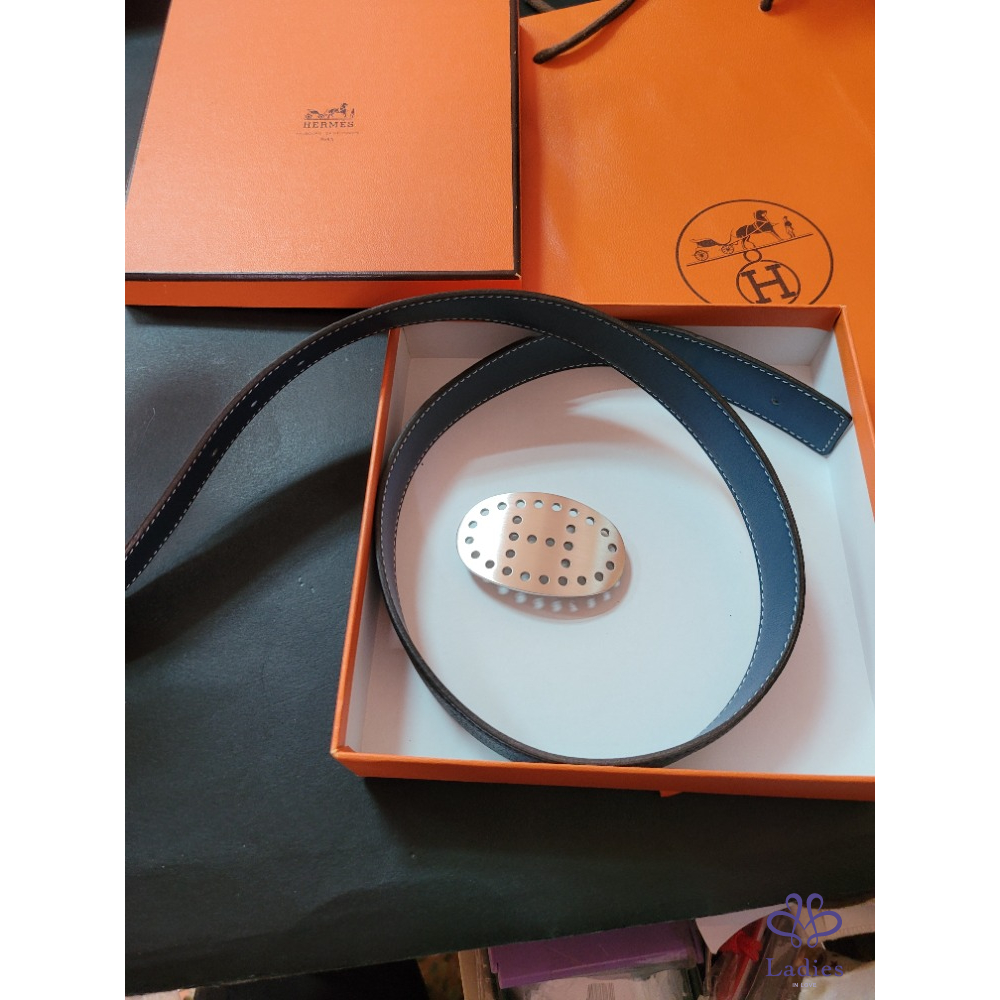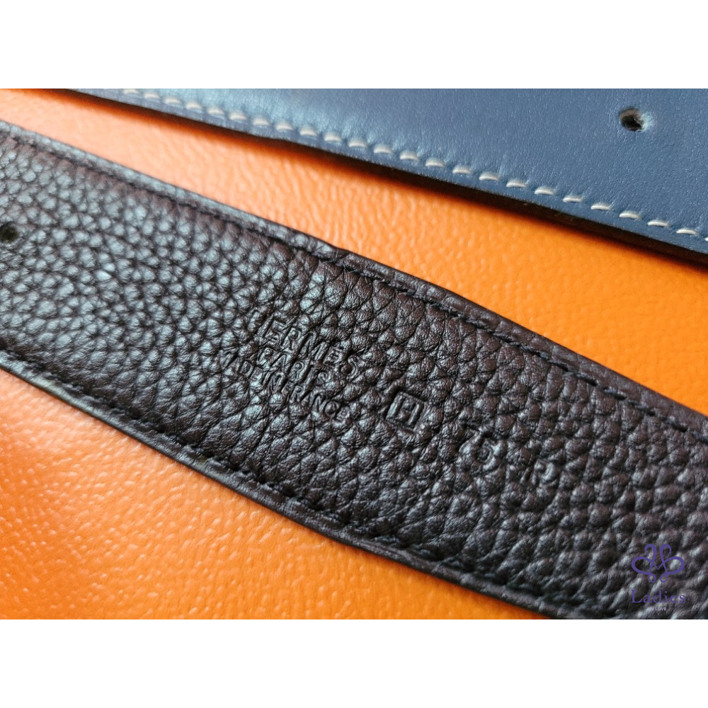 ~HERMES 極新極美 銀橢圓鏤空H扣頭 莫蘭迪色/咖啡色雙面腰帶~75刻印
