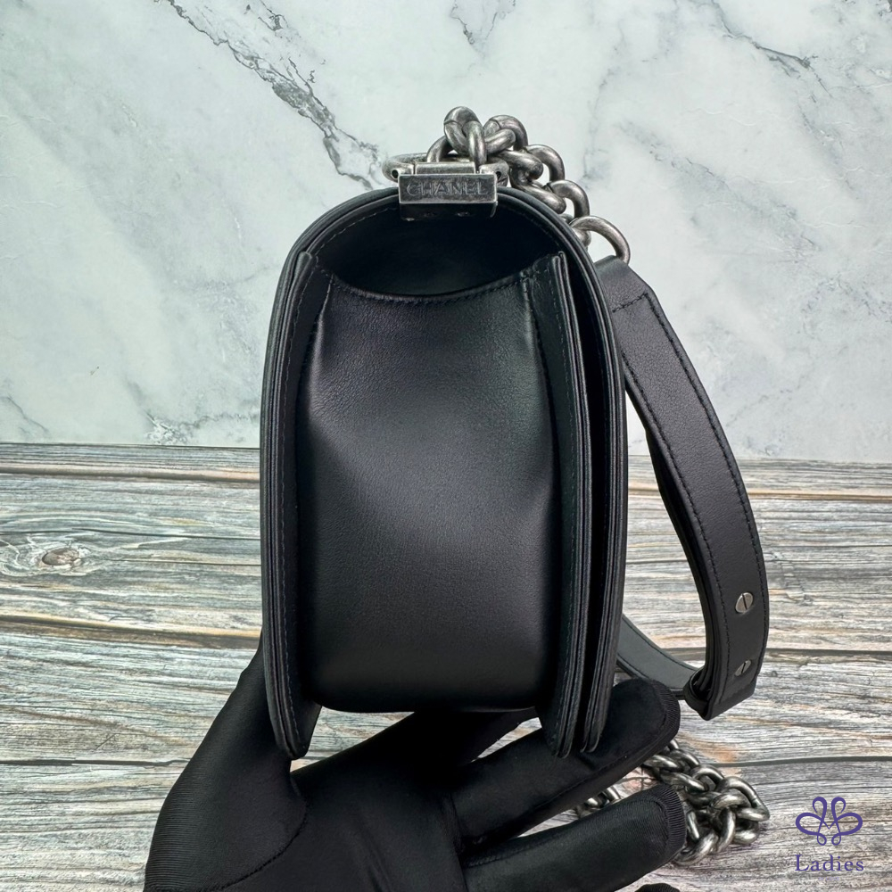 CHANEL 經典BOY25 系列滑面牛皮 黑銀