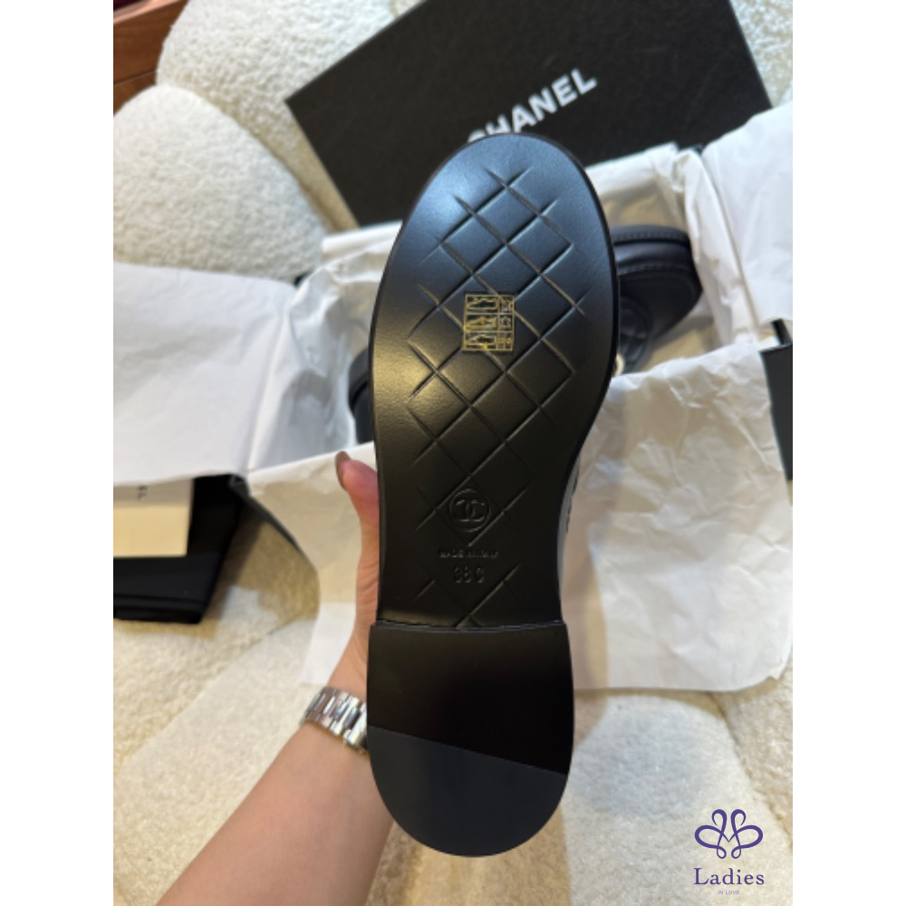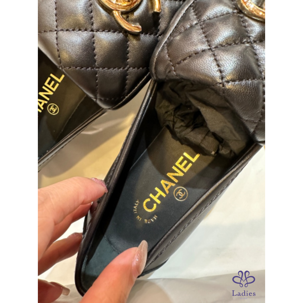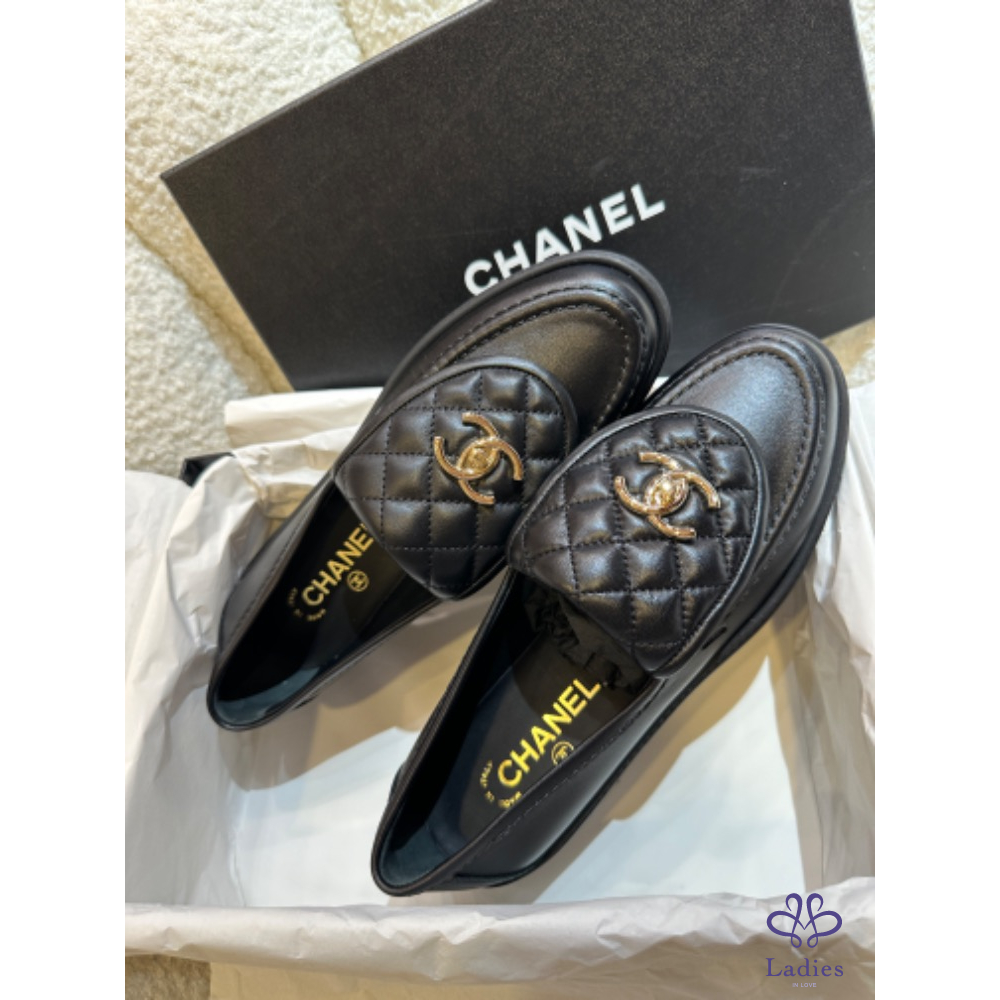 首頁 精品女鞋 CHANEL 樂福鞋38號 黑金 全新