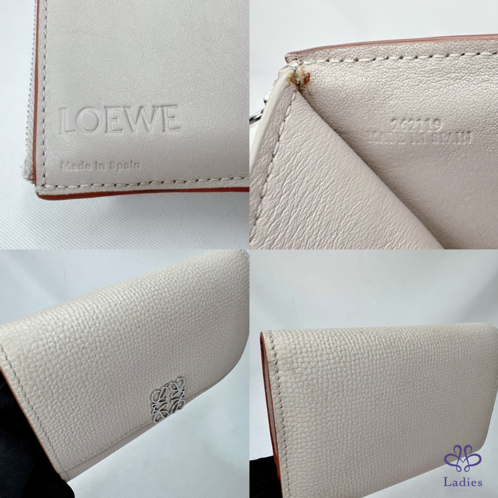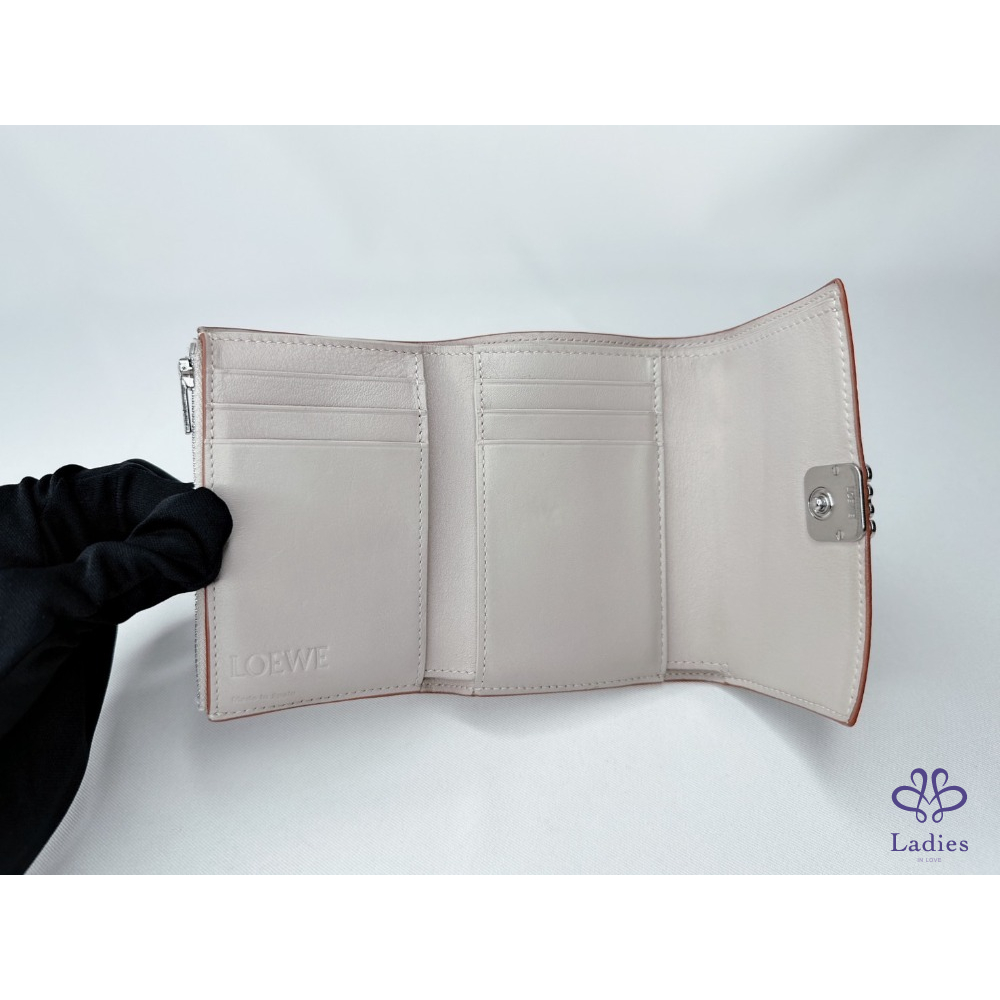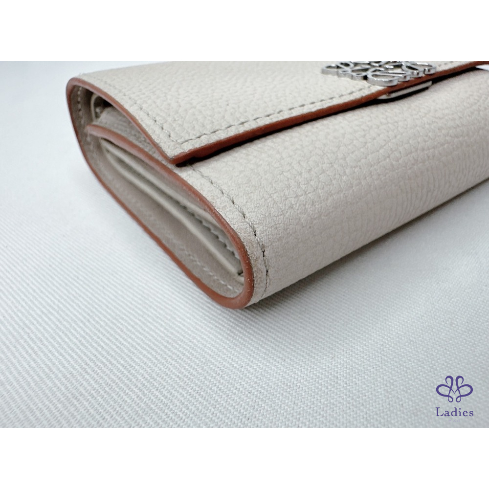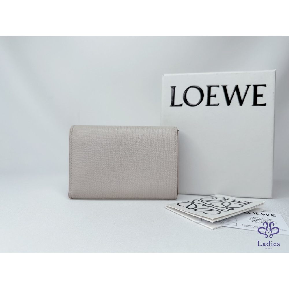 產品信息 【LOEWE Anagram卵石紋三折短夾】 採用淺灰色卵石紋小牛皮和紅棕色飾邊 配Anagram按扣開合扣 6個卡夾層 │ 2個證件夾層 1個鈔票層 │ 1個拉鍊零錢袋 整體包況新舊如圖,二手商品均有正常使用/存放痕跡 型號:C821S33X01 尺寸:11.8x8.2x3cm 附件:原廠盒、說明書 #A113020701