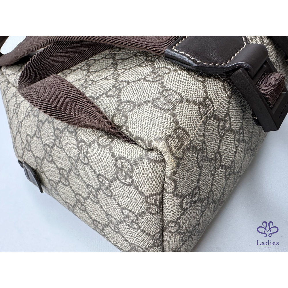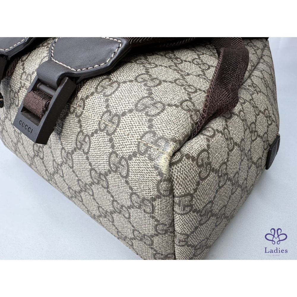 產品信息 【GUCCI 小型老花帆布雙肩後背包】 這款背包採用了經典的GG Supreme設計 此帆布常年皆是每個系列的重點 寬敞內部隔層、雙頭拉鍊、正面拉鍊袋 足以應付一日外出所需 整體包況新舊如圖,二手商品均有正常使用/存放痕跡 型號:271327 尺寸:25x32x11cm 附件:原廠防塵袋 #A113022701