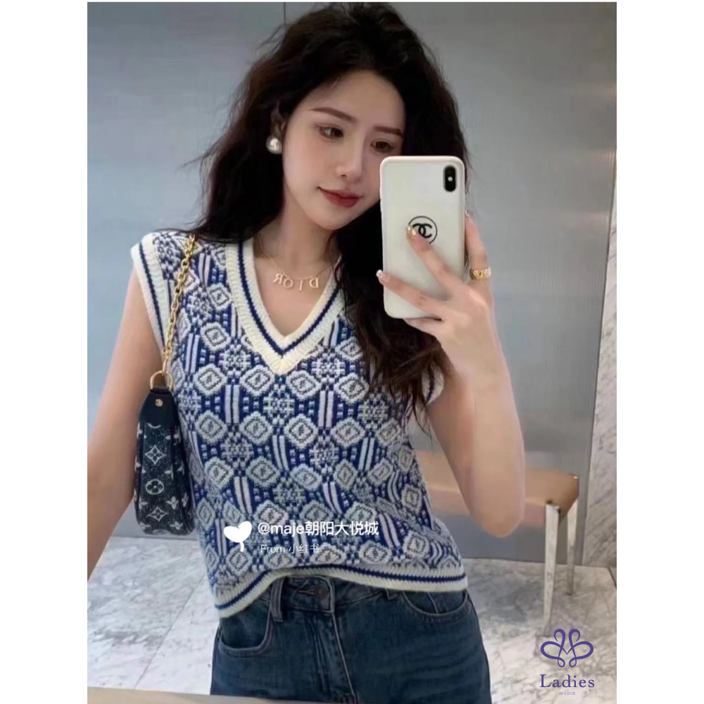 首頁 精品服飾 Maje Paris絕美青花瓷藍背心