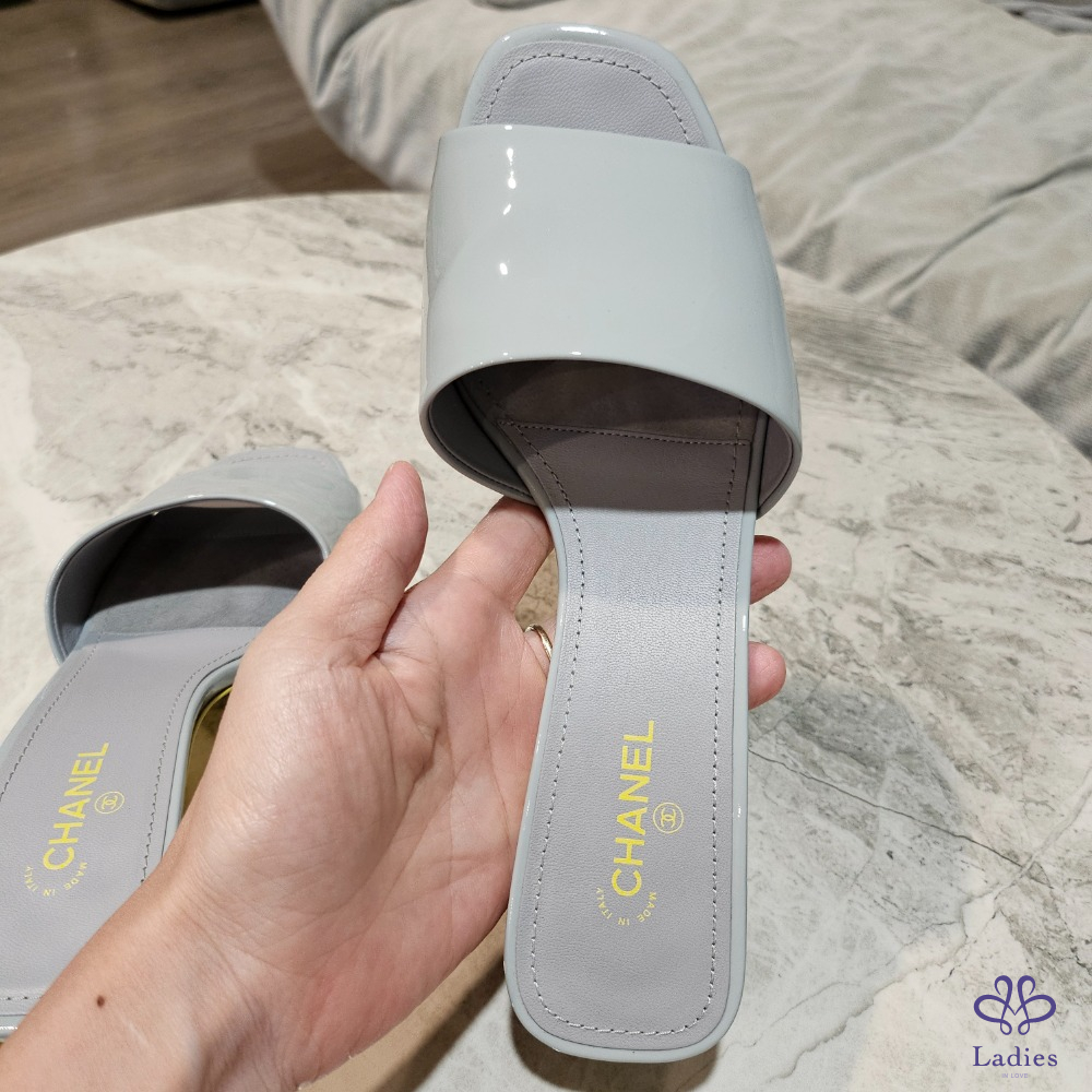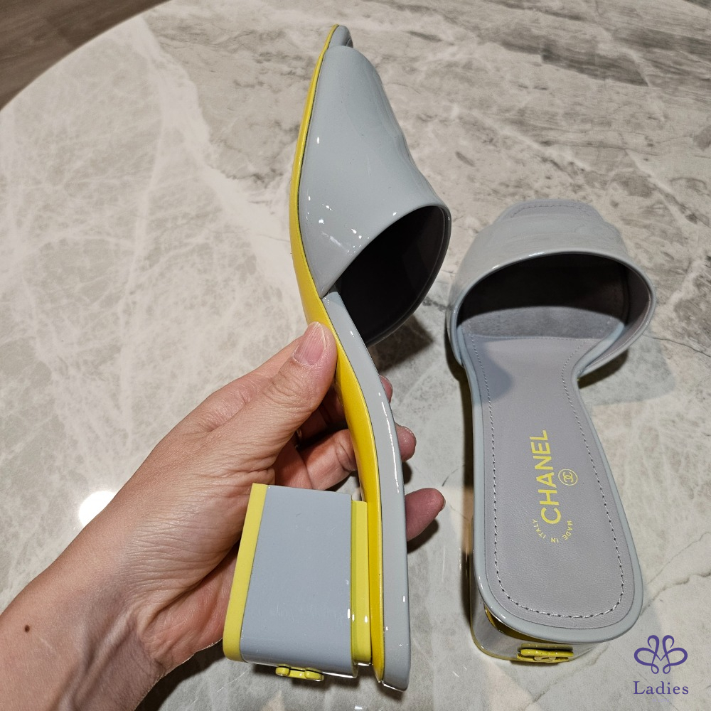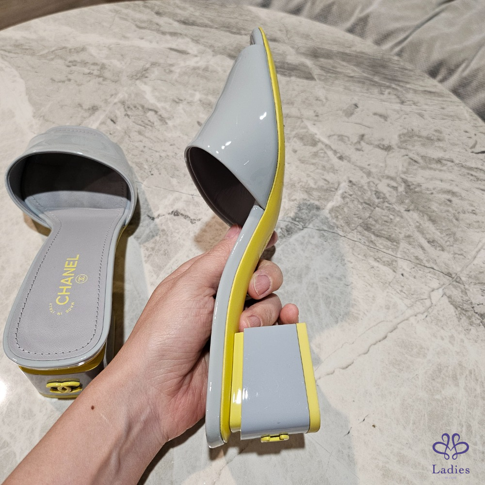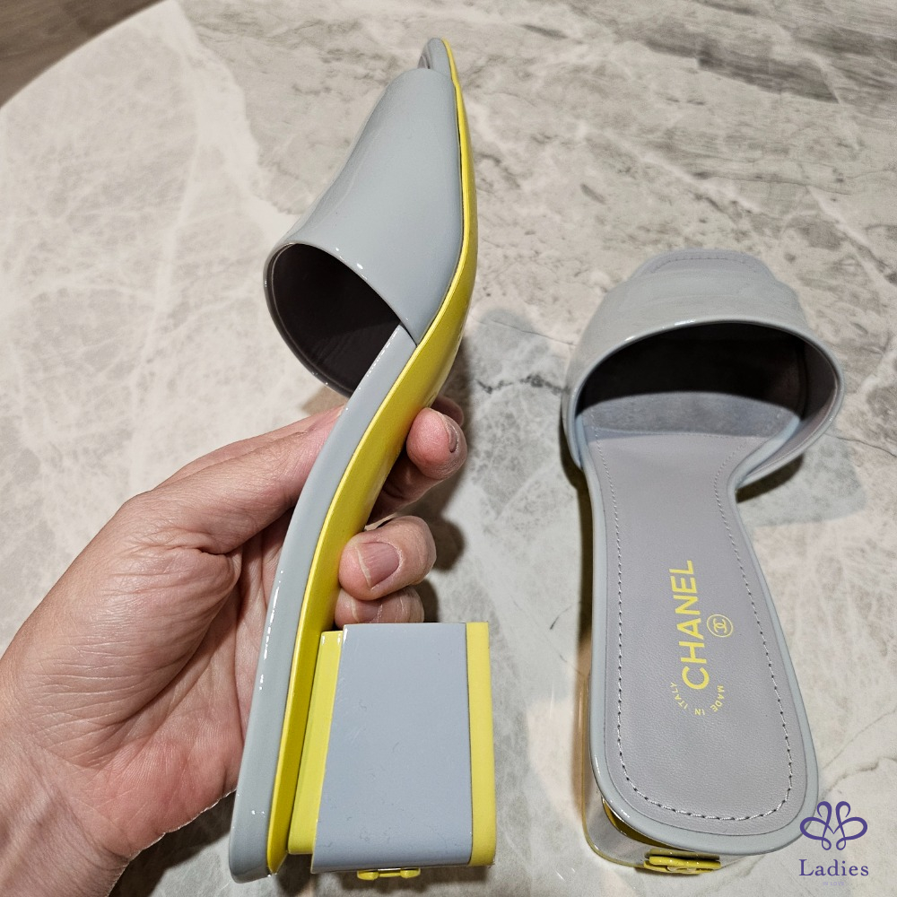可愛優雅的香奈兒灰藍撞色短跟涼鞋