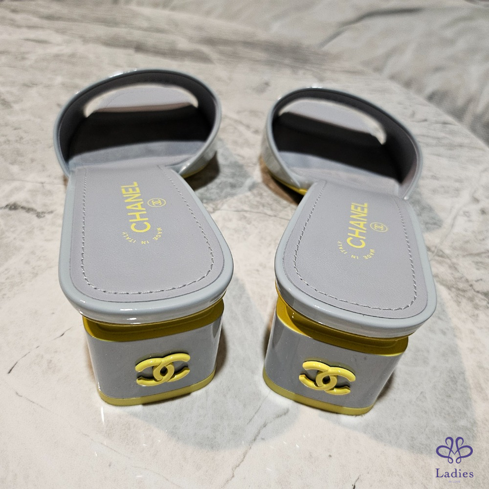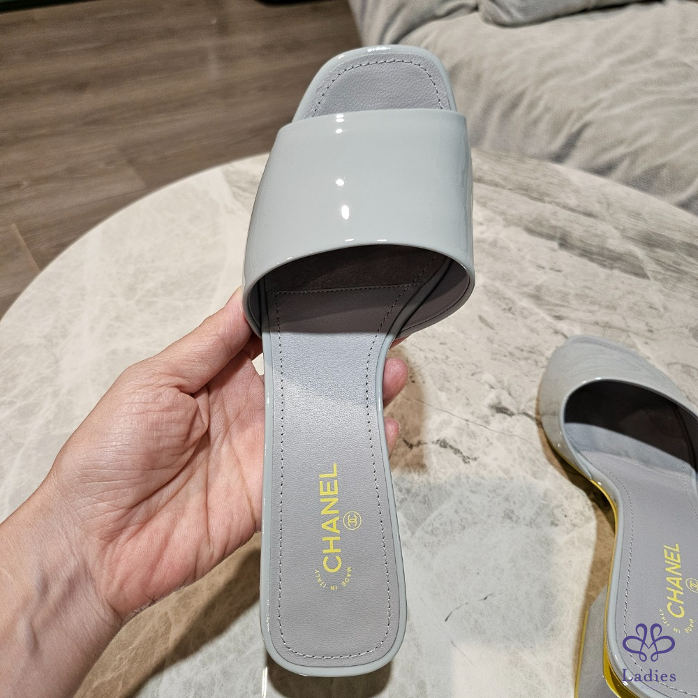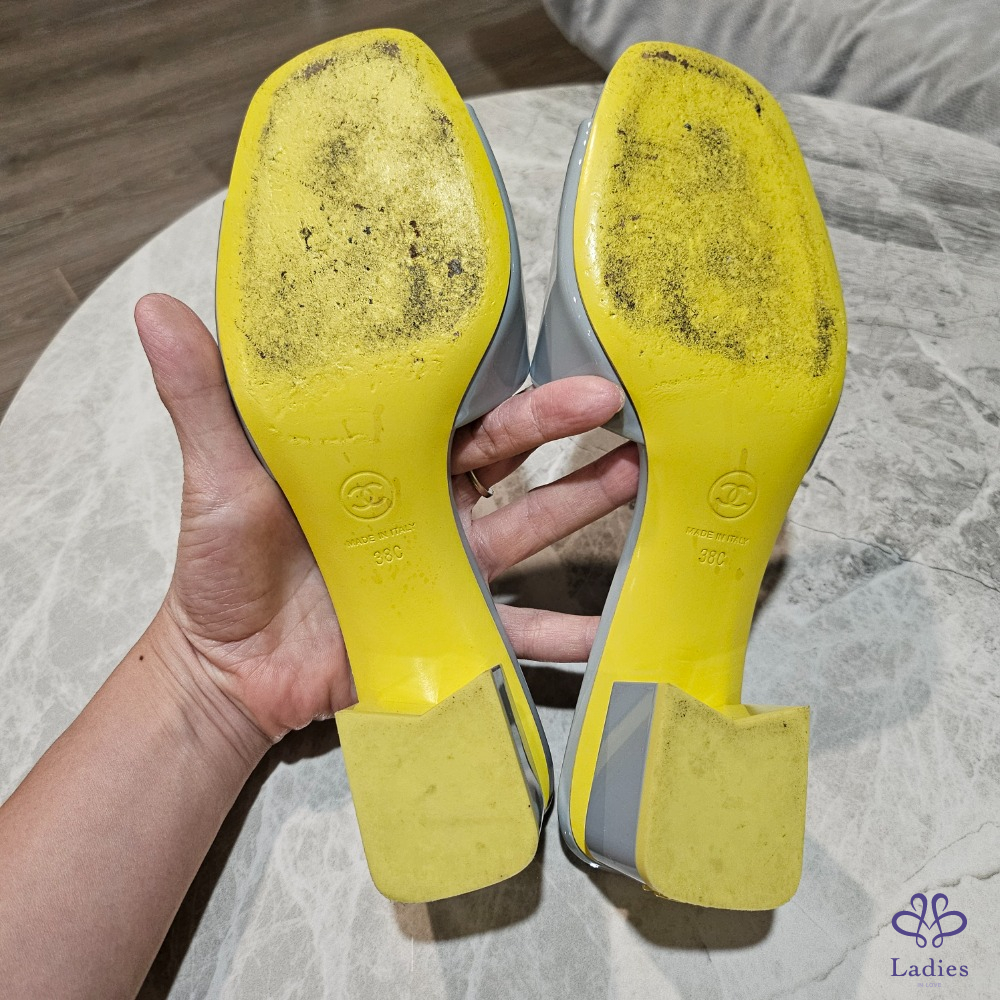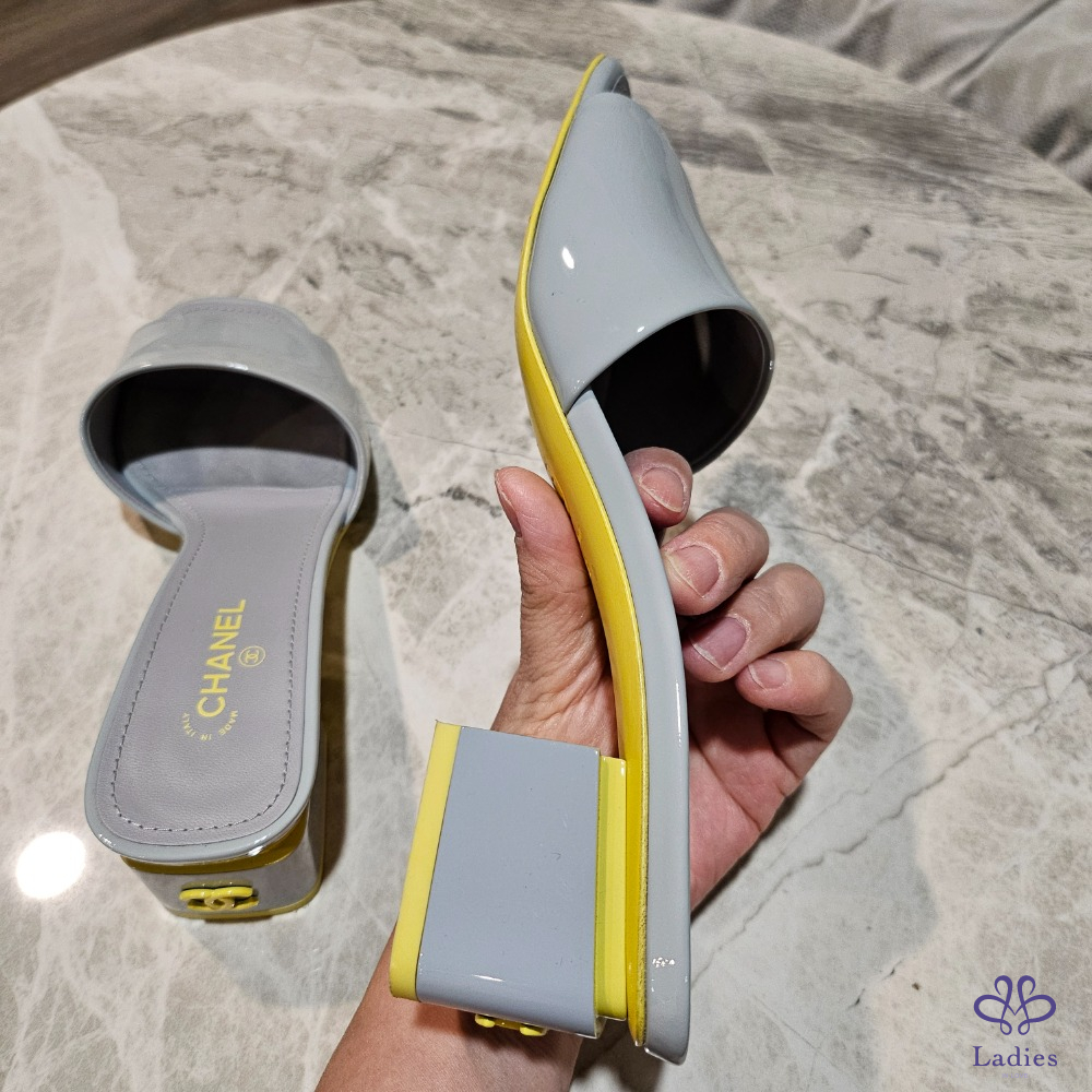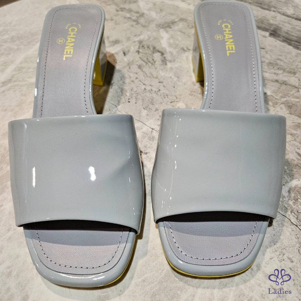可愛優雅的香奈兒灰藍撞色短跟涼鞋