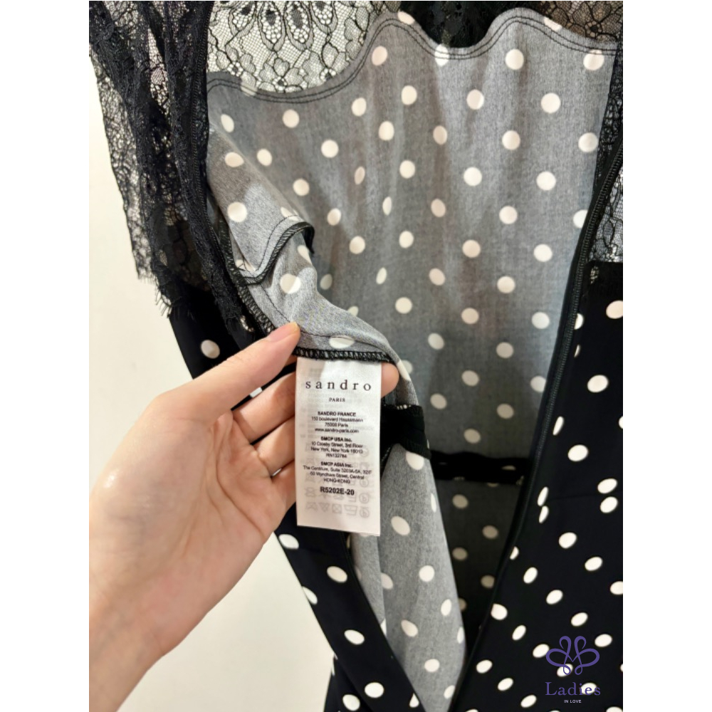 SANDRO 法式波點蝴蝶結透膚蕾絲