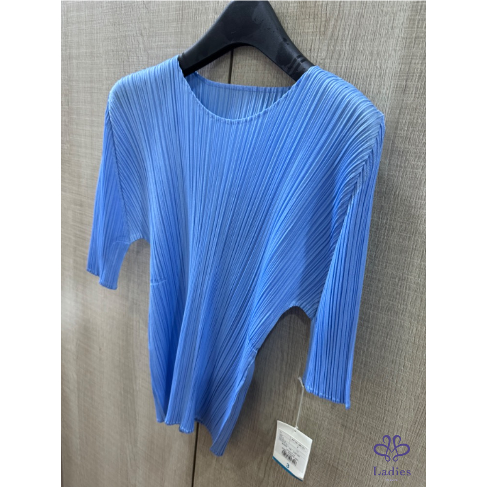 首頁 精品服飾 三宅ㄧ生pp水藍色五分袖上衣