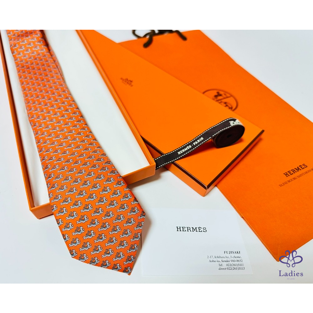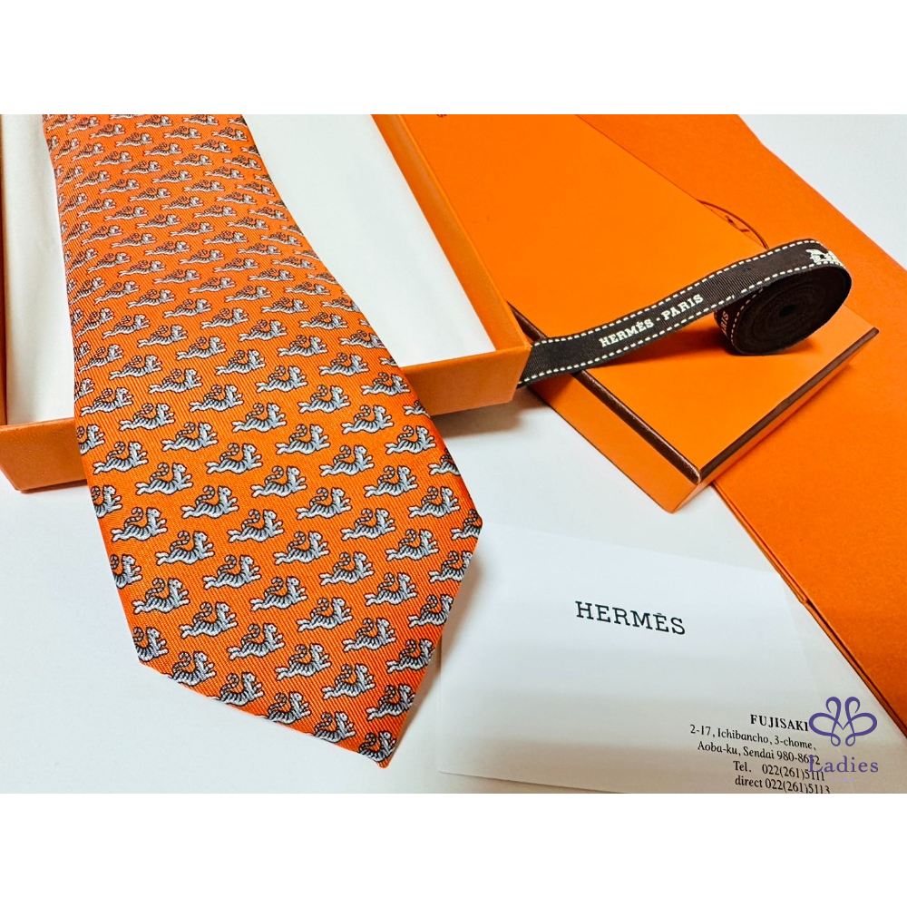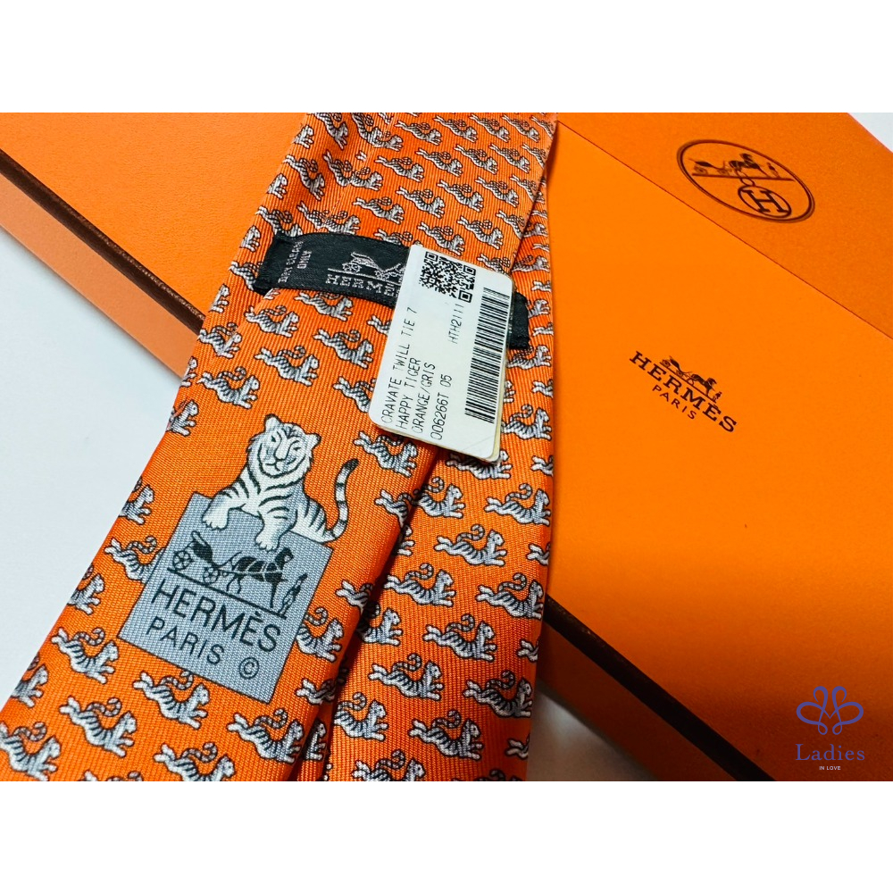 ~HERMES 附原廠盒 全新 虎虎生風圖案 領帶