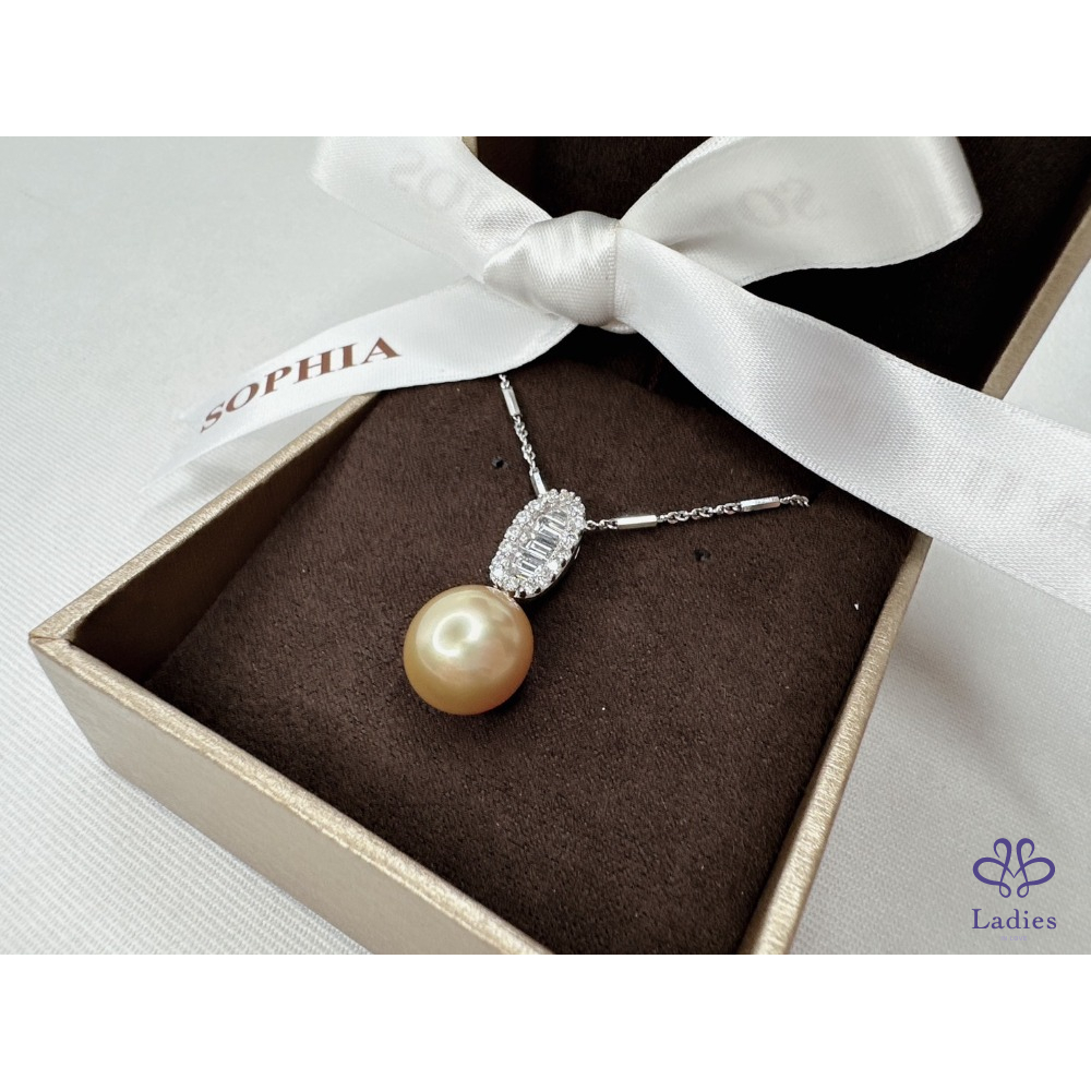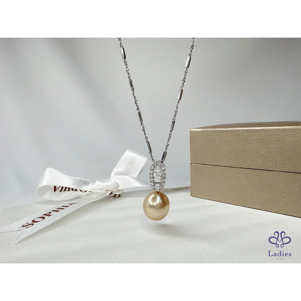 產品信息 【蘇菲亞 SOPHIA 18K南洋金珠鑽鍊】 #585白K墬鍊 #750白K墬頭 #金珠約12mm #配鑽約66分 南洋金珠是一種呈金色的海水珍珠 珠層質感厚實飽滿光亮,配戴極其尊貴高雅 整體品項約9成8新,二手商品均有正常使用/存放痕跡 總長:約24.5cm(含金珠/鑽) 附件:原廠鍊盒 #B1120615