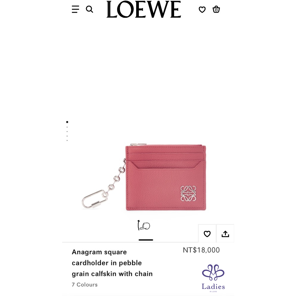 首頁 精品包包 LOEWE小牛皮Anagram 方形鍊條卡片套全新