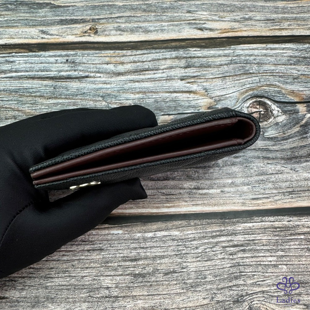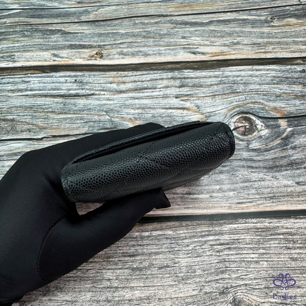CHANEL 荔枝牛皮對開短夾/卡夾 黑淡金 芯片款