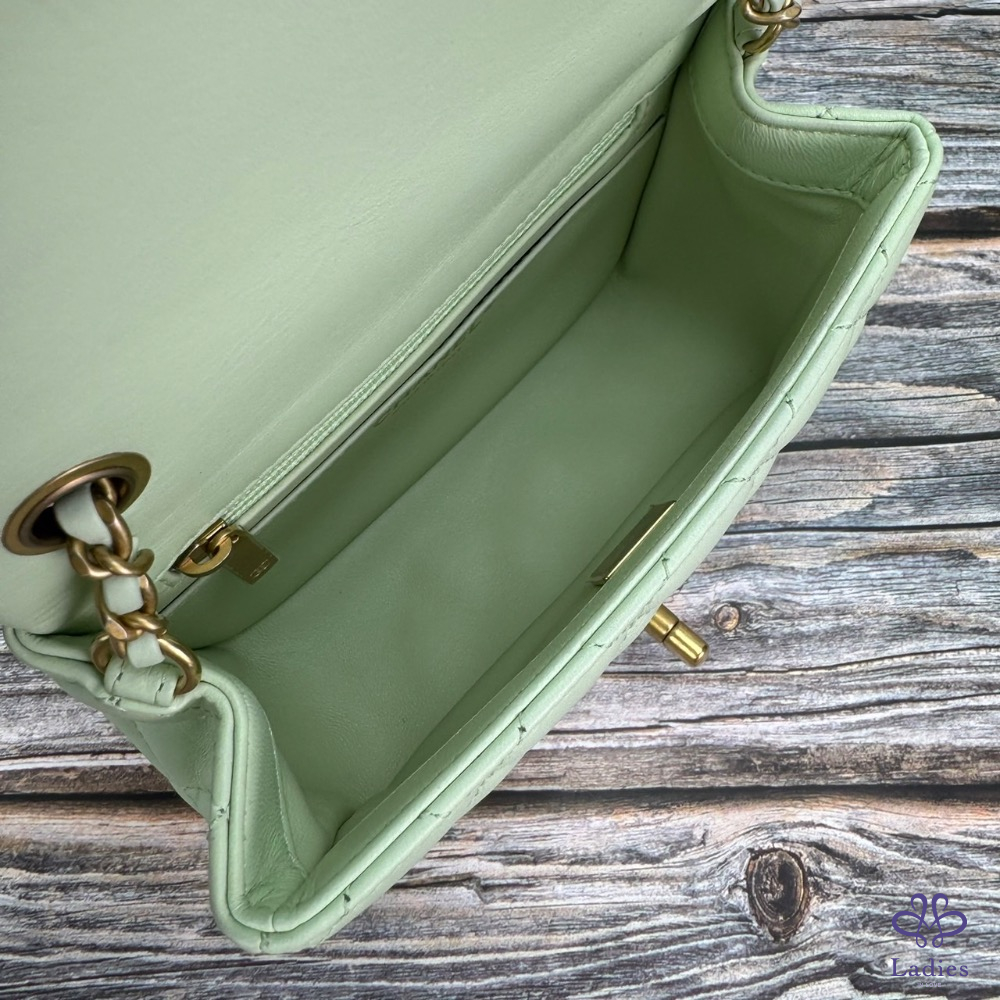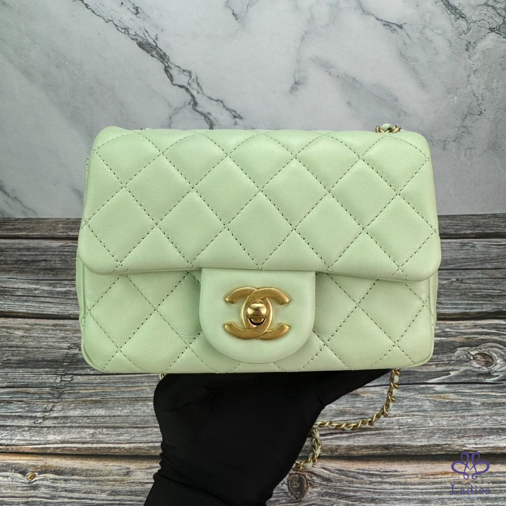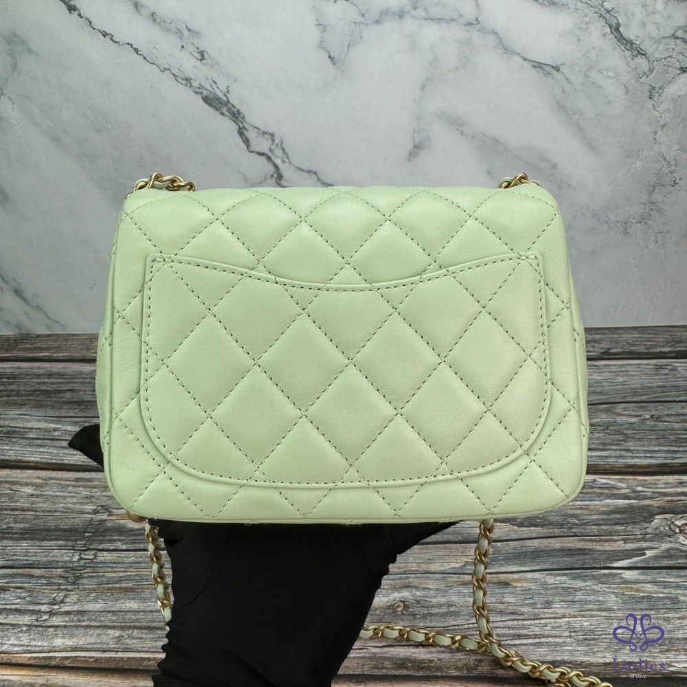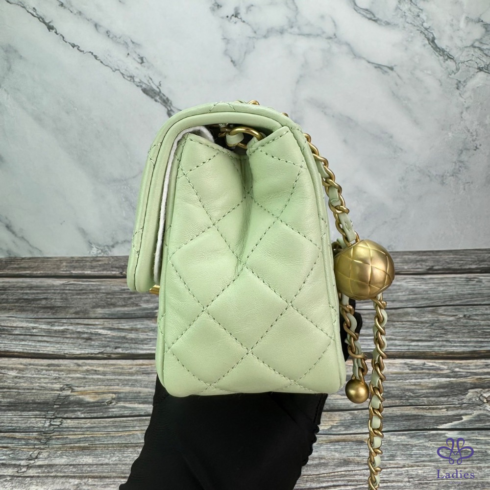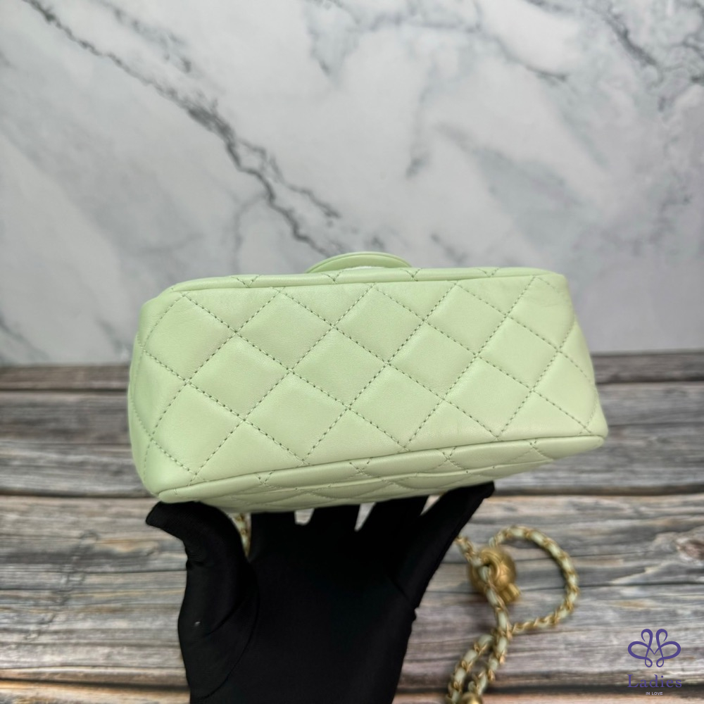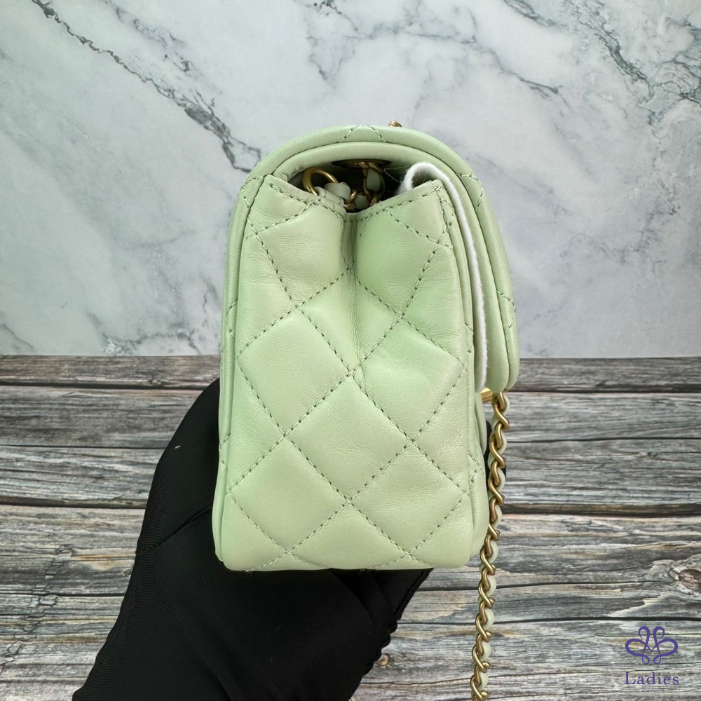 #CHANEL 金球方胖蘋果綠金扣 芯片款