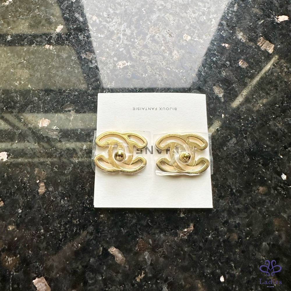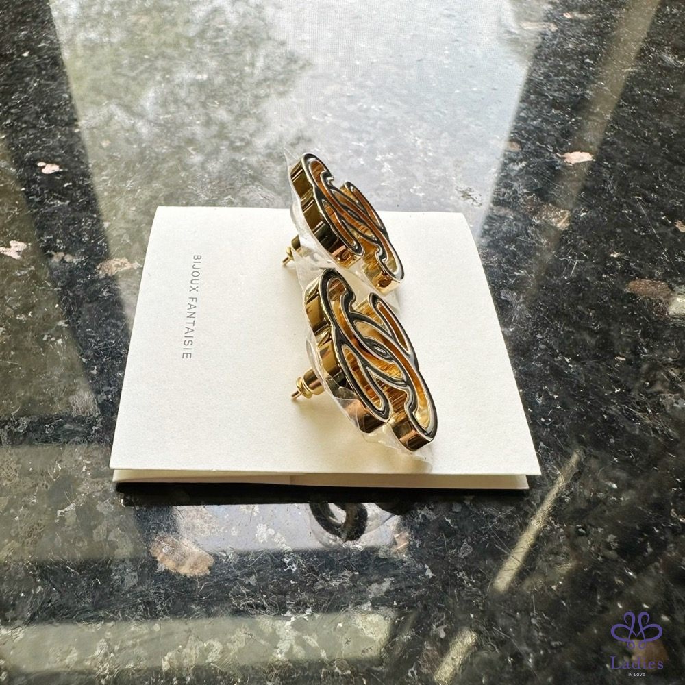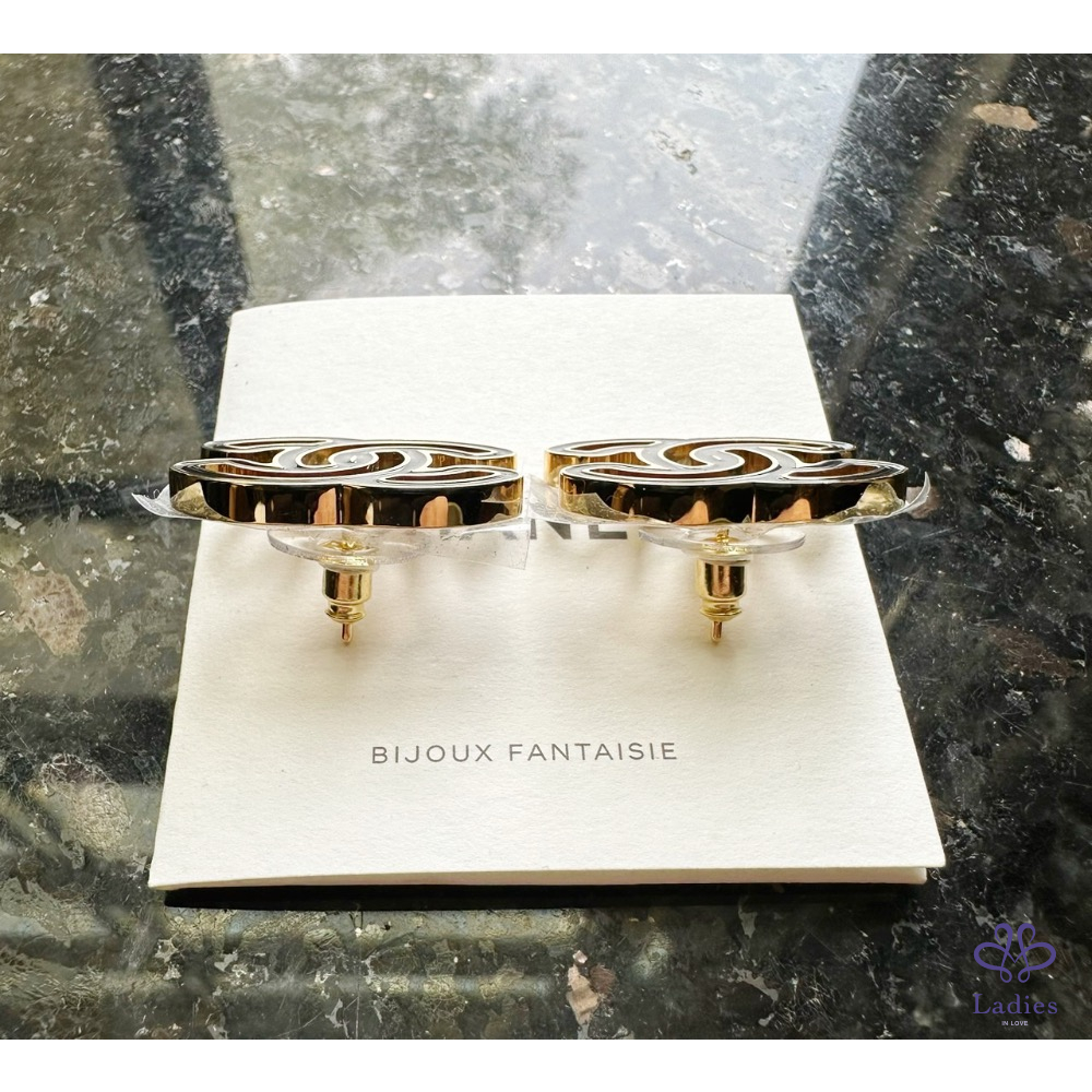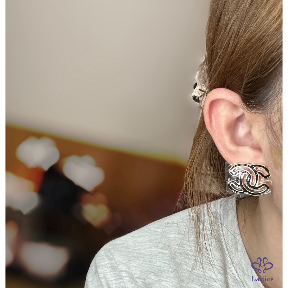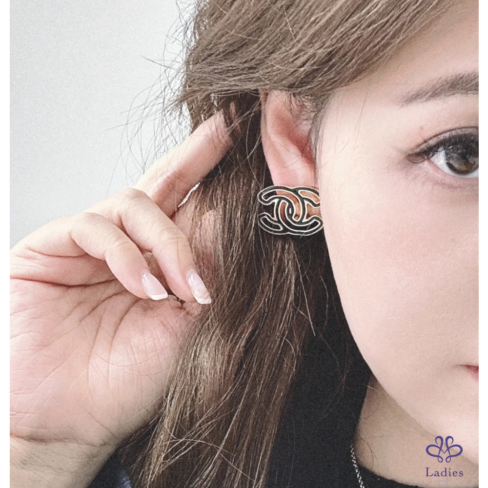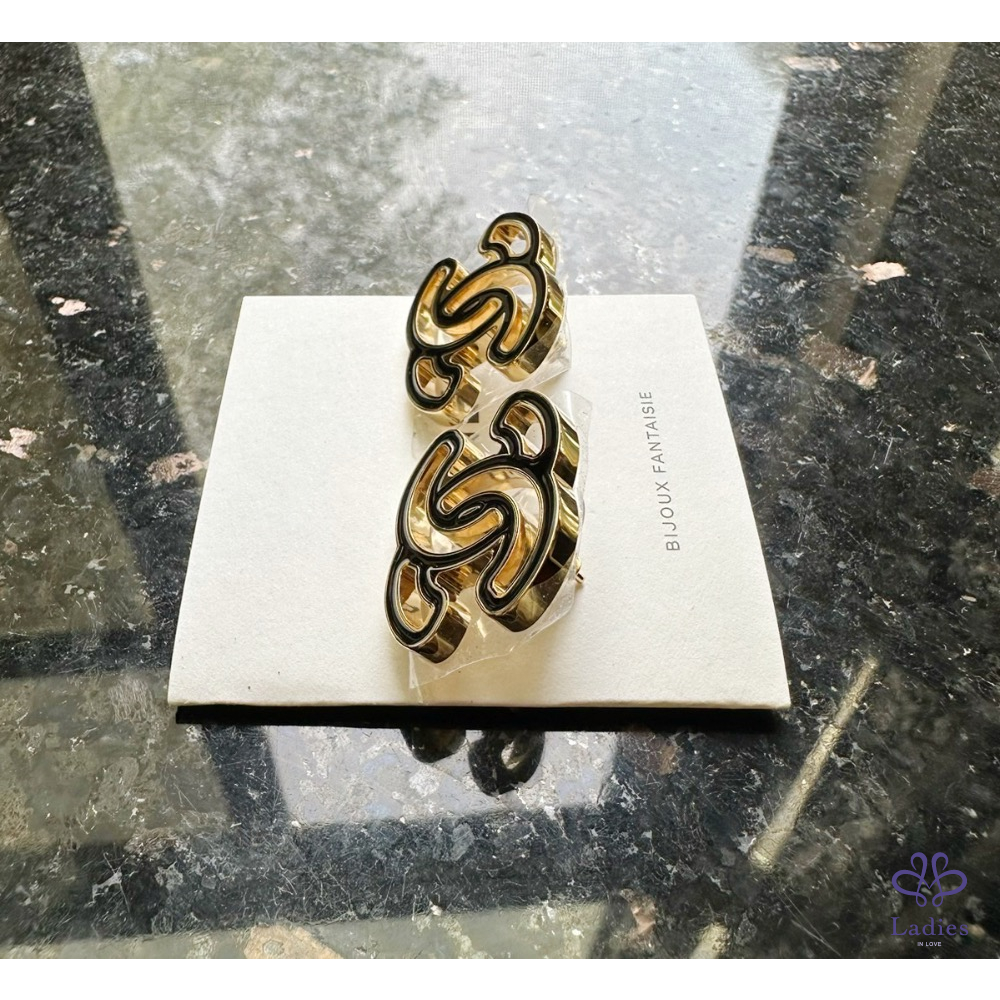 首頁 精品手錶 CHANEL 香奈兒 小香 24A 漫畫 雙C logo黑色鏤空 琺瑯 金邊 針式 耳環 全新✨