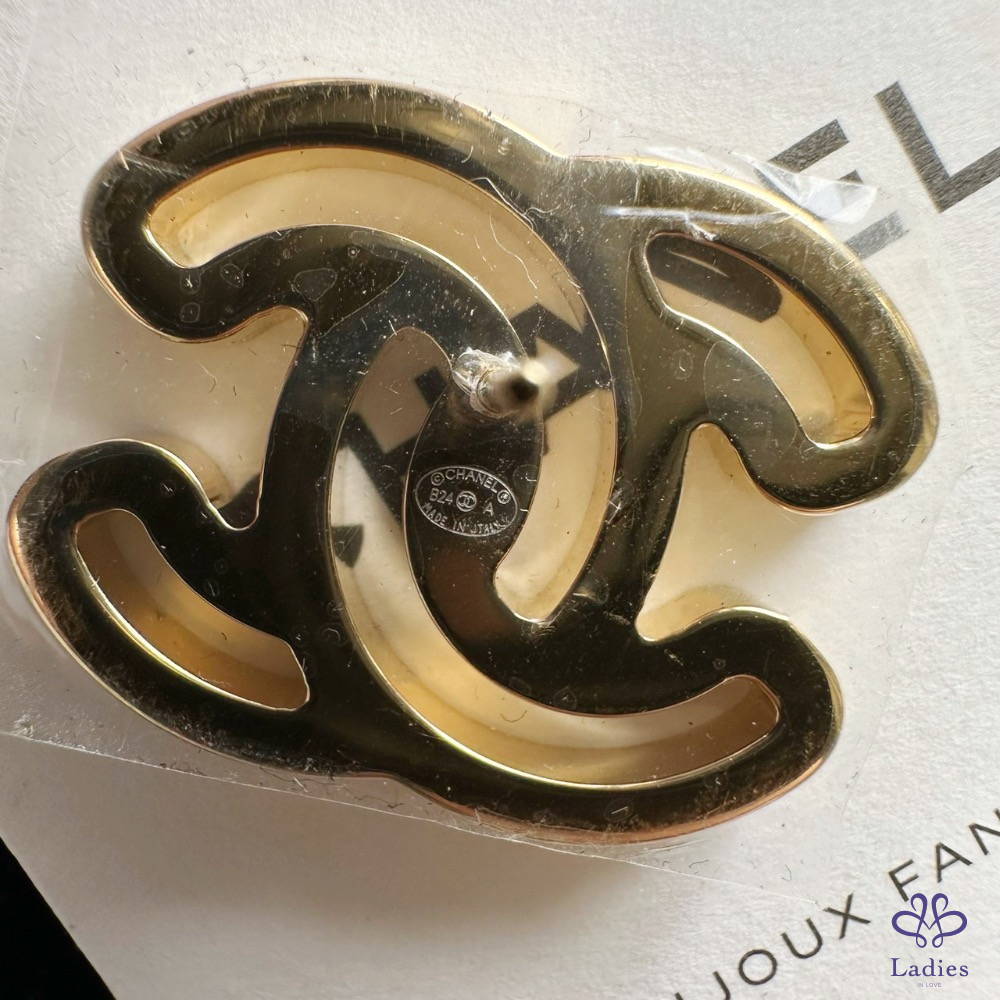CHANEL 香奈兒 小香 24A 漫畫 雙C logo黑色鏤空 琺瑯 金邊 針式 耳環 全新✨