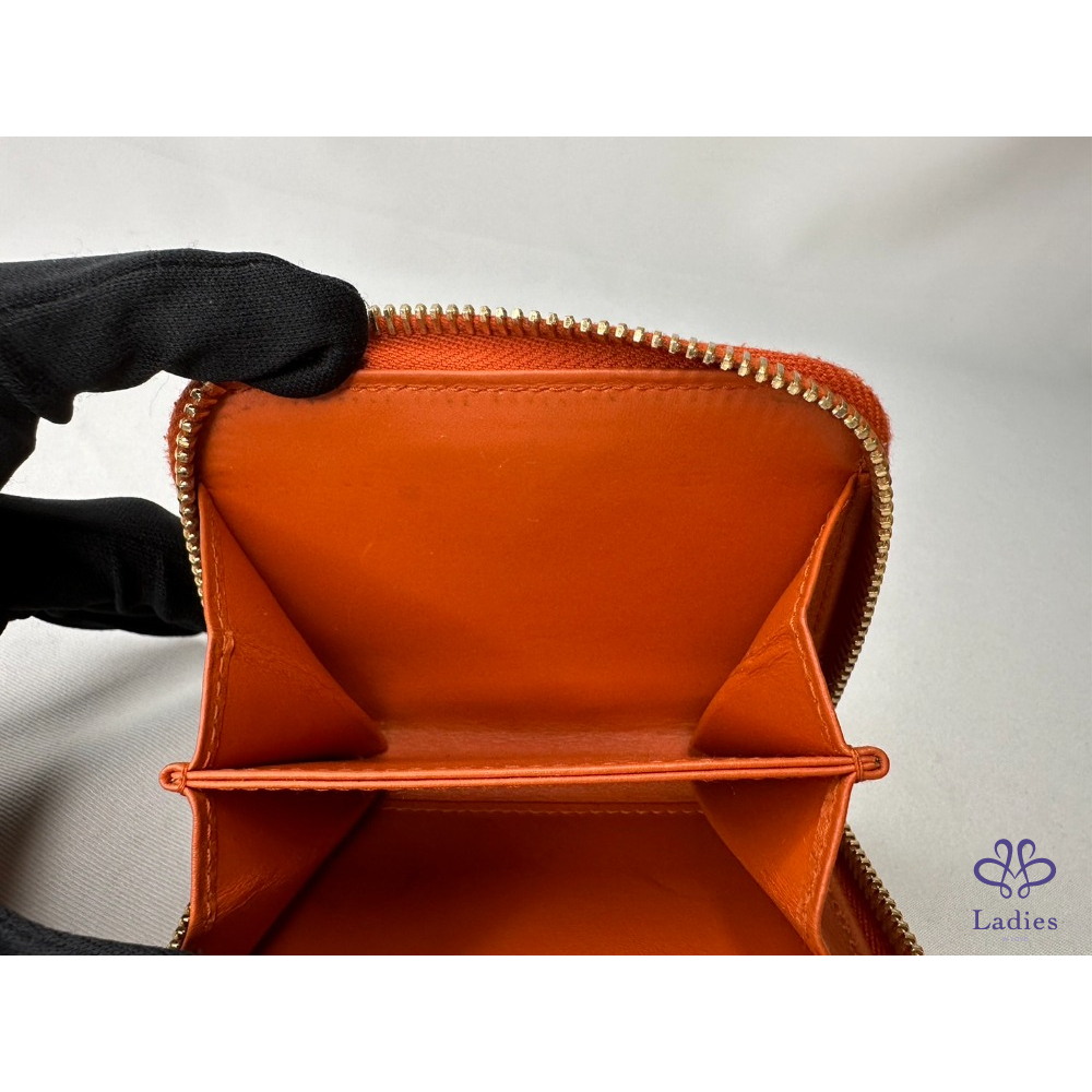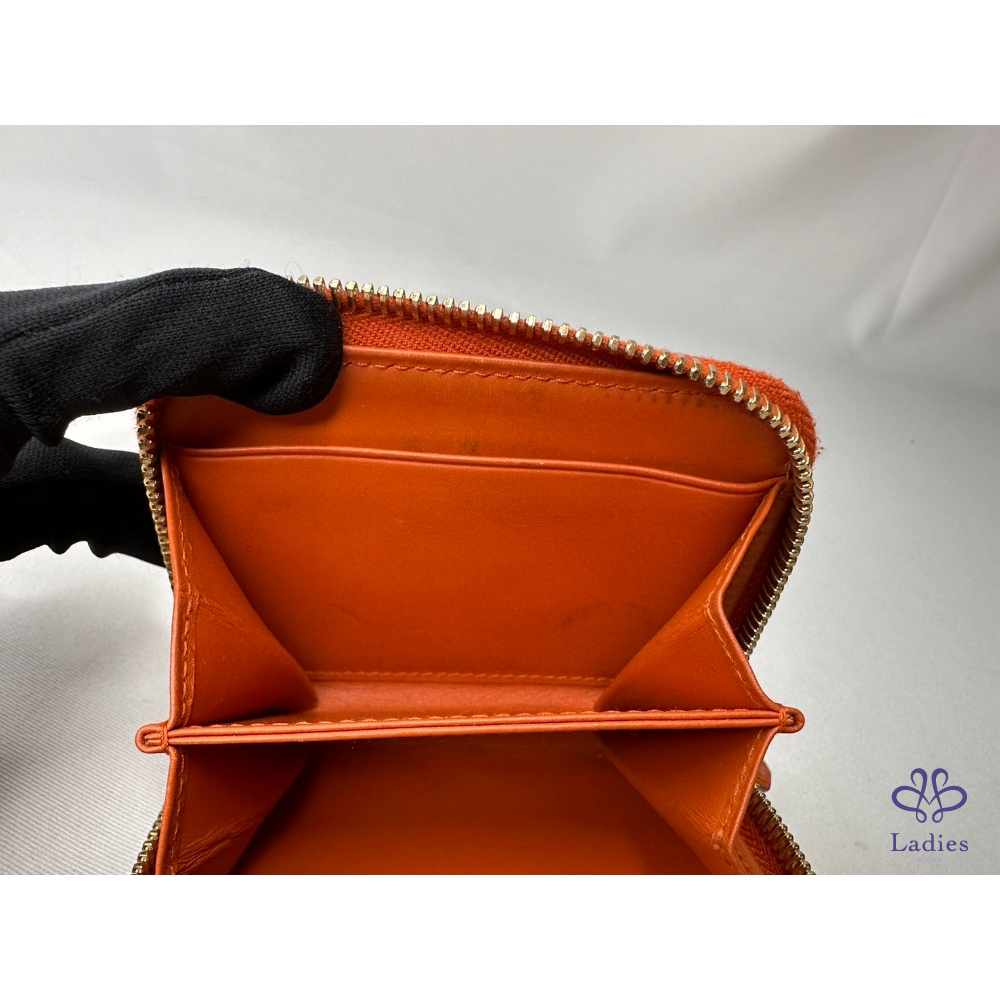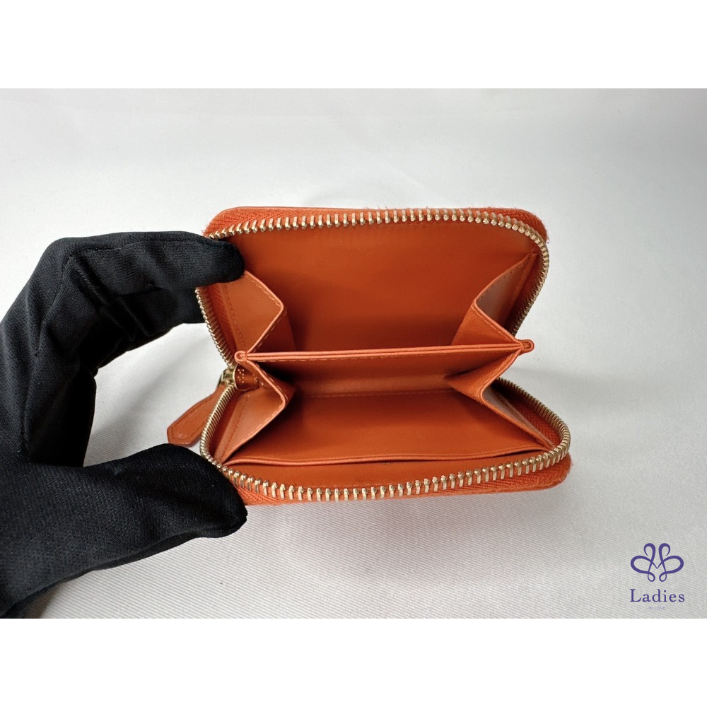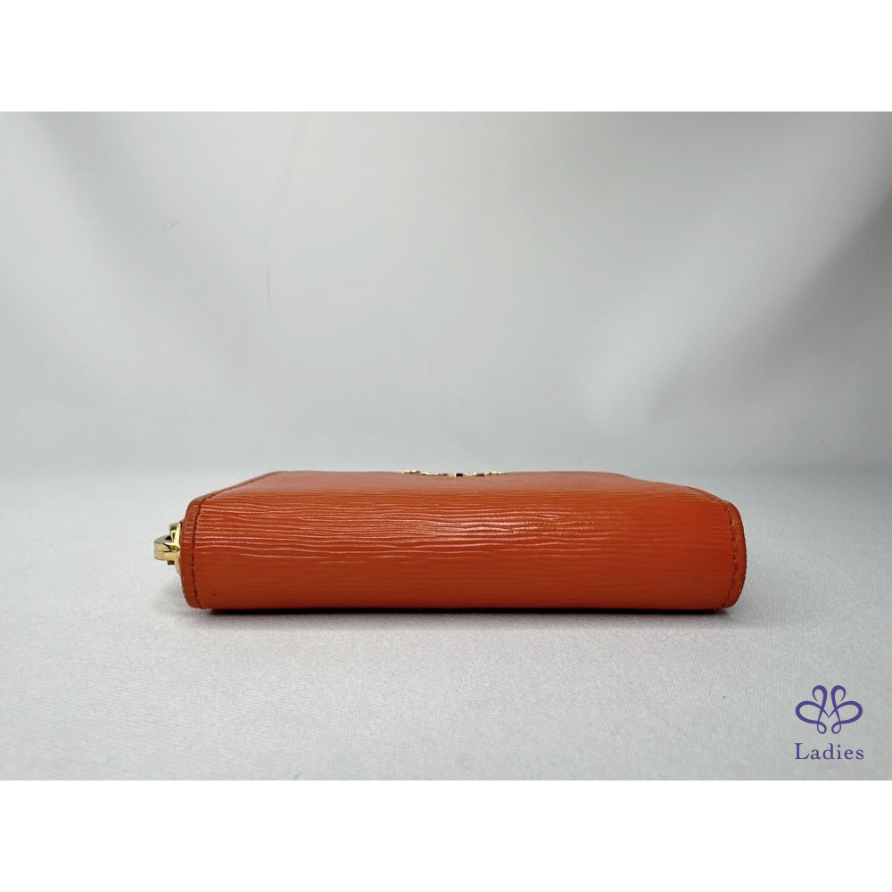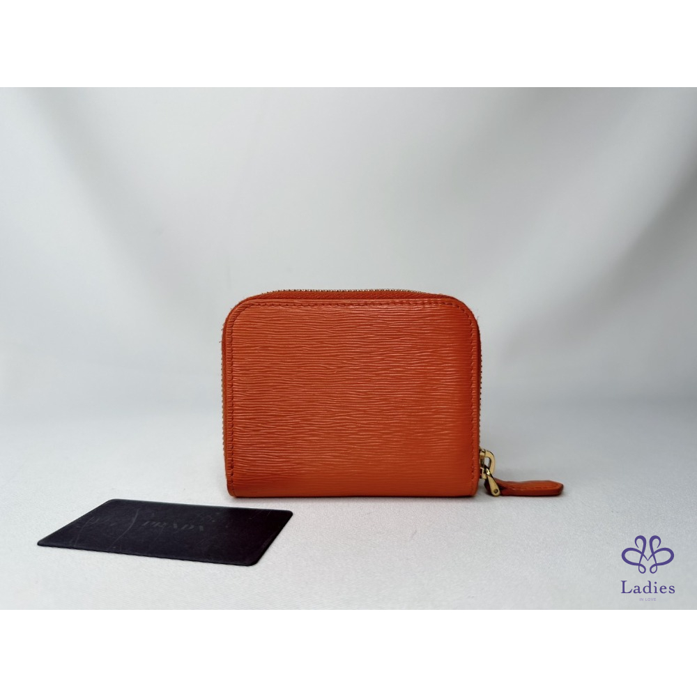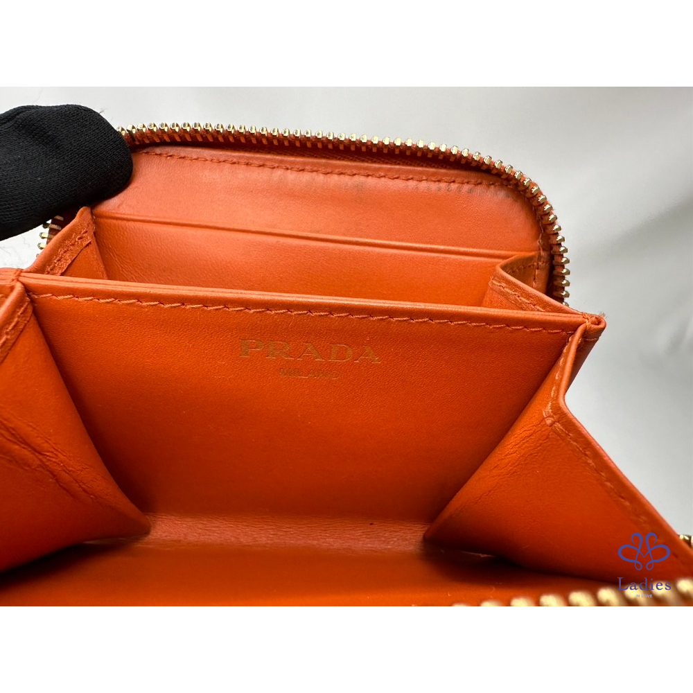 【PRADA 橘紅拉鍊零錢卡包】