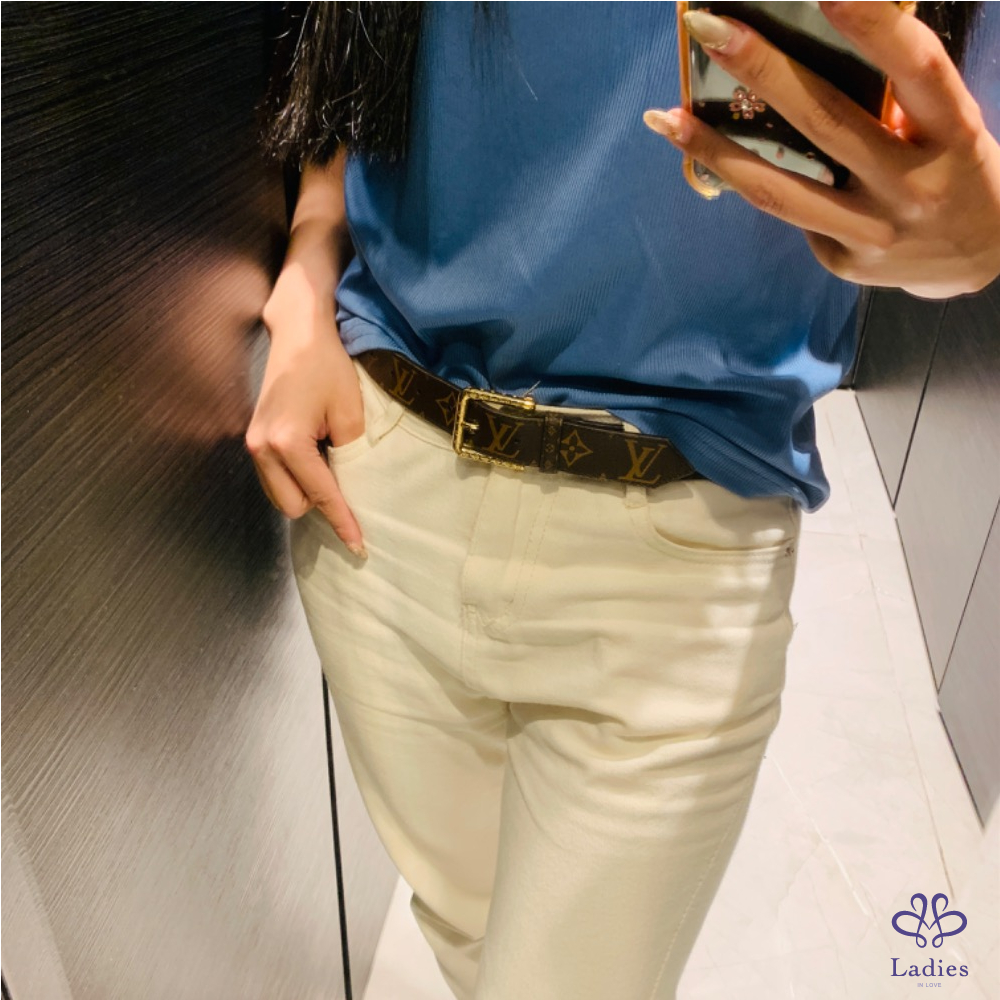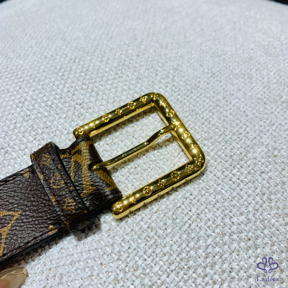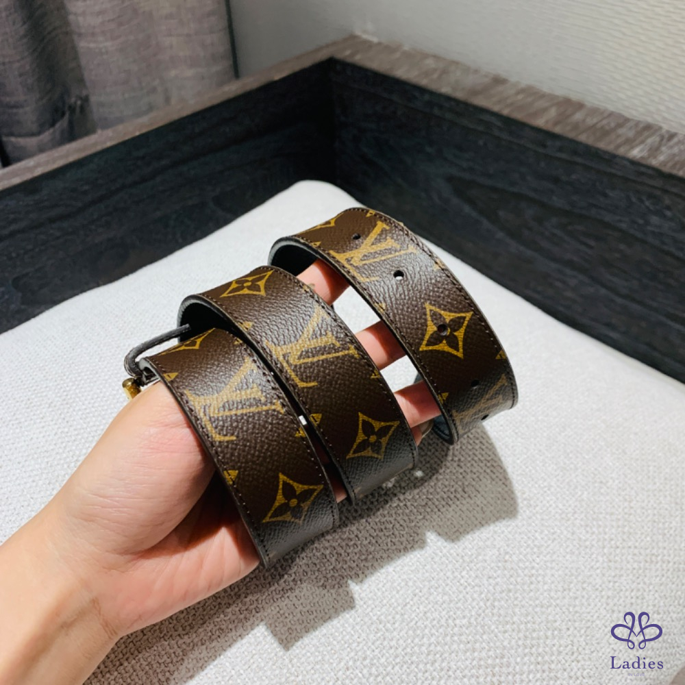 Louis Vuitton 老花皮帶 金釦