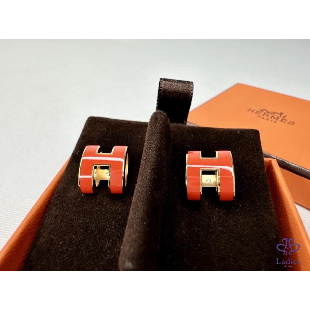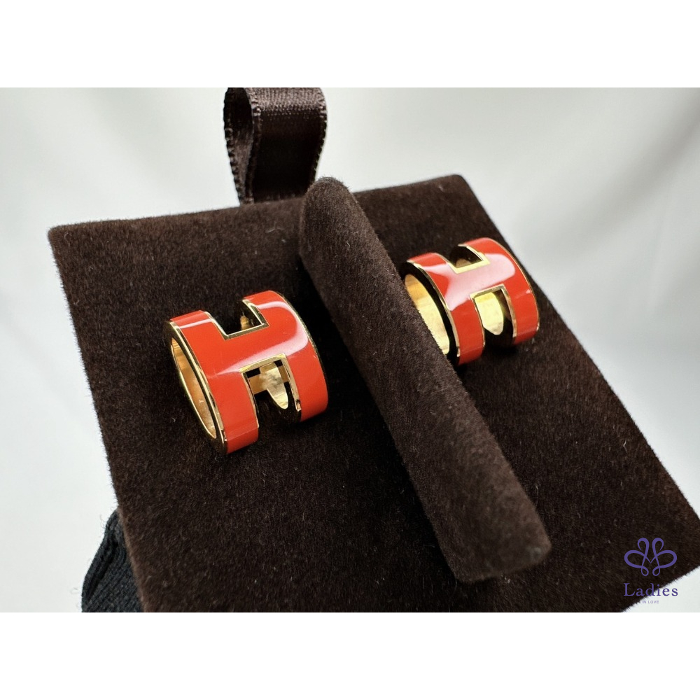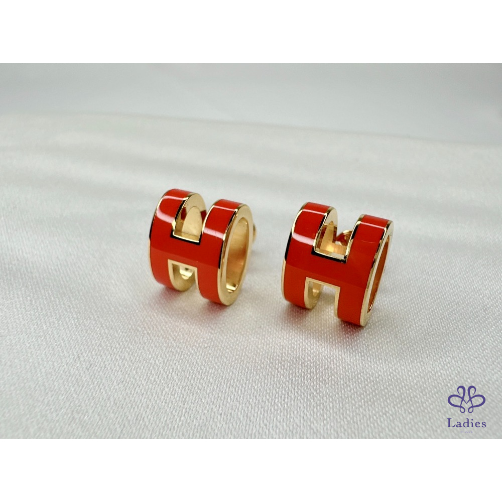產品信息 【HERMES Pop H耳環】 #閒置無配戴近全新 色彩明豔的橘紅琺瑯耳環 簡單的立體橢圓簍空H LOGO樣式,整體時尚又高雅 適合配帶於悠閒和正式場合,為造型增添亮點 整體品項約9成8新,二手商品均有正常存放痕跡 尺寸:1.2x1cm 附件:原廠盒 #B113061902