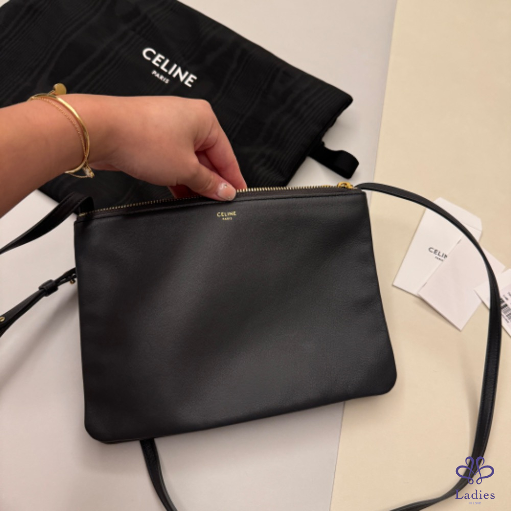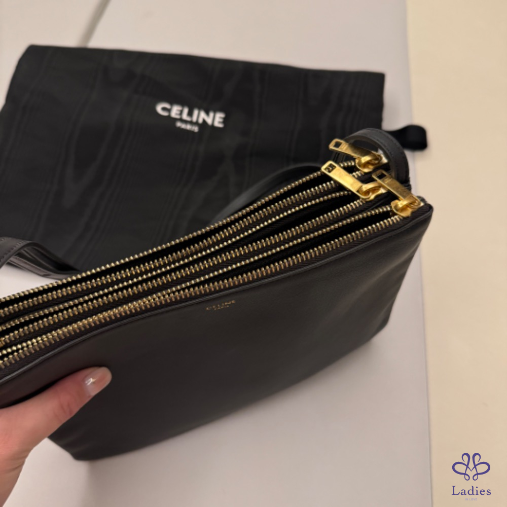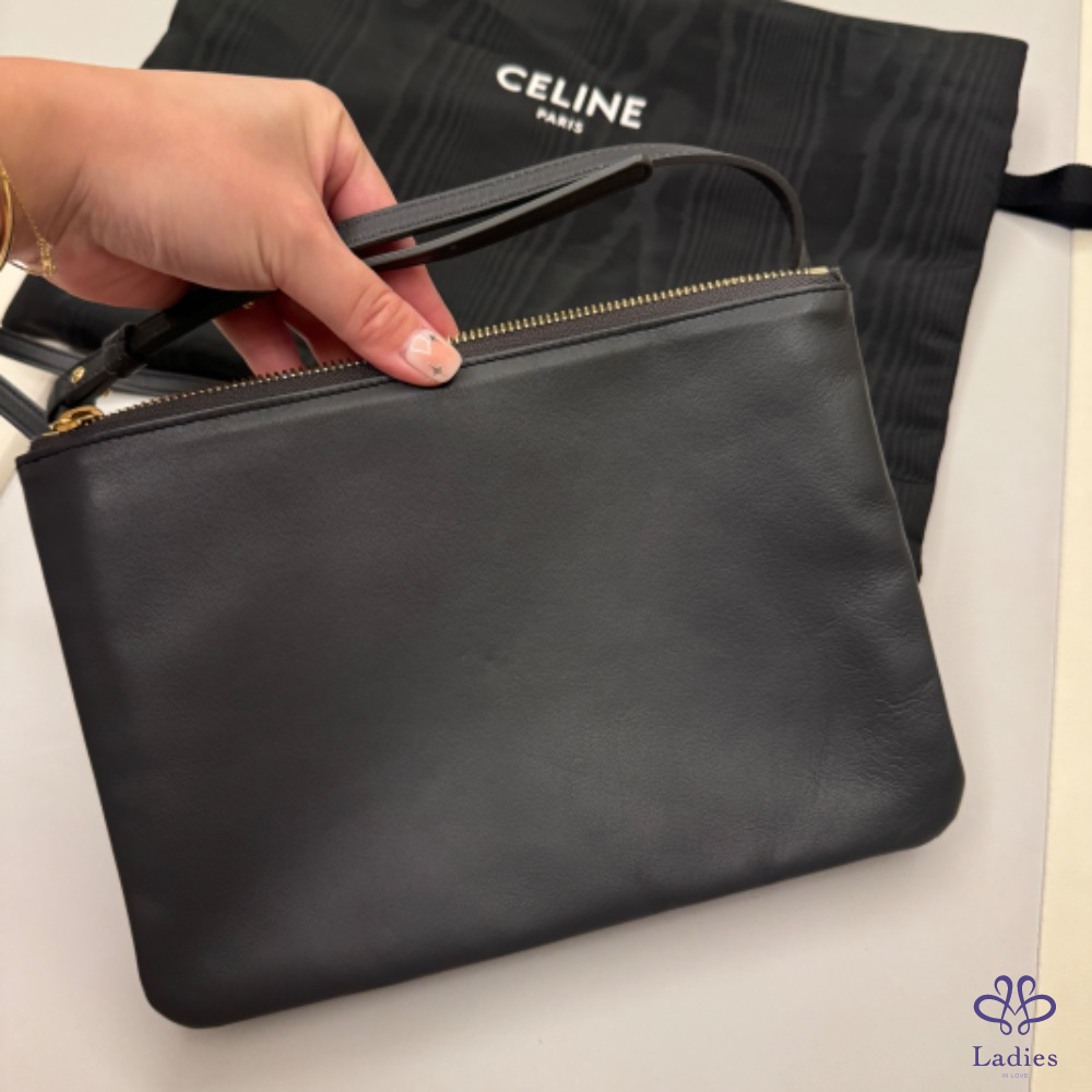 首頁 精品包包 CELINE TRIO 大款 平滑小羊皮三層斜背包(鐵灰)