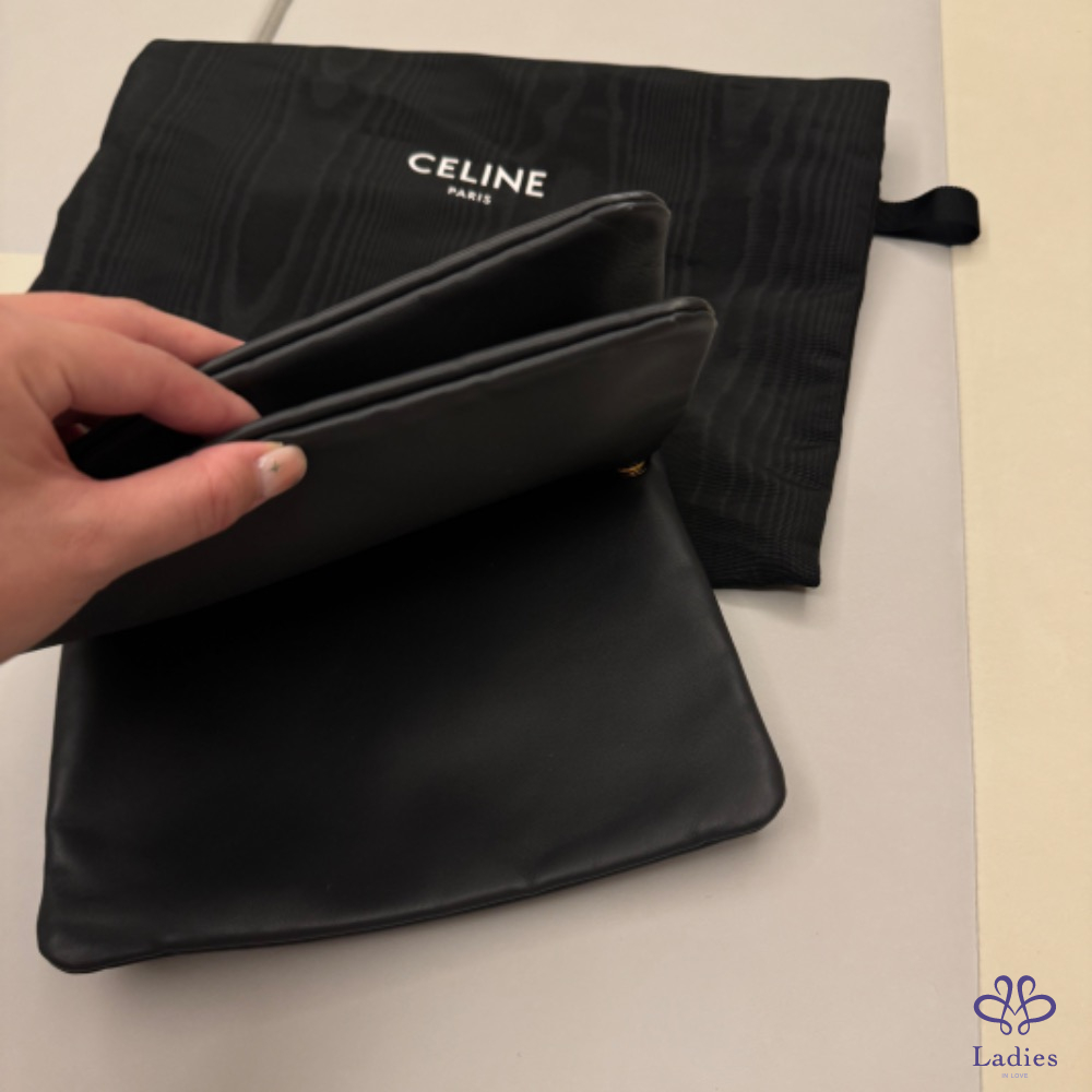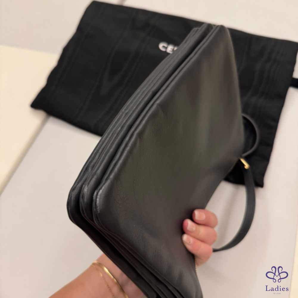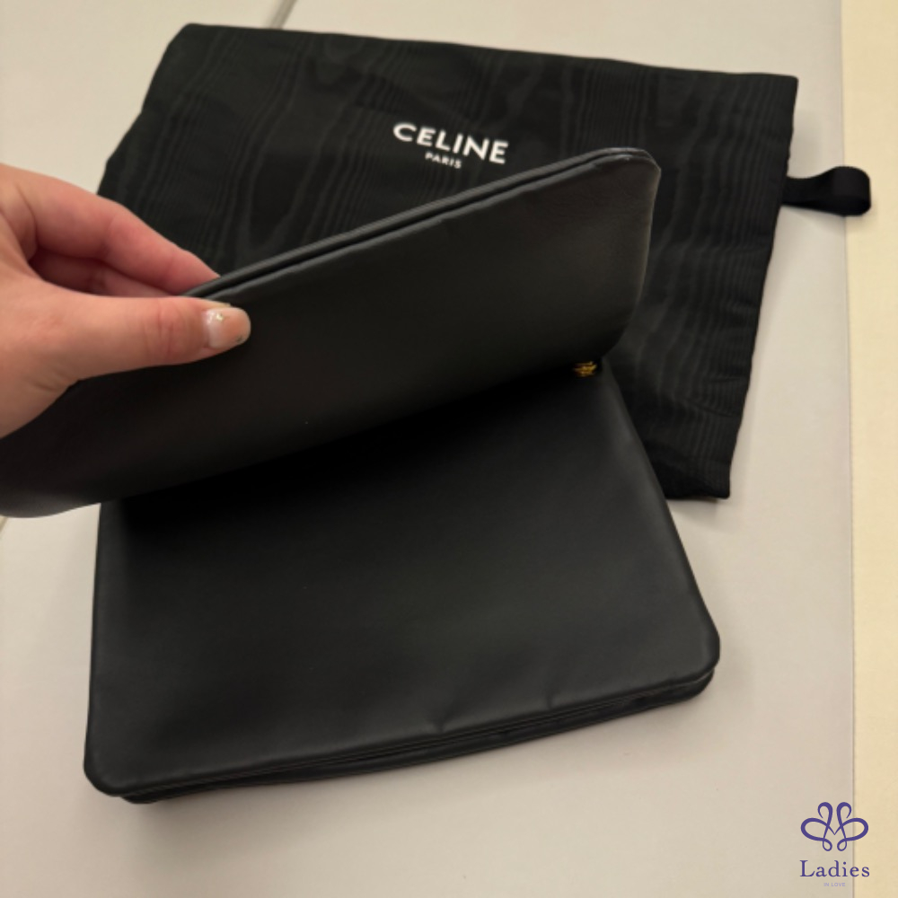 CELINE TRIO 大款 平滑小羊皮三層斜背包(鐵灰)
