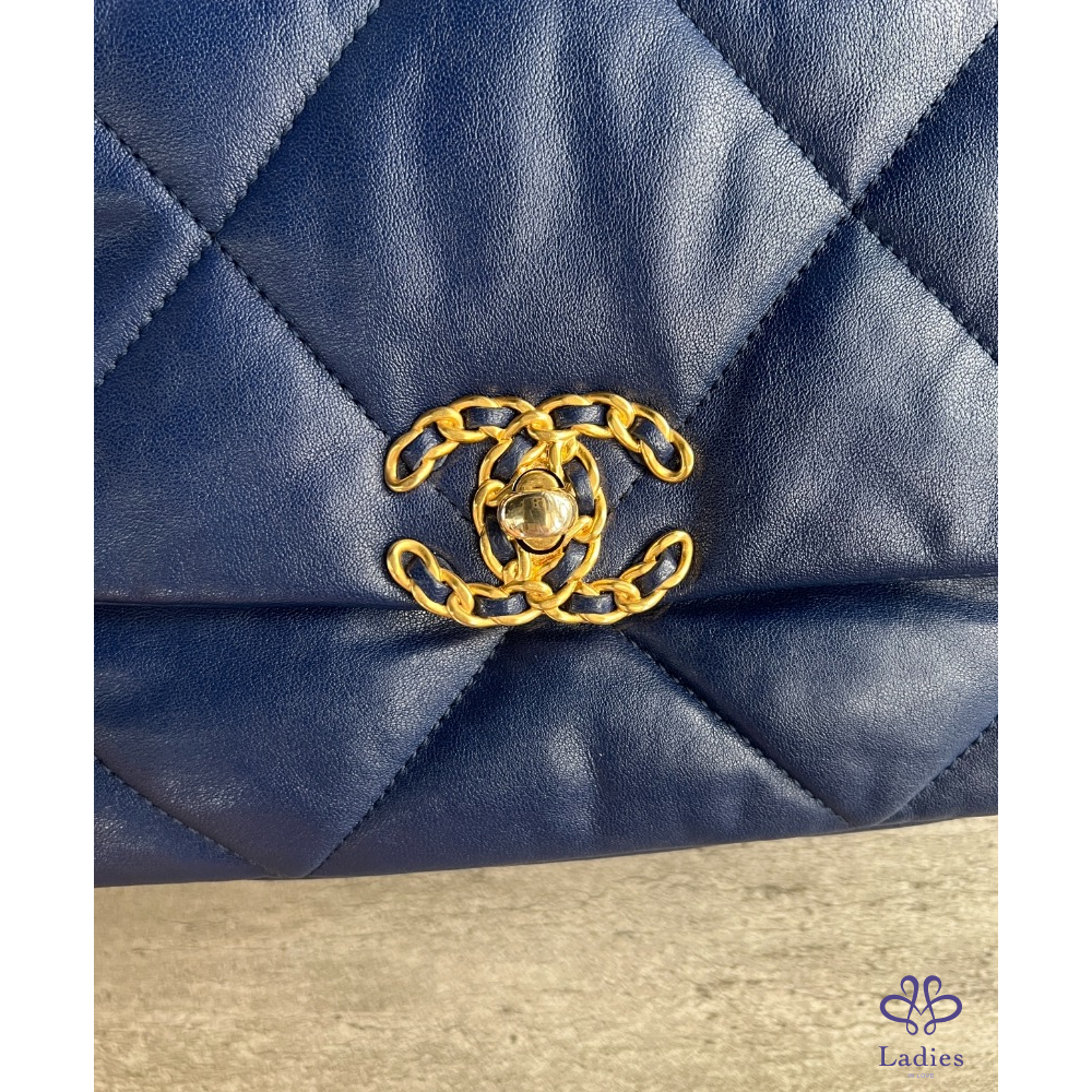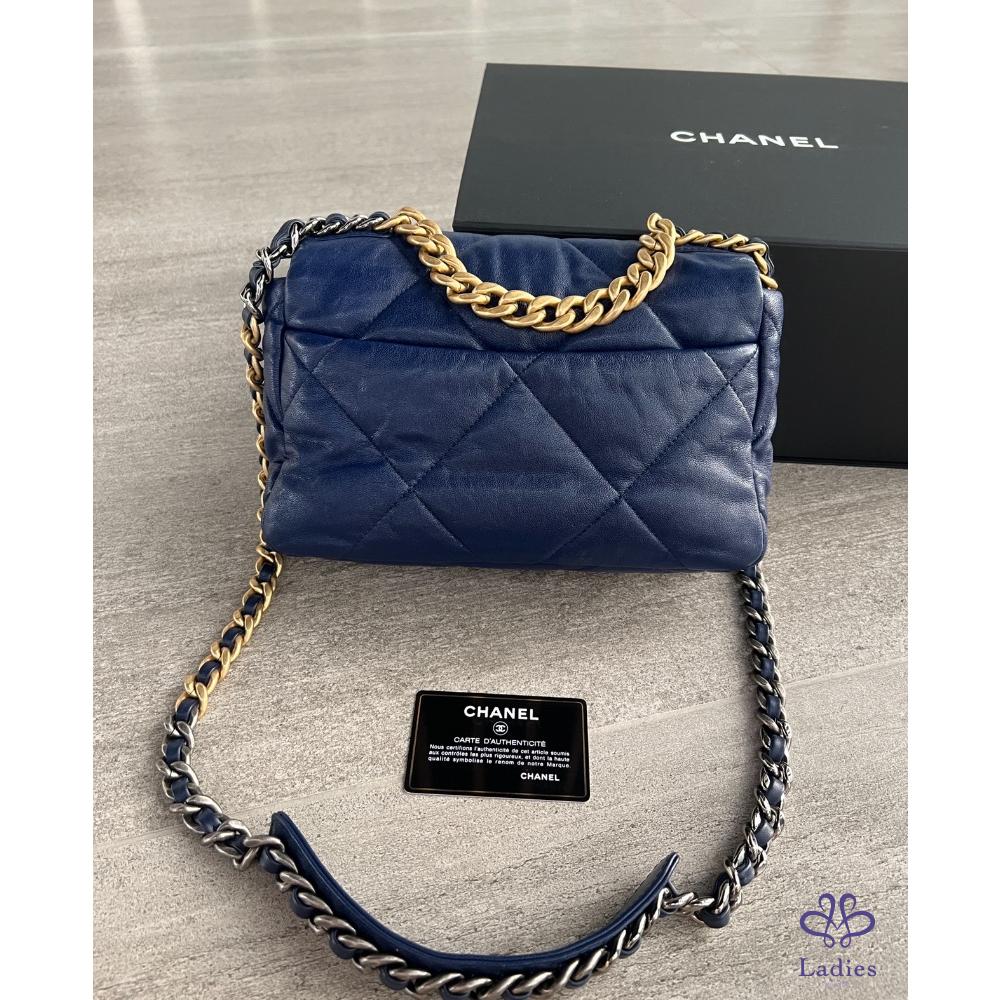 售Chanel 19 深藍金小號口蓋包